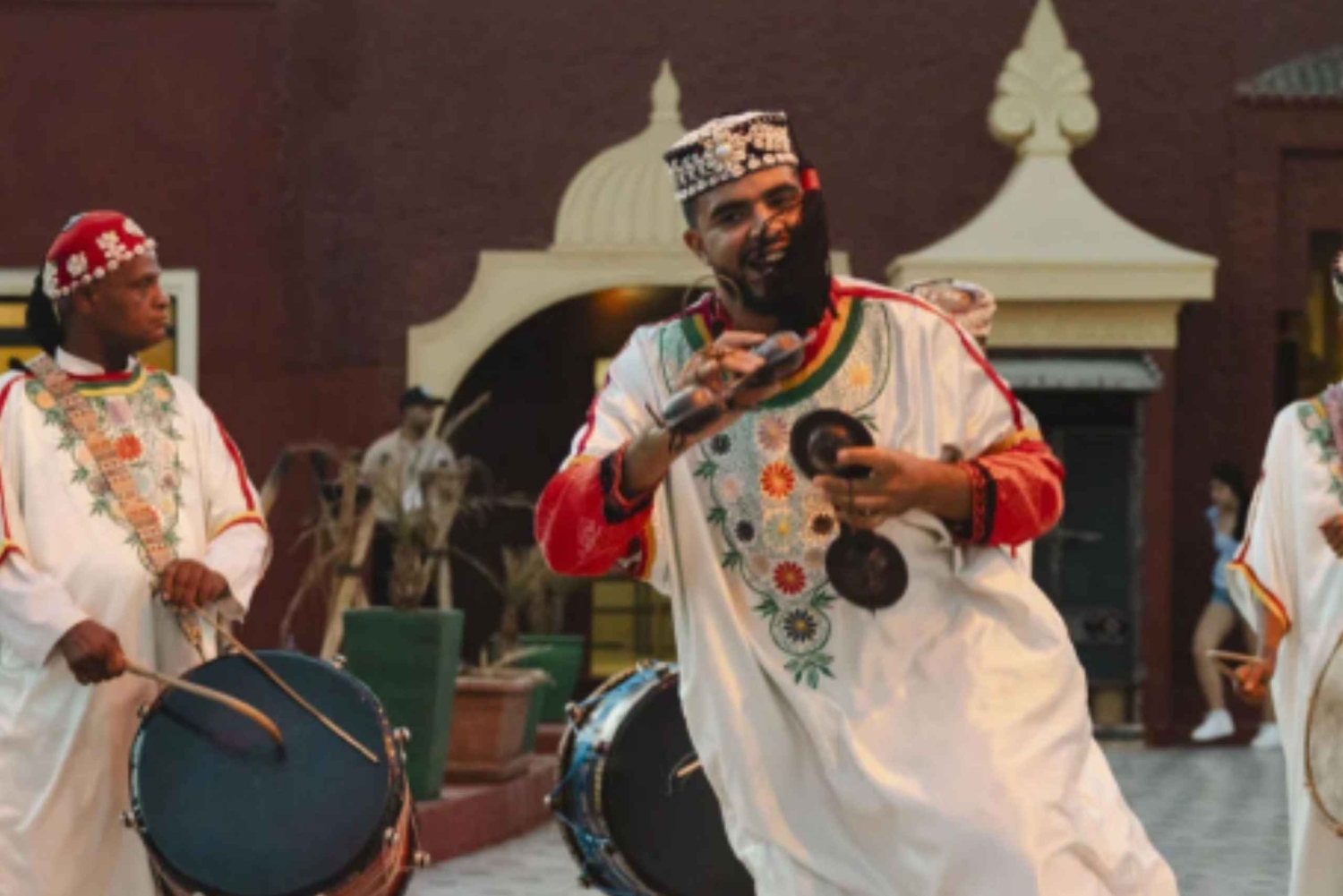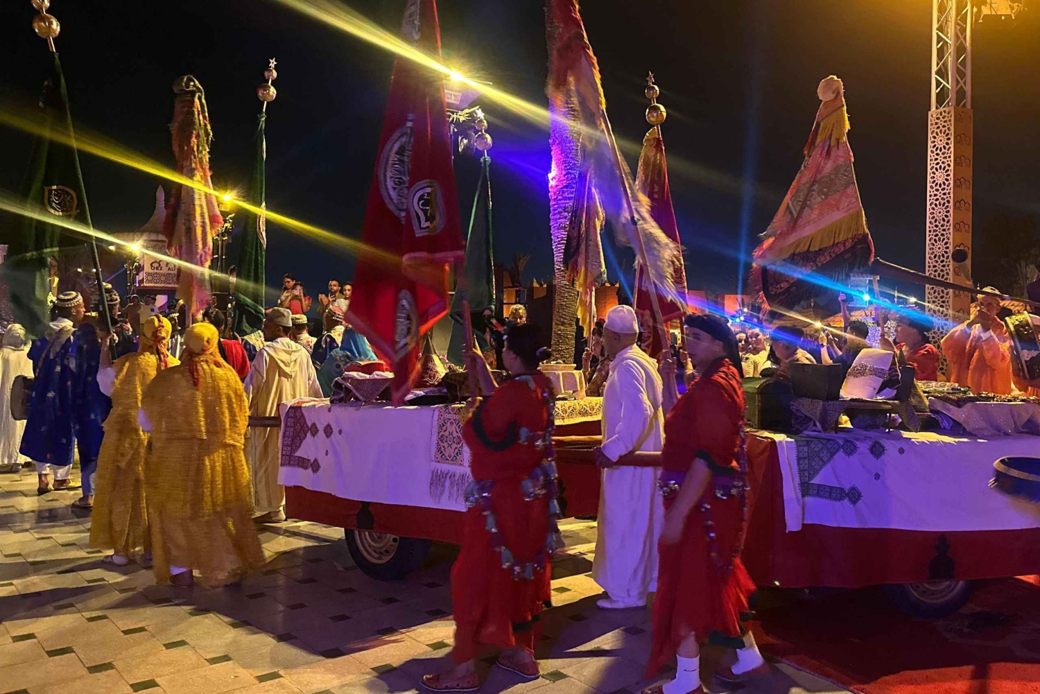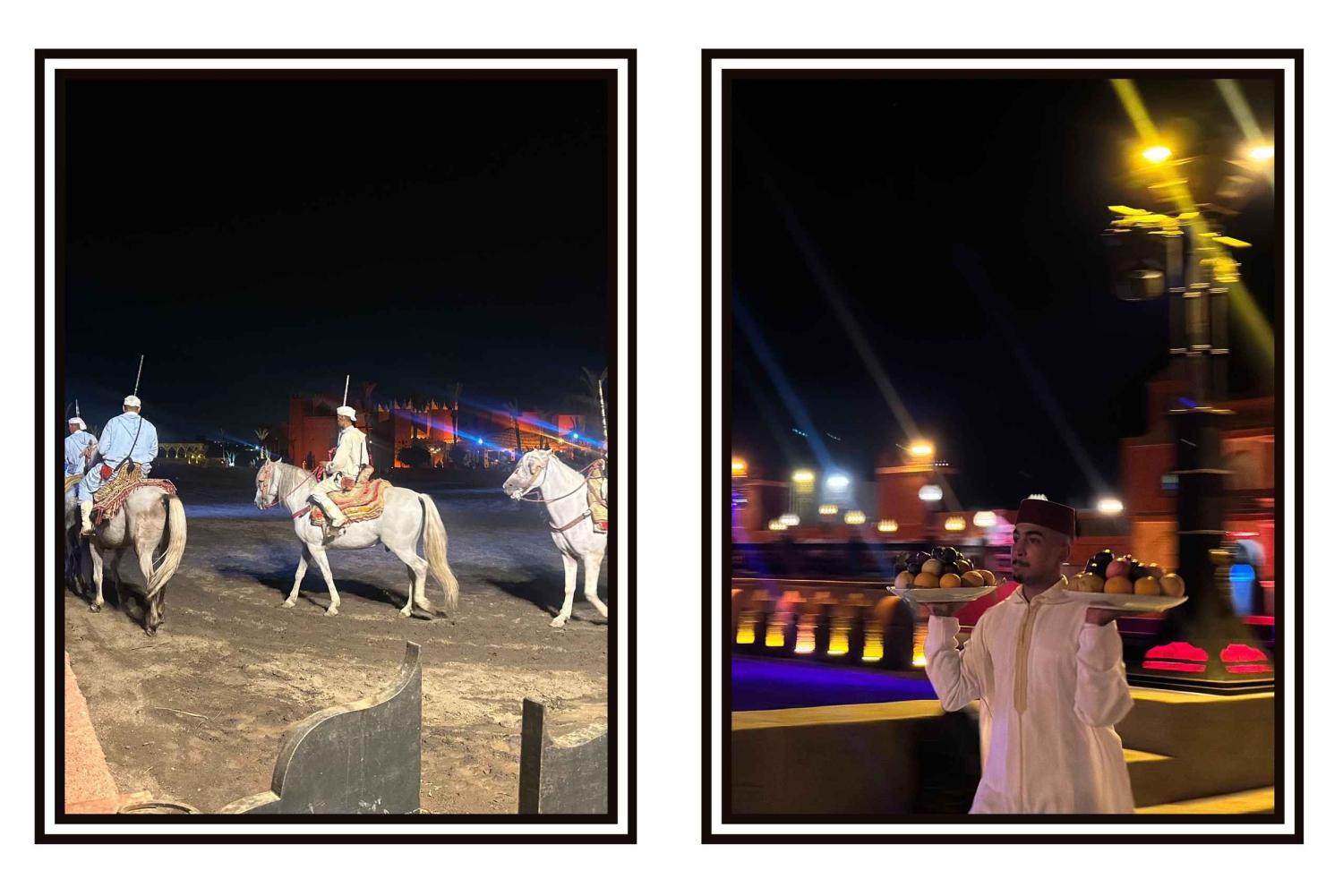 Transfert aller/retour depuis votre hébergement à Marrakech Dîner luxueux avec 4 services Spectacle de Fantasia Minivan ACEasy cancellation