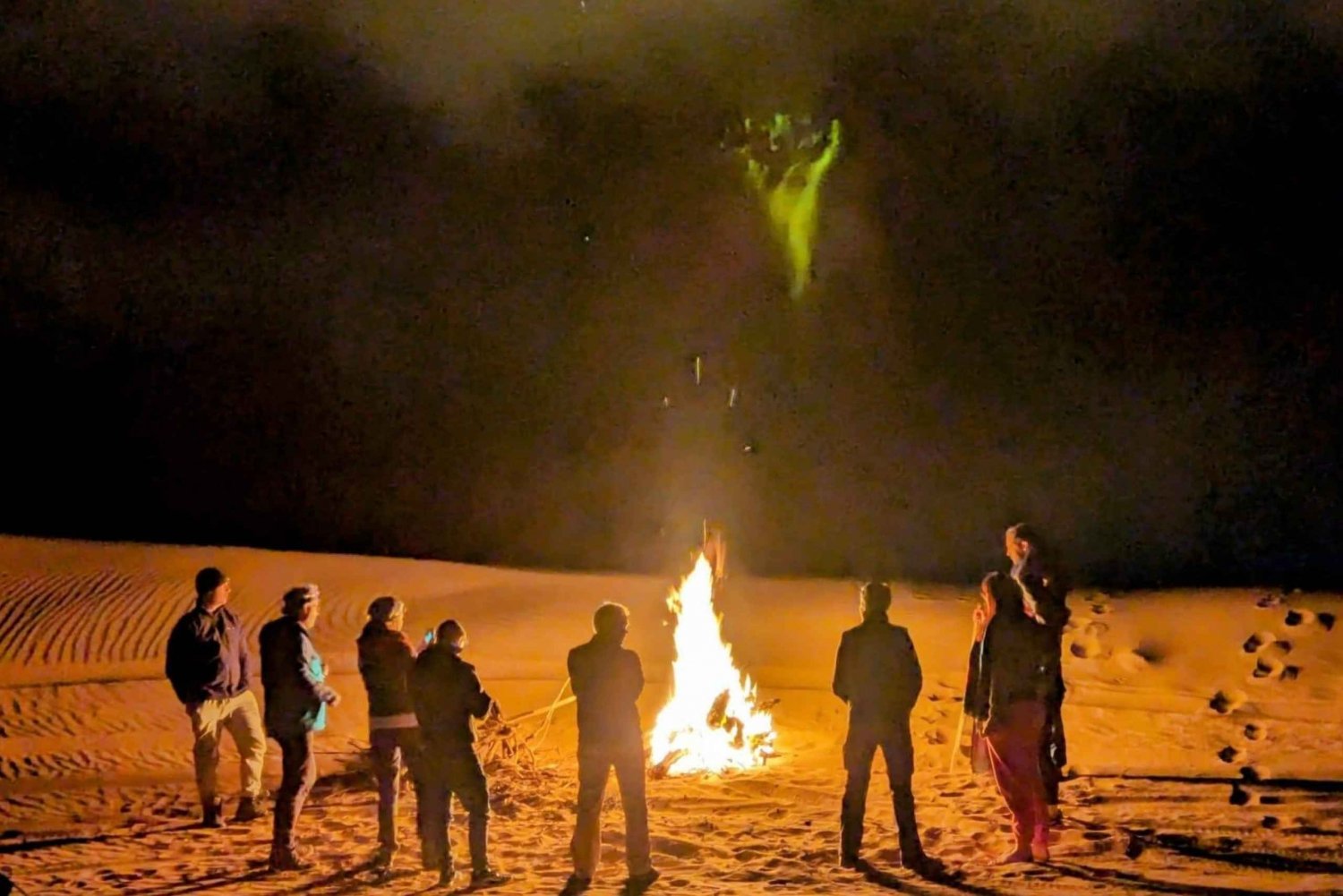 Départ (9h00) : Les voyageurs se rassemblent, enthousiastes à l'idée des aventures de la journée. Ils rencontrent leur guide et montent à bord de véhicules confortables pour le voyage à venir. Midi : Route panoramique vers les montagnes de l'Atlas : Alors que le convoi laisse Marrakech derrière lui, les voyageurs s'émerveillent du changement de paysage, des rues animées de la ville à la campagne sereine. Le guide fournit des informations sur l'histoire, la culture et la géographie de la région tout au long de la route. Randonnée dans les montagnes de l'Atlas : En atteignant les contreforts des montagnes de l'Atlas, le groupe se lance dans une randonnée guidée. Ils traversent des sentiers accidentés, des villages berbères pittoresques nichés au cœur de vallées verdoyantes. Le guide partage des histoires sur les traditions locales et indique les points de repère notables le long de l'itinéraire. Déjeuner dans un village berbère : Après quelques heures de randonnée, les voyageurs profitent d'une pause bien méritée dans un village berbère accueillant. Ils se réunissent dans un cadre traditionnel pour savourer un déjeuner copieux préparé avec des ingrédients frais et locaux. Le repas est accompagné de conversations animées et de vues panoramiques sur les montagnes environnantes. L'après-midi : Transfert vers le désert d'Agafay : Au cours de l'après-midi, le groupe fait ses adieux aux montagnes de l'Atlas et entame la prochaine étape de son voyage vers le désert d'Agafay. En chemin, ils découvrent des panoramas et des paysages désertiques à couper le souffle, ce qui les prépare à l'aventure qui les attend dans le désert. Le soir : Balade à dos de chameau et coucher de soleil dans le désert d'Agafay : À leur arrivée dans le désert d'Agafay, les voyageurs sont accueillis par de gracieux chameaux qui attendent leurs cavaliers. Ils embarquent pour une paisible balade à dos de chameau à travers les sables dorés, s'émerveillant des teintes changeantes du paysage désertique alors que le soleil commence à se coucher. Les appareils photo immortalisent les moments magiques lorsque le groupe s'arrête pour admirer le coucher de soleil à couper le souffle. Thé traditionnel marocain et dîner : Après la balade à dos de chameau, les voyageurs se rassemblent autour d'un feu de camp pour déguster un thé marocain traditionnel servi dans d'élégants verres à thé. Ils s'installent confortablement, échangent des histoires et des rires tandis que les étoiles scintillent au-dessus de leur tête. Bientôt, le dîner est servi - un somptueux festin composé de tajines savoureux, de couscous et d'autres spécialités marocaines cuisinées à la perfection par des chefs qualifiés. Observation des étoiles et divertissement : Au fur et à mesure que la nuit s'épaissit, les voyageurs ont l'occasion de s'adonner à l'observation des étoiles et de s'émerveiller du spectacle céleste au-dessus de l'étendue désertique. Les divertissements de la soirée peuvent inclure de la musique en direct... puis.., Retour à Marrakech : À contrecœur, le groupe fait ses adieux à la beauté tranquille du désert d'Agafay et monte à bord de son véhicule pour le voyage de retour vers Marrakech. Malgré la fatigue des aventures de la journée, les cœurs sont pleins et les souvenirs sont chéris lorsque les voyageurs réfléchissent aux expériences inoubliables qu'ils ont partagées dans les montagnes de l'Atlas et les paysages désertiques du Maroc. Votre itinéraire promet un voyage inoubliable rempli d'aventures, d'immersion culturelle et de beauté naturelle - une véritable célébration de la riche tapisserie de paysages et de traditions du Maroc.Includes