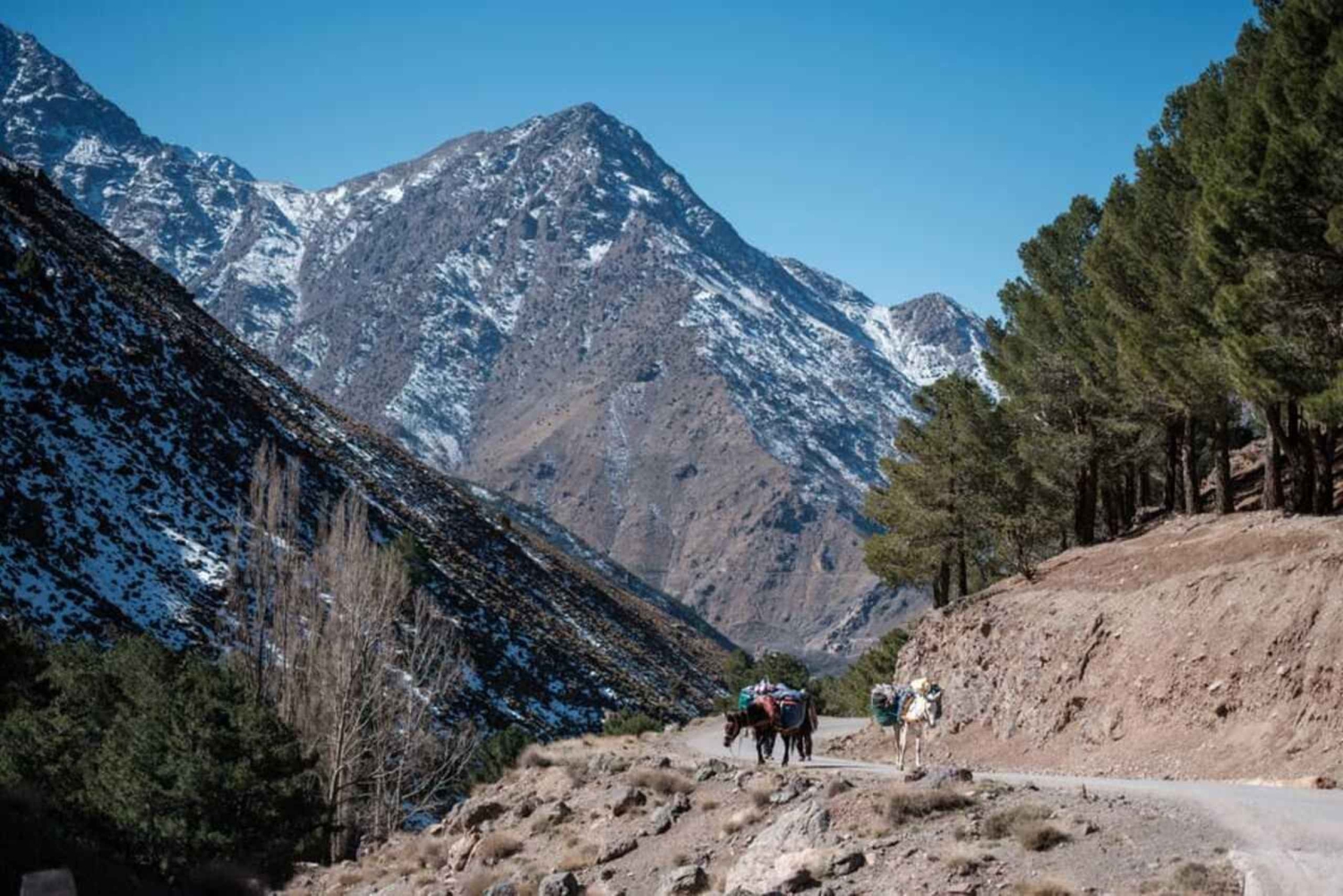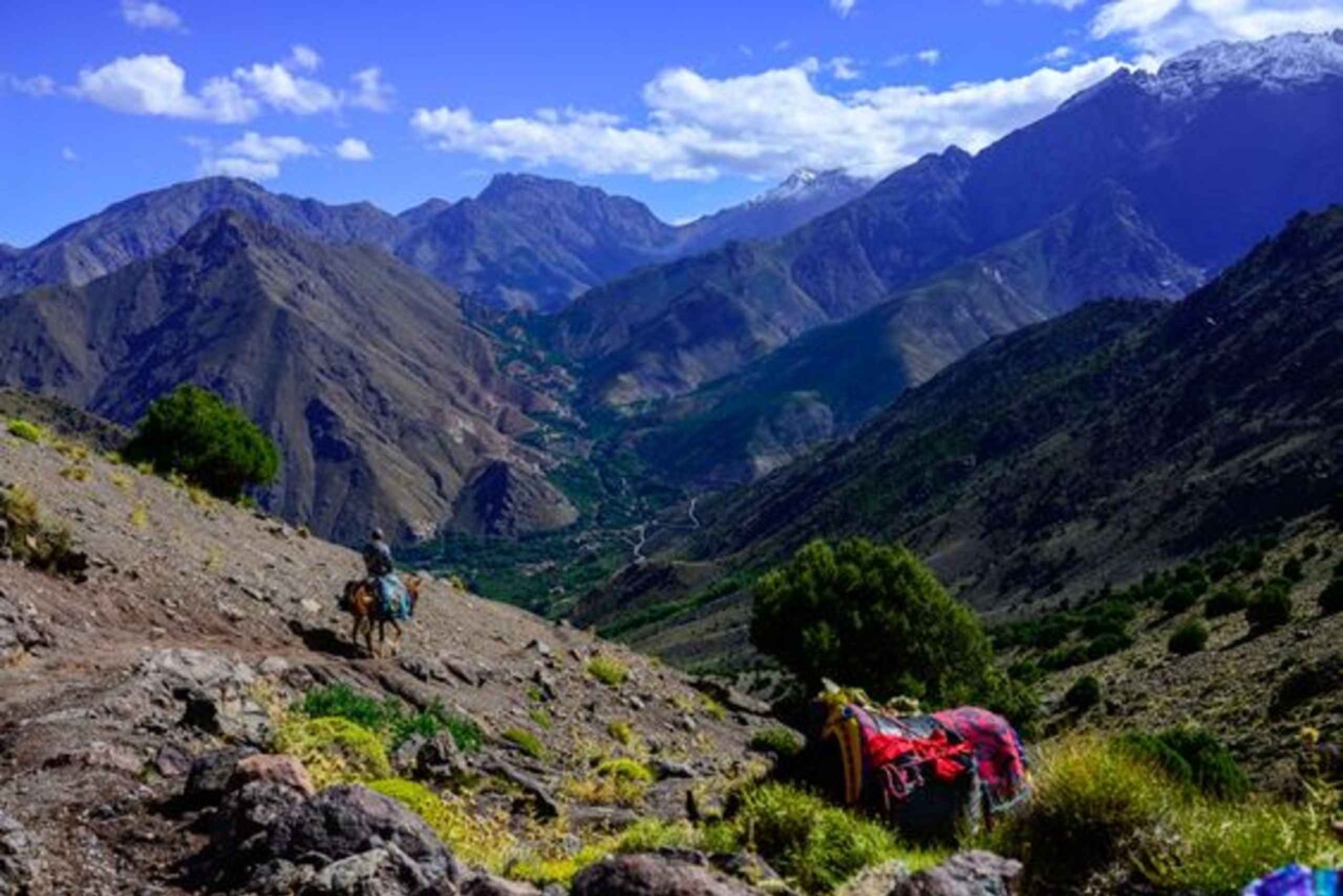 Prise en charge et retour à l'hôtel Transport climatisé depuis Marrakech Guide de la région Muletier et mules pour porter les bagages 2 nuits d'hébergement Tous les repas pendant le trek (3 déjeuners, 2 dîners, 3 petits déjeuners)Easy cancellation