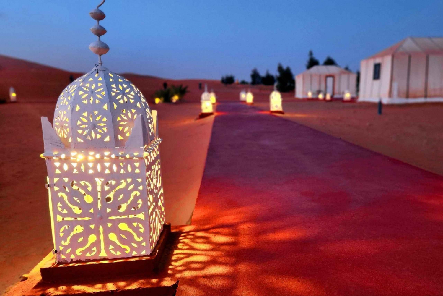 62 ReviewsParti per un tour di 3 giorni nel deserto del Marocco per scoprirne la bellezza attraverso il trekking con i cammelli, il sandboarding e il campeggio nel deserto nei paesaggi mozzafiato dell'Erg Chebbi a Merzouga con ritorno a Marrakech.