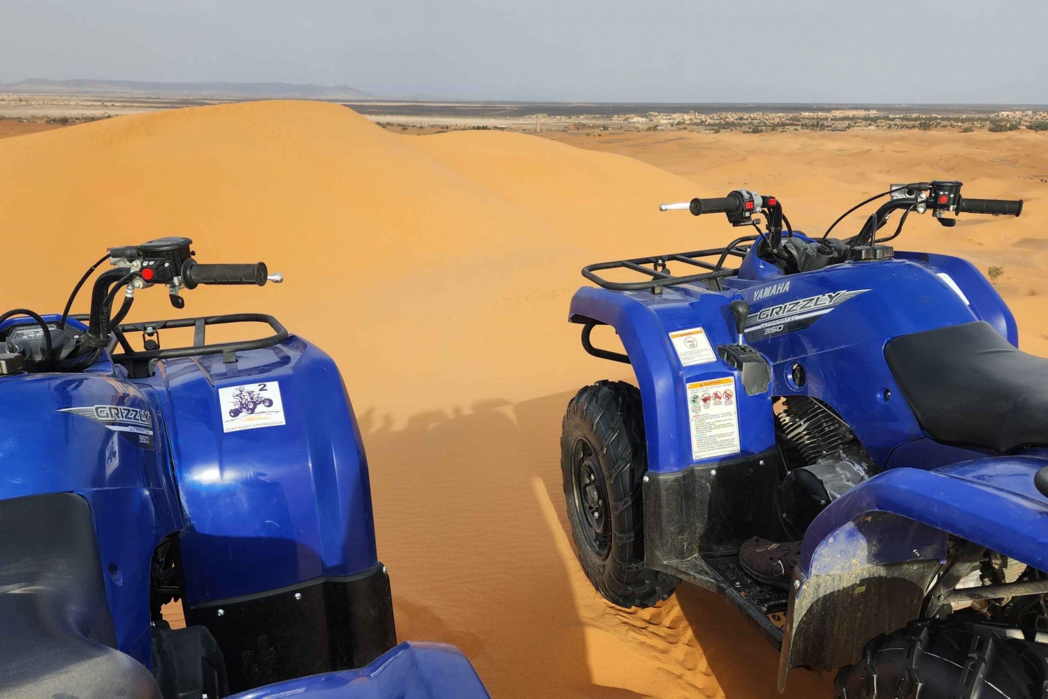 Ti veniamo a prendere a Ouarzazate al tuo hotel o riad (o al punto accessibile più vicino al tuo riad). Trasporto in 4×4 o minibus con aria condizionata. Carburante, pedaggi e relativi costi. Un autista locale esperto ti accompagnerà durante tutto il percorso. Visita facoltativa ad Ait Ben Haddou (richiede trasporto personale/taxi da Ouarzazate). Tramonto e alba nelle dune di Erg Chebbi nel Sahara marocchino. Esperienza di sandboarding. Pernottamenti con colazione e cena. Una notte in un accampamento nel deserto.Important Information