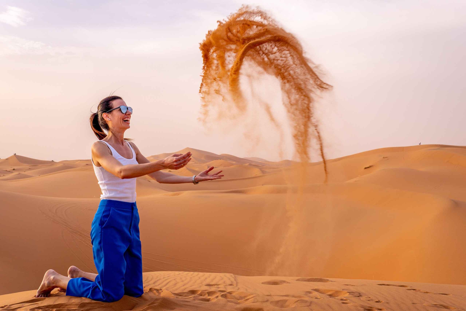 - Gira in cammello tra le dune dorate dell'Erg Chebbi durante un magico tramonto