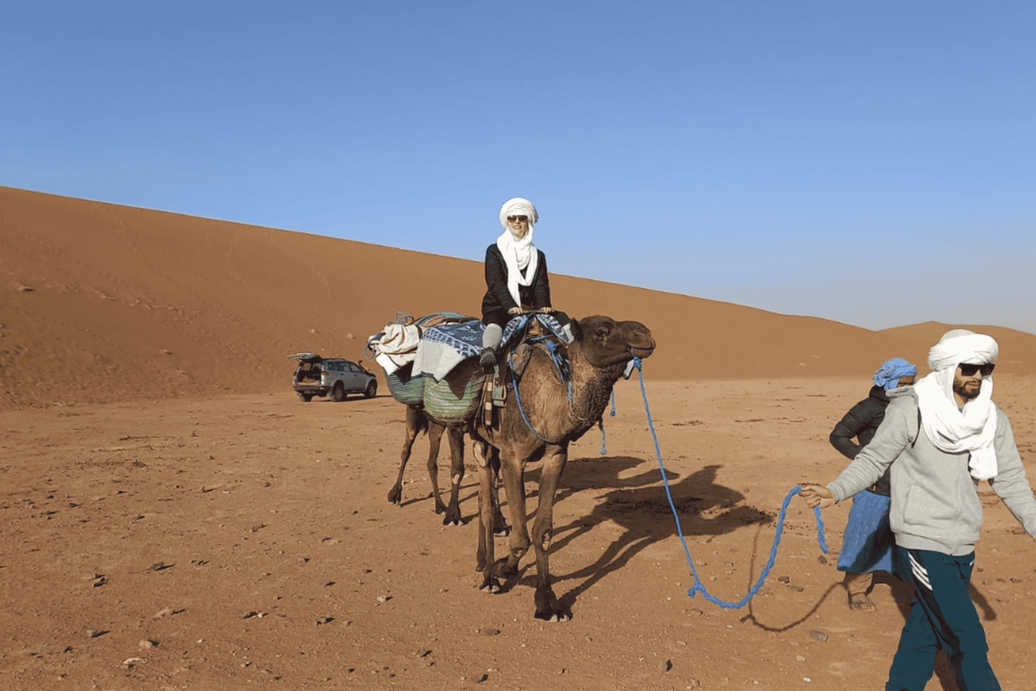 - Gira in cammello tra le dune dell'Erg Chebbi e goditi un tramonto nel deserto