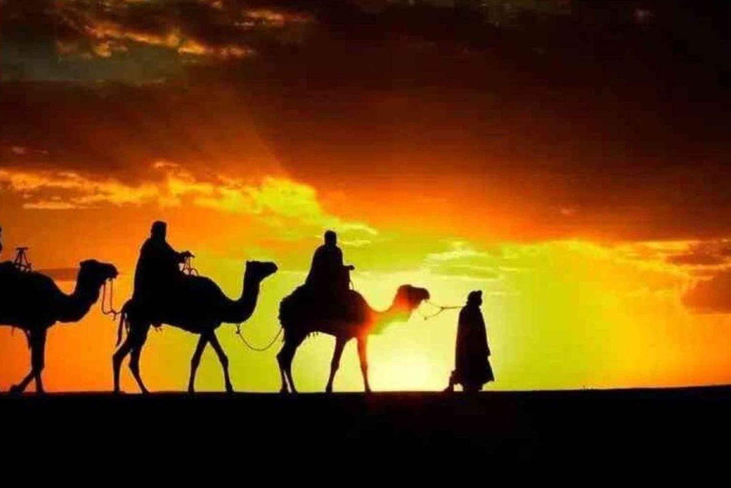 Servizio di prelievo e rientro in hotel Trasporto in autobus con aria condizionata Tour guidato Cena Tè e dolci marocchini Spettacolo dal vivo Falò Giro in cammello AcquaEasy cancellation