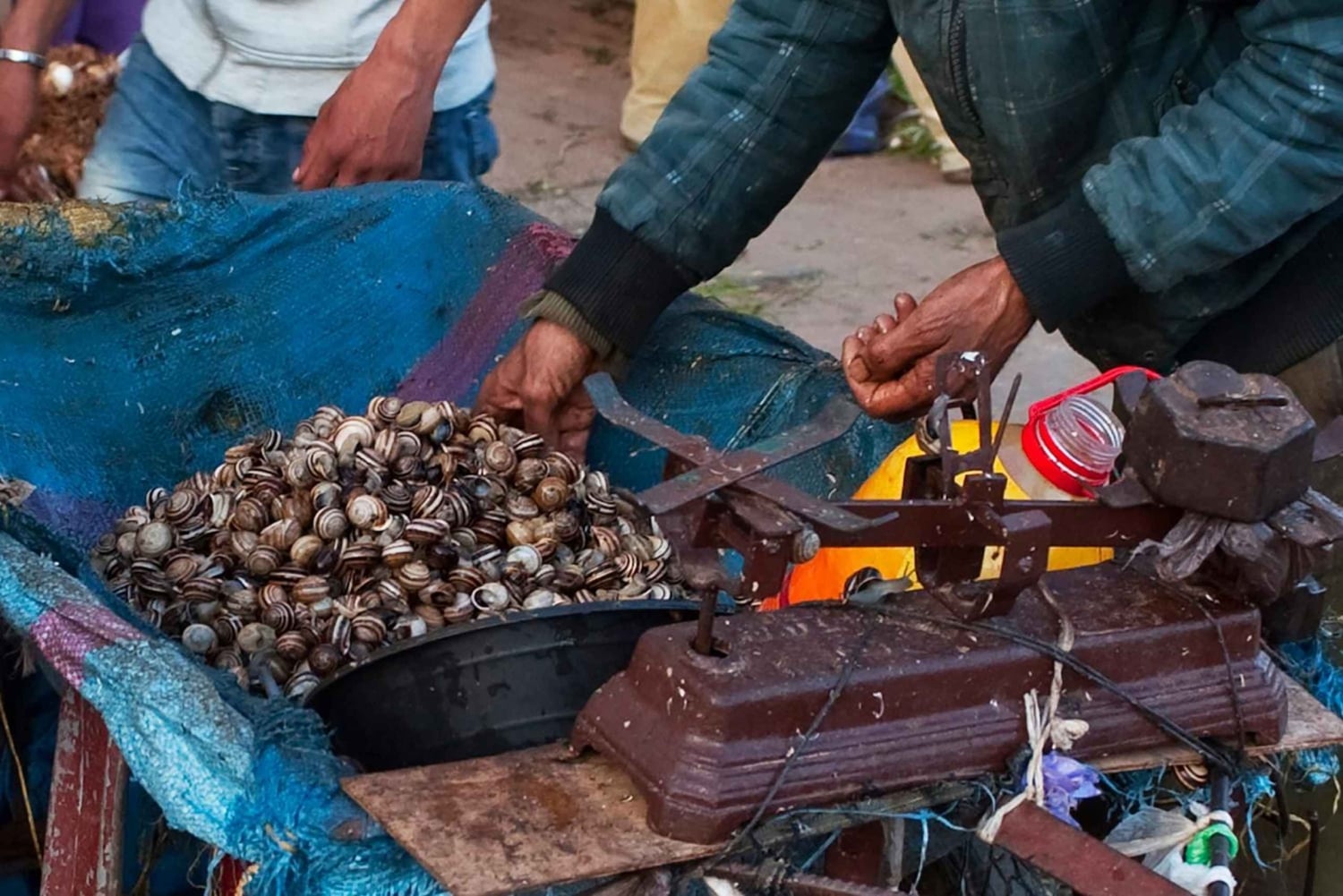 Vivi l'atmosfera bohémien di Essaouira sulla costa atlantica con un tour di un giorno intero da Marrakech. Trasferimento in veicolo con aria condizionata attraverso il Marocco occidentale, godendoti la vista del paesaggio arido e degli alberi di argan lungo il percorso (soggetto a disponibilità). Fermati nella città di Chichaoua per un caffè. Arriva a Essaouira circa 2 ore dopo la tua partenza da Marrakech. Ottieni la tua prima vista di oltre 6 miglia (10 chilometri) di spiagge dorate, apprezzate dai surfisti per i venti costanti e tonificanti. Una volta a Essaouira sei libero di esplorare la medina e l'architettura portoghese da solo. autoguidato alla Skala du Port e al bastione a sud-est della medina. Passeggia per le strade labirintiche della medina, ascoltando la tradizionale musica Gnaoua Muic a ogni angolo. Guarda gli artigiani al lavoro, che realizzano oggetti in legno di thuya. Prosegui verso il porto peschereccio per vedere i pescatori vendere il loro pescato del giorno. Assaggia pesce fresco durante il pranzo nel porto. Poi, fai una passeggiata lungo la spiaggia prima del tuo ritorno a Marrakech. Lungo il tragitto, fermati in una cooperativa di olio di argan per vedere come le donne berbere lavorano il tradizionale olio di argan, conosciuto localmente come 'oro liquido'.