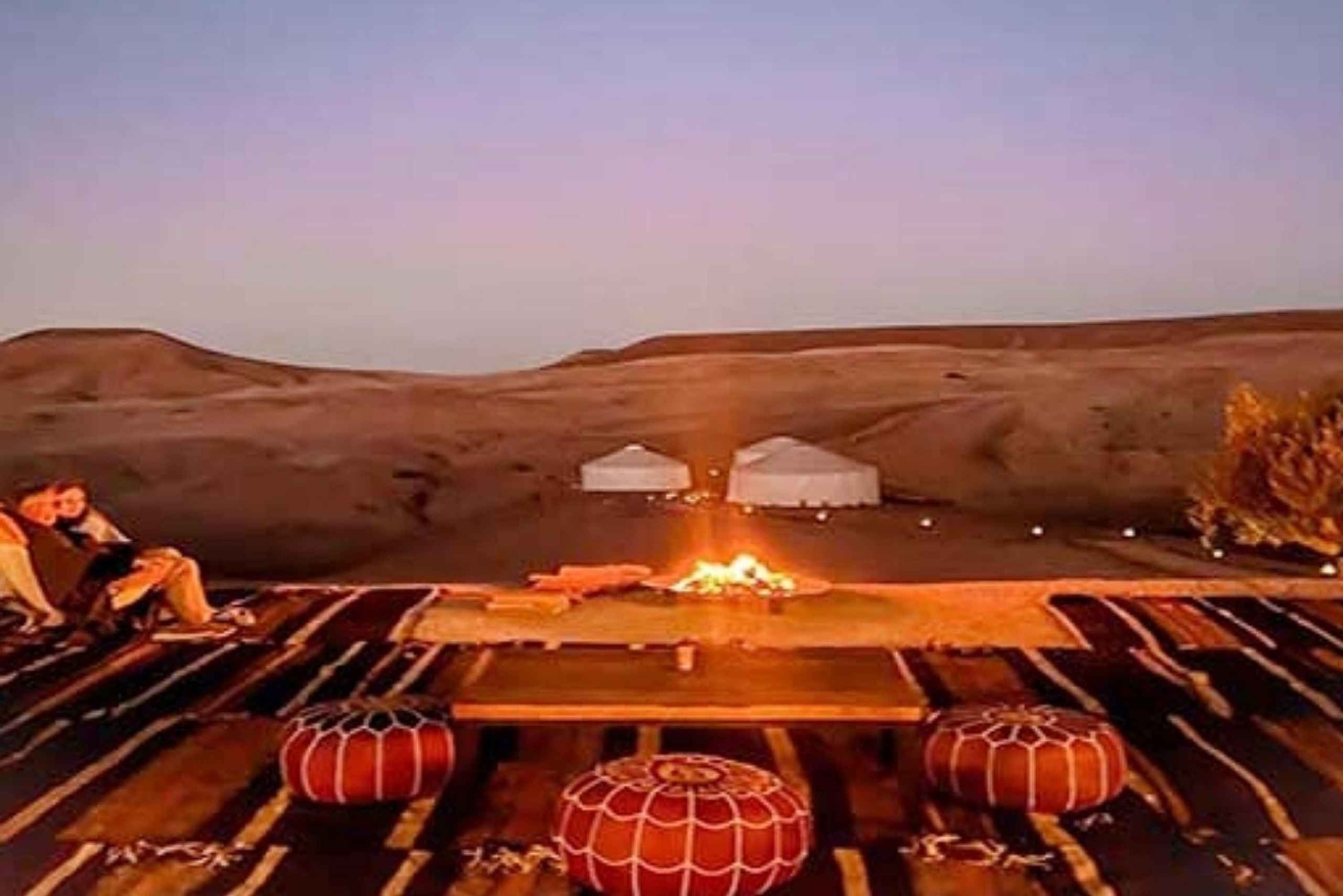 3 Reviewsマラケシュ発のツアーで、アガファイ砂漠の夕暮れ時に魅惑的なディナー、ライブショー、ラクダ乗りをお楽しみください。砂丘の上に沈む夕日を眺め、星空を眺めましょう。