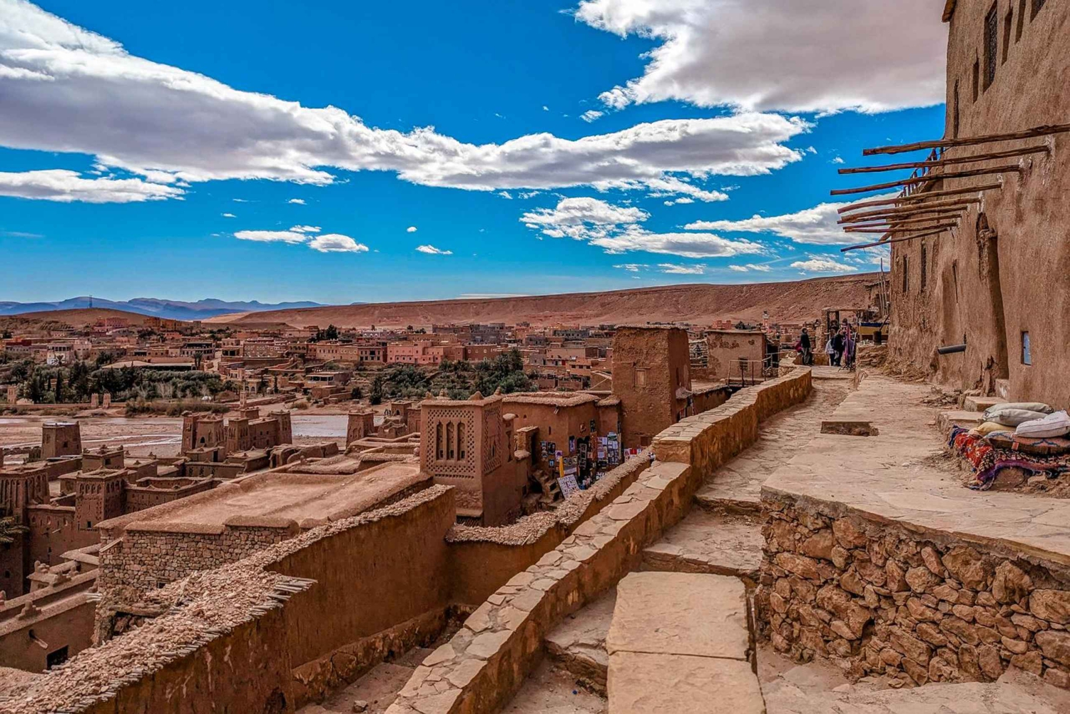 マラケシュからザゴラまで往復する 2 日間の冒険に備えましょう。1 日目は、ユネスコ世界遺産のカスバ アイト ベン ハドゥで何世紀にもわたる歴史に浸ります。その後、無数のクサール (要塞化された部族の村) とカスバが点在するドラア渓谷を横断します。カメラをお忘れなく! ラクダに乗って忘れられない夕日を眺め、ザゴラの砂丘で星空の下でディナーを堪能して 1 日を終えます。朝早く起きて感動的な日の出を眺め、朝食をとった後、再び乗馬でワルザザートを通り、魅惑的なアトラス山脈を通り過ぎて、故郷のマラケシュに戻ります。忘れられない体験が待っています。シートベルトを締めてください!!宿泊施設: Caravane du Sud Luxury Camp または同等の施設 (高級) シェアツアーの場合: アイット ベン ハドゥのガイドは含まれていませんが、1 人あたり約 2 ユーロでグループツアーに単独で参加できます。Includes