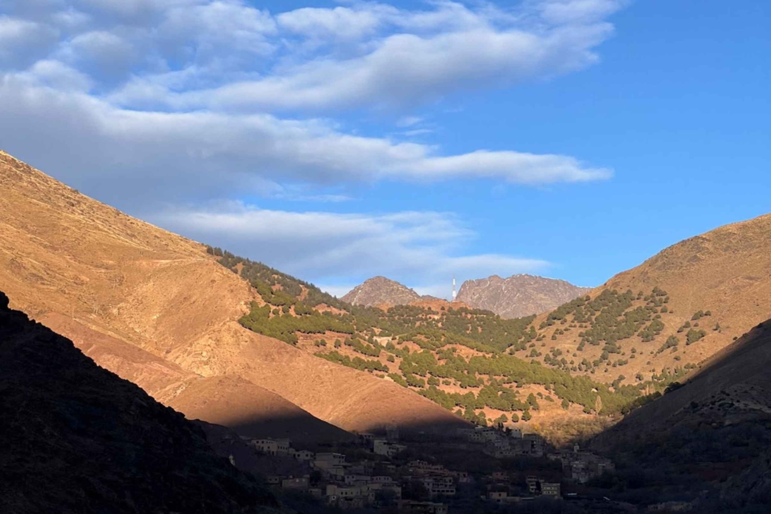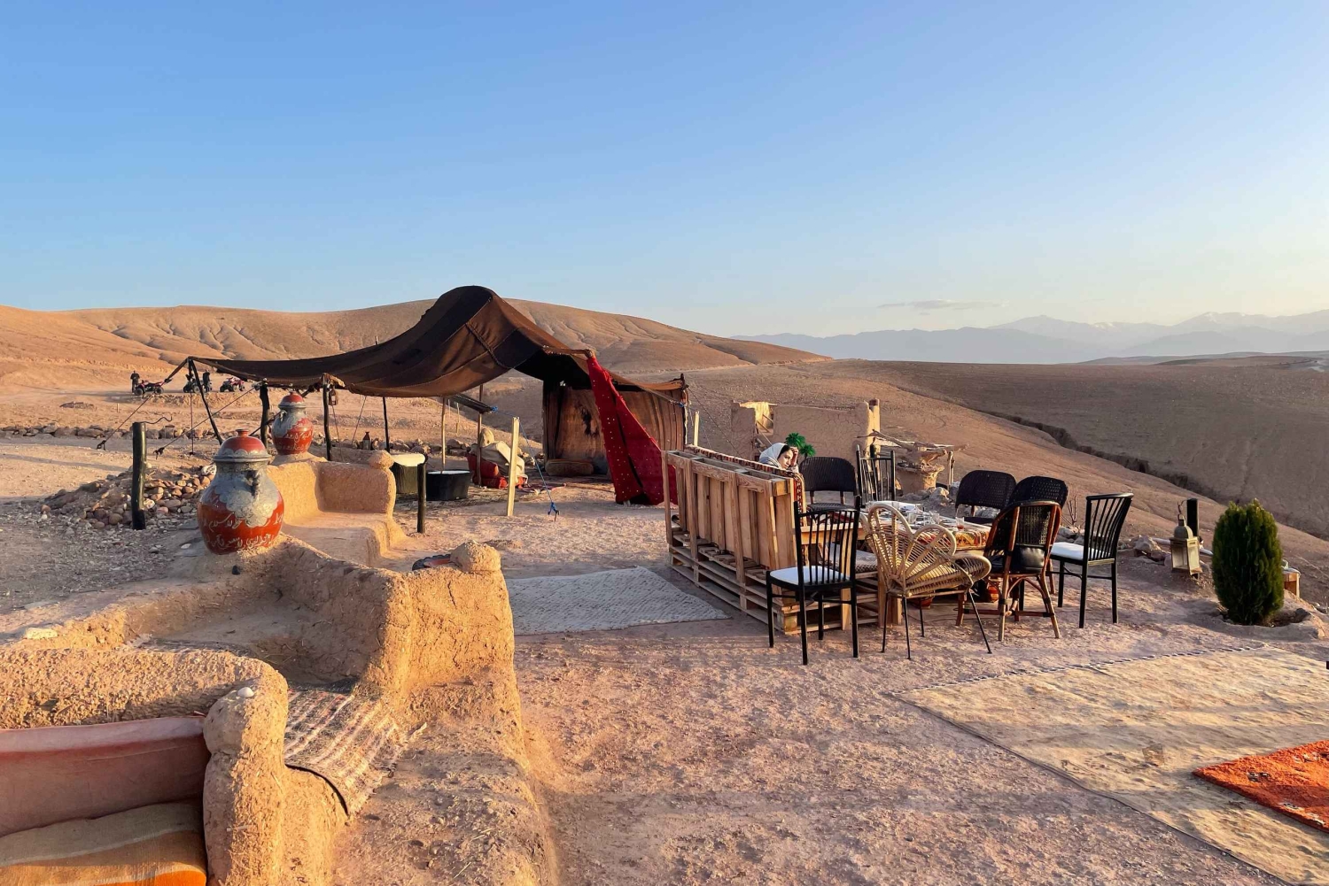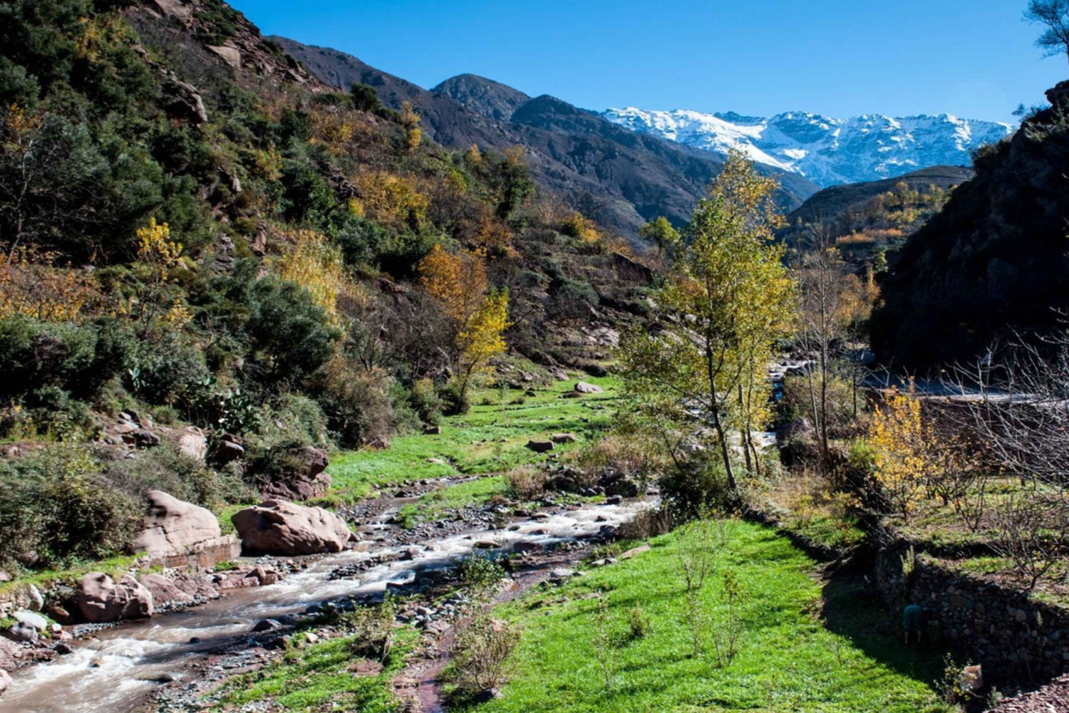 アトラス山脈とアガファイ砂漠への日帰り旅行でマラケシュを出発します。本格的なモロッコのランチを求めてイムリルに向かいます。山に登り、アガファイの砂漠で夕日を眺めましょう。 宿泊施設から迎えに来て、アトラス山脈への旅を始めましょう。 Tahnaout の土地に立ち寄り、絵のように美しい景色を眺めながら数分間過ごしましょう。 イムリルの小さな村に到着し、渓谷のパノラマの景色を望むレストランでおいしいランチを楽しみましょう。タジンや季節のフルーツなど、伝統的なモロッコ料理をお試しください。 イムリルからアトラス山脈に向かい、ギザギザの巨大な岩が地平線上に成長するのを見ます。山を登りながら周囲のことを学び、下の世界の信じられないほどの景色を体験してください。 My Brahim の町を通る魅惑的な道を通り、Agafay Desert に到着します。広がる砂丘に沈む夕日を眺めながら、心地よいミントティーでリフレッシュしてください。 忘れられない一日を過ごした後、マラケシュに戻ります。Includes
