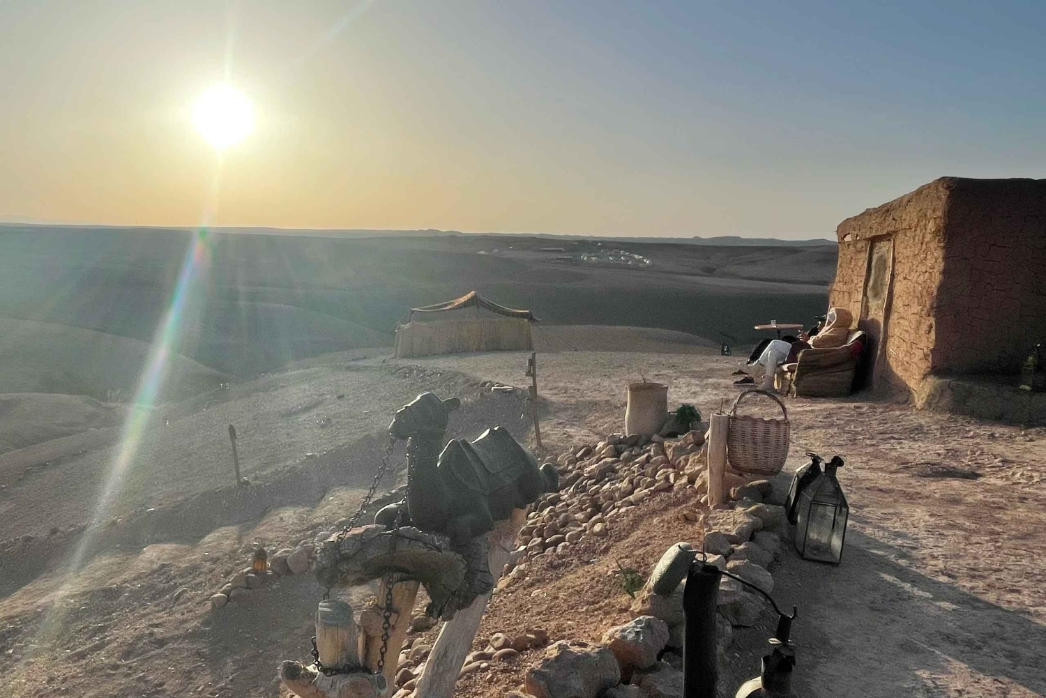 - アガファイ砂漠でミントティーを飲みながら、砂浜に沈む雄大な夕日を眺めましょう
