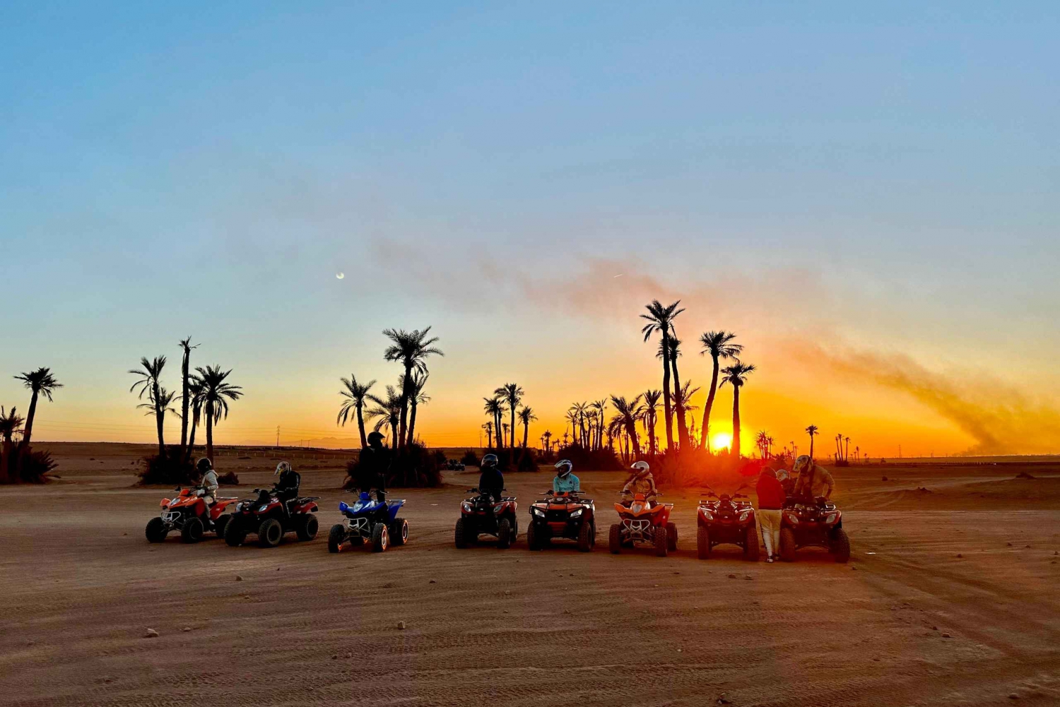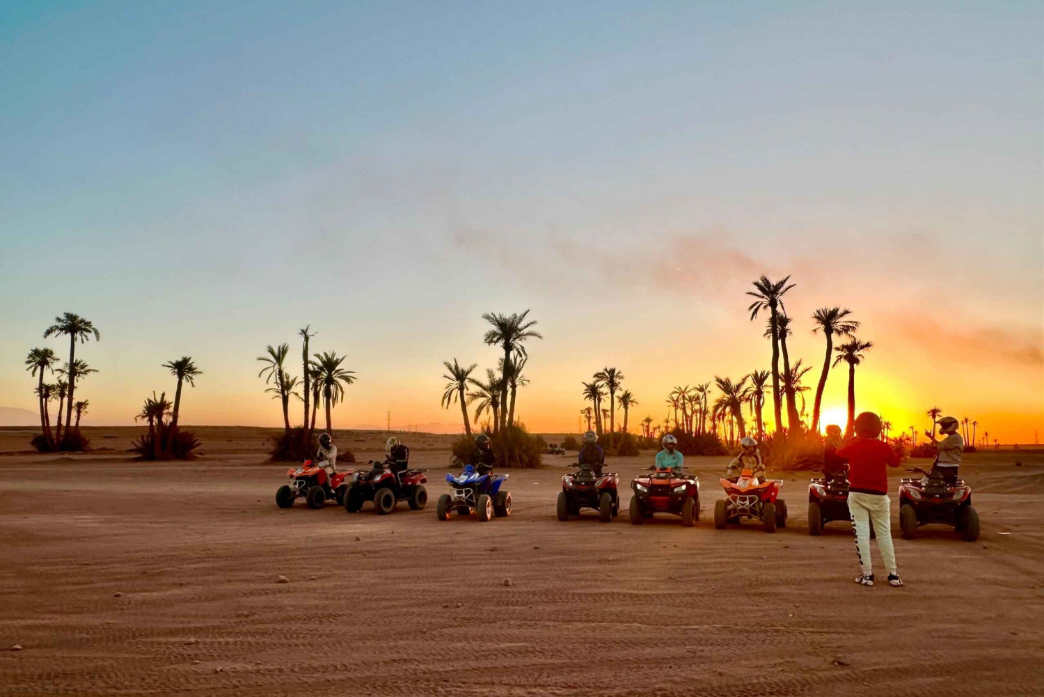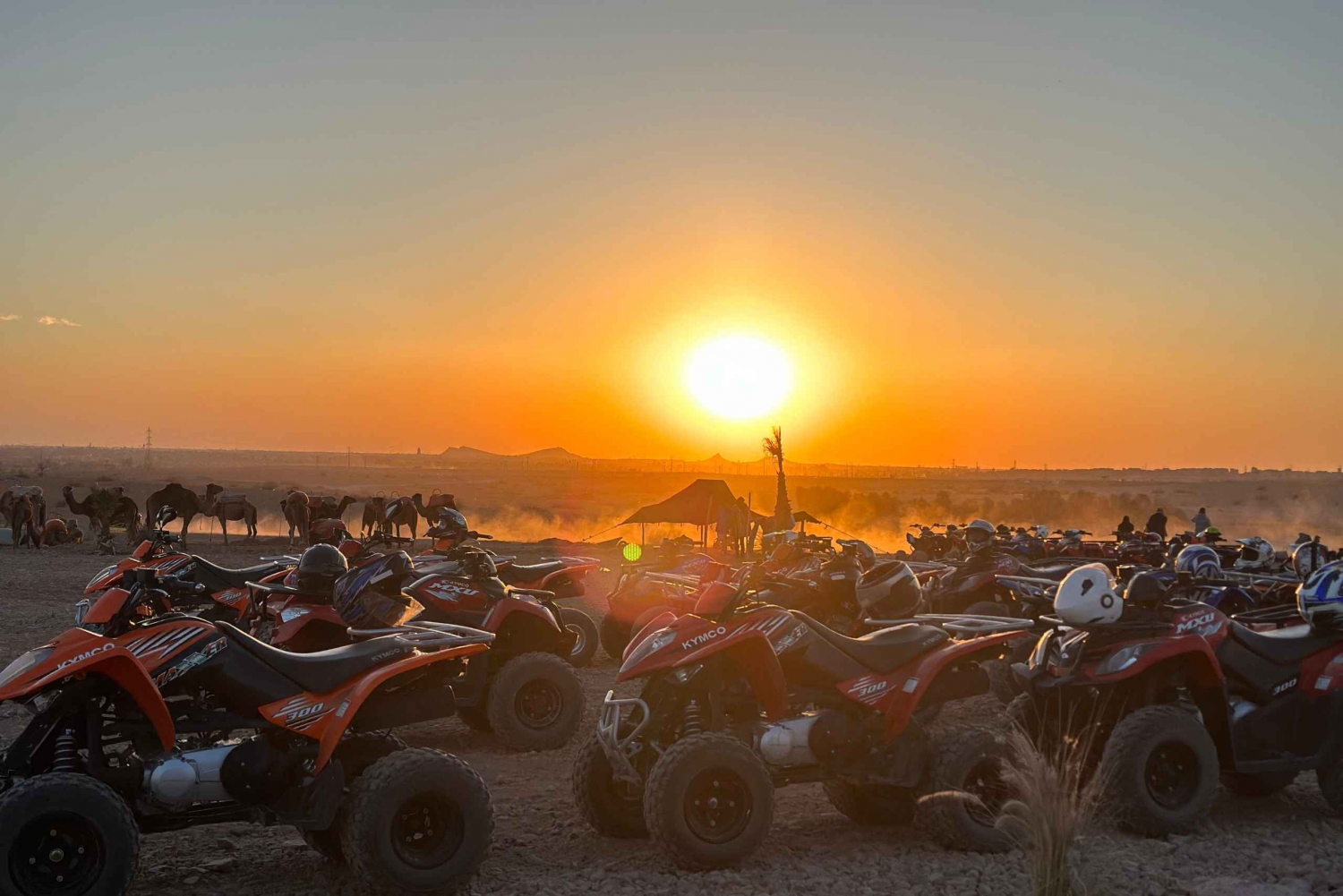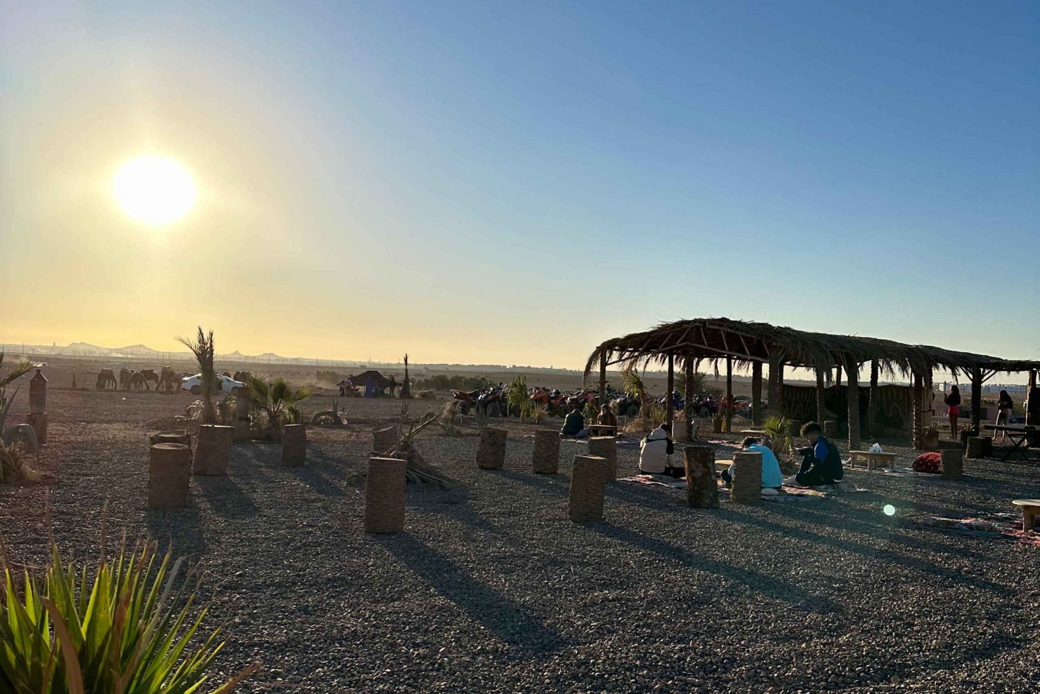 マラケシュの砂漠の端に到着すると、現地ガイドが温かくお迎えし、冒険が始まります。ラクダの扱いと安全について簡単に説明を受けた後、ラクダに乗り、ゆっくりと揺れるこの伝統的な移動手段のリズムに身を任せてください。出発すると、賑やかな街が後ろに消えていき、目の前には静かで広大な砂漠が広がります。 ヤシ園、乾燥した平原、小さな日干し煉瓦の家々を縫うように続く静かな道を進んでください。道中、古くからの伝統に従って暮らす地元の人々がいる、本物のベルベル人の村を通過します。ガイドがこの地域の日常生活、文化、歴史についてお話しするので、景観とのつながりをより深めることができます。 砂の道から砂漠の岩場へと景色が変わるたびに、写真撮影のために立ち止まってください。遠くにはアトラス山脈が見えることも多くございます。ラクダ乗りのゆっくりとした穏やかなペースをお楽しみください。静寂と美しい環境を満喫する時間をお過ごしいただけます。 旅の途中で、地元の家や日陰のある休憩所で休憩を取りましょう。ここで、ミントティーと伝統的なお菓子をお出しし、モロッコのおもてなしをお楽しみいただけます。リラックスして質問をしたり、周囲で展開する村の生活を観察したりするのに最適な時間です。 休憩の後、夕方の光や夕暮れの輝きの中、ラクダの旅を続けましょう。砂漠はさらに幻想的な風景に変わります。ツアーは出発地点で終了し、ラクダとガイドに別れを告げます。美しい思い出と、マラケシュの田園地帯の魅力を心に残してお帰りください。Includes