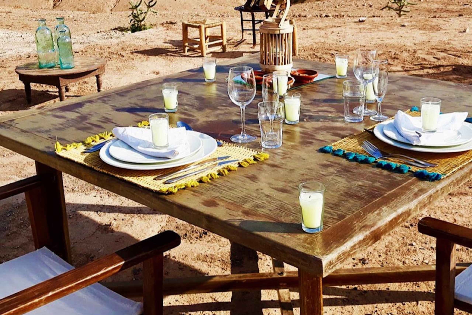 スリル満点のラクダ乗りと星空の下での楽しいディナーで、砂漠の魔法を体験してください。砂漠の黄金の国に足を踏み入れ、周囲に広がる広大な大地の驚くべき美しさに驚嘆してください。穏やかなラクダの上に座り、その動きのリズムに合わせて揺れます。砂丘を横切り、日が沈むにつれて、空がオレンジ、ピンク、紫の色合いのキャンバスに変わり、超現実的な雰囲気を作り出すのを目撃してください。たき火の周りに集まり、手を温めながら、伝統的なアラビア料理から各国の人気料理まで、食欲をそそる料理を取り揃えた豪華なディナーをお楽しみください。魅惑的な音楽とダンスのパフォーマンスで、驚きと興奮の世界へお連れします。途中、アルガンオイル女性協同組合を訪問します(商業目的ではありません)。協同組合のメンバーがアルガンオイルの製造プロセスを喜んで見せてくれます。女性たちの伝統的な技術を見学しながら、ナッツを割って手作業でペースト状にする骨の折れる作業も見ることができます。Includes