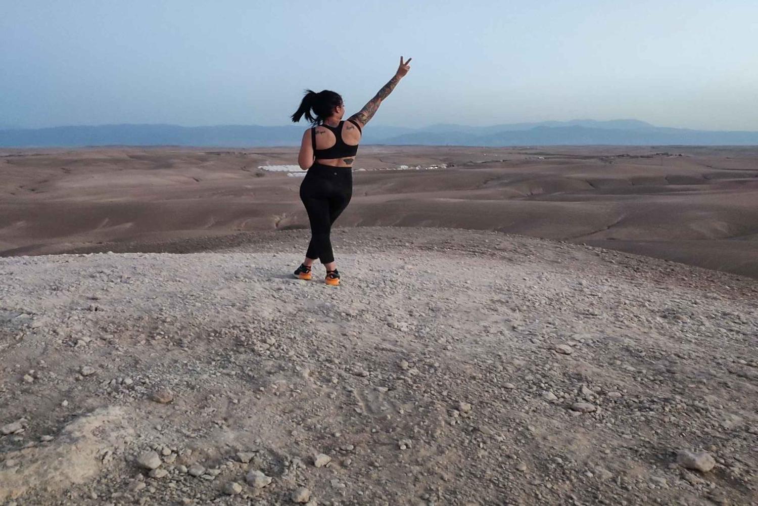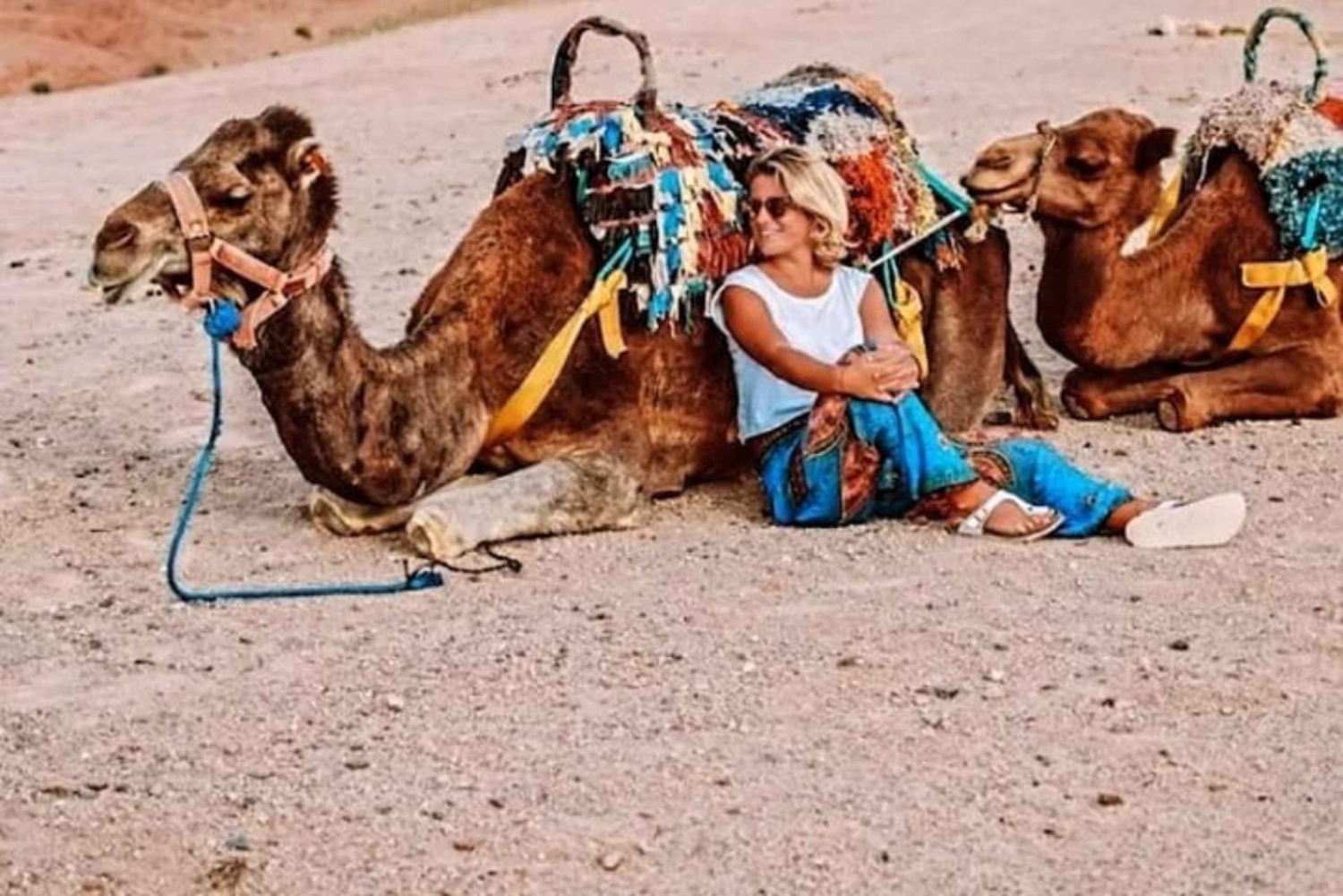マラケシュ発アガファイ砂漠アドベンチャー 四輪バギー・ラクダ乗り・夕日観賞・ディナー&ショー・ホテル送迎 マラケシュ発、アガファイ砂漠へのオールインクルーシブでアドレナリン全開のイブニングツアーにご参加ください。オフロードアドベンチャー、ベルベル人のおもてなし、アトラス山脈の裾野の壮大な景色が融合した、まさに一生に一度の体験です。 旅は14:00、15:00、または16:00に始まります。ホテルでのお迎え、またはマラケシュ中心部の7つの無料集合場所のいずれかでお会いしましょう。バスまたはバンでの短時間の移動サービスを経て、アガファイ砂漠の中心部にある伝統的な砂漠キャンプに到着します。赤い街のすぐ外にある、岩が多く月のような地形で、サハラとは異なる息をのむようなパノラマをご覧いただけます。 アドレナリンを感じるアガファイの四輪バギーツアー ヘルメットとゴーグルを着用し、エンジンをかけましょう。アガファイのワイルドなトレイルをスリリングな四輪バギーで走り抜けます。認定を受けた英語ガイドがご案内するこの四輪バギーツアーは、あらゆるレベルの方にご参加いただけるよう設計されており、少人数制で究極のオフロードアドベンチャーをお楽しみいただく前に、安全に関する説明をさせていただきます。 夕暮れのキャメルトレッキング – 時代を超えたモロッコ体験をお楽しみください スリル満点のアクティビティの後は、黄金の砂漠をラクダに乗って夕日を眺めながらリラックスしてください。この穏やかなキャメルトレッキングでは、素晴らしい写真撮影の機会と、モロッコの時代を超越した風景をゆっくりと楽しむロマンチックな旅が楽しめます。お一人様でも、ご家族連れでも、カップルでも、この家族向けの体験は必見です。 星空の下でのディナー – 文化的なごちそう 太陽が沈む頃、星空の下で本格的なベルベル料理のディナーをお楽しみください。タジン、クスクス、フレッシュフルーツなど、モロッコの伝統料理を、ベルベルのテントの下で快適な雰囲気の中でお楽しみください。ライブショー、グナワ音楽、フォークダンス、さらには砂漠の夜を照らすファイヤーショーなど、魔法のような夜をお楽しみください。 旅行者への重要なヒント: - 重ね着ができる、快適な服装をご着用ください - 歩きやすい、つま先が空いていない靴をご着用ください - 思い出を残すためのカメラをご用意ください - 水と日焼け止めをご用意ください - 夜の涼しさに備えて薄手のジャケットをご用意ください おすすめの方: - 冒険を楽しみたい方 - 文化探検家の皆様 カップルのお客様 - 写真愛好家の皆様 - ユニークな体験を求める方 特別な特徴: - 保険(全適用)をご用意しております - 最高品質の機器をご用意しております - さまざまなスキルレベルに対応いたします 包括的なパッケージには以下が含まれます: - 四輪バギーアドベンチャー - ラクダに乗ってトレッキング体験をお楽しみください - グルメな砂漠でのディナーをお楽しみください - 文化パフォーマンス 往復送迎サービス 当社を選ぶ理由 これは単なるツアーではありません。モロッコの魂に触れる、心を変える旅です。一瞬一瞬が物語を語り、あらゆる風景が古代の秘密をささやきます。Includes