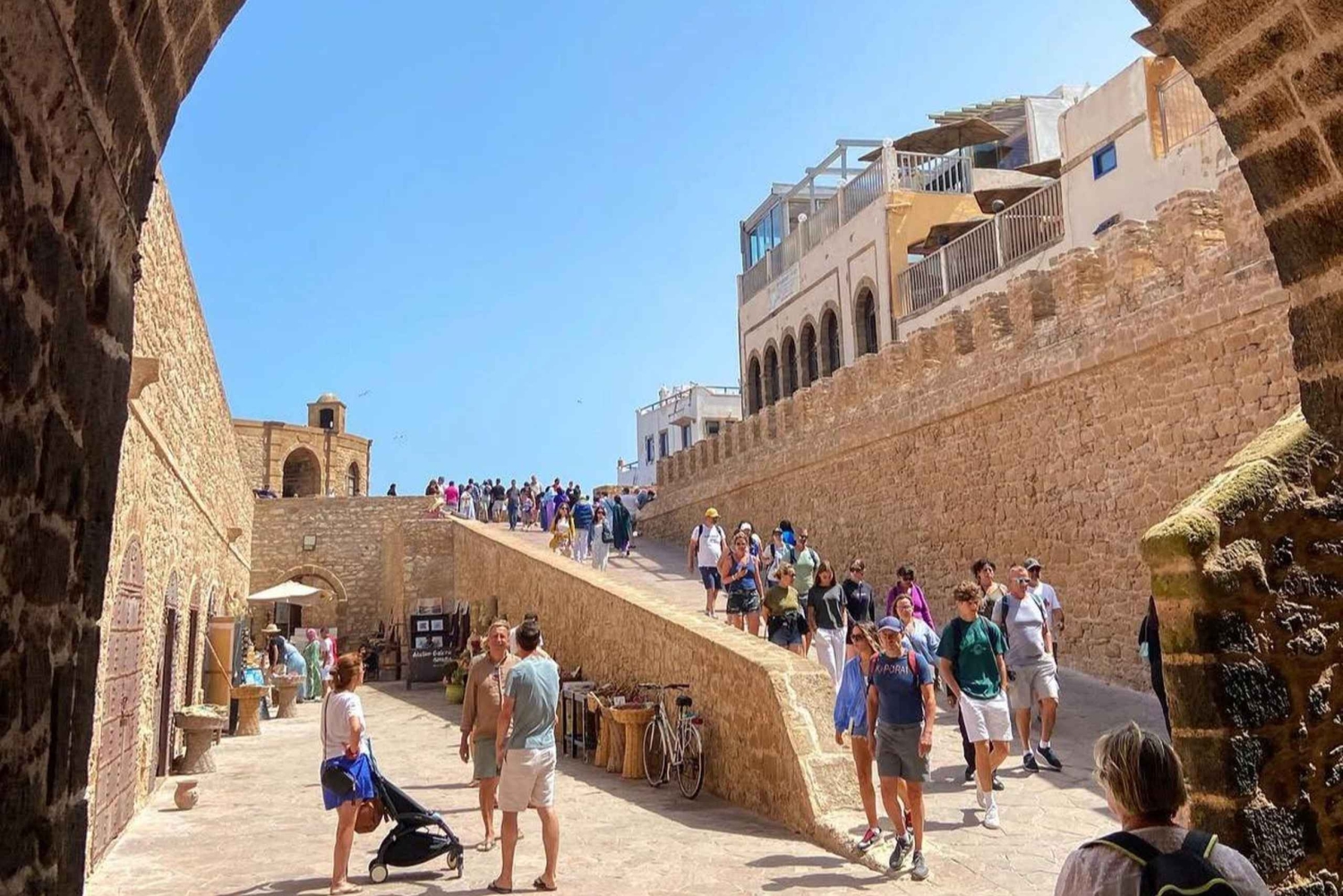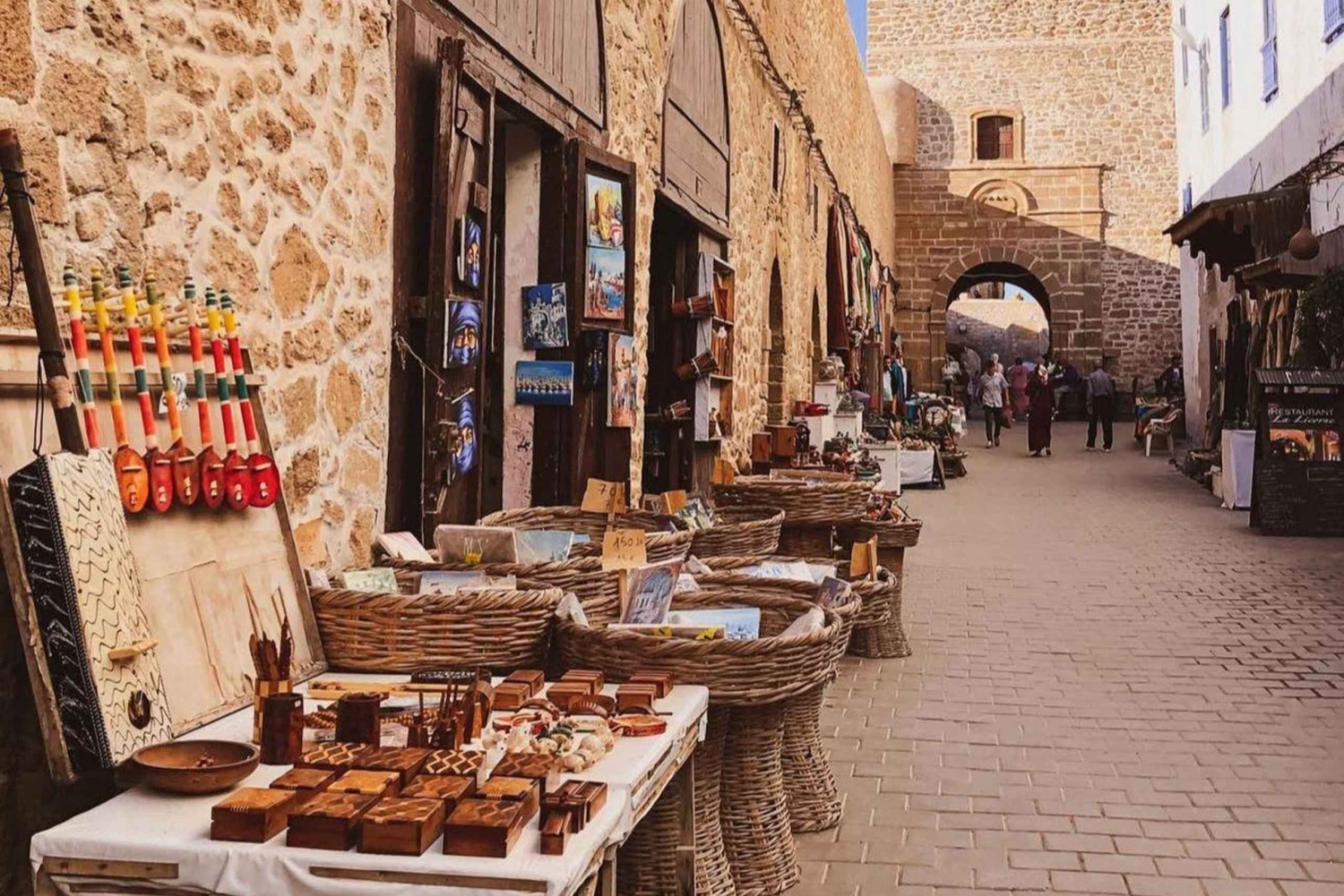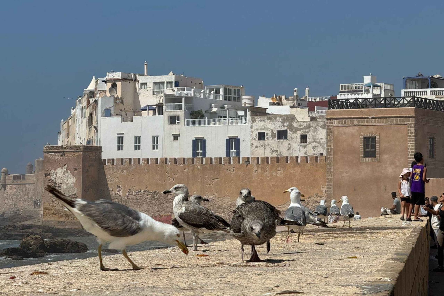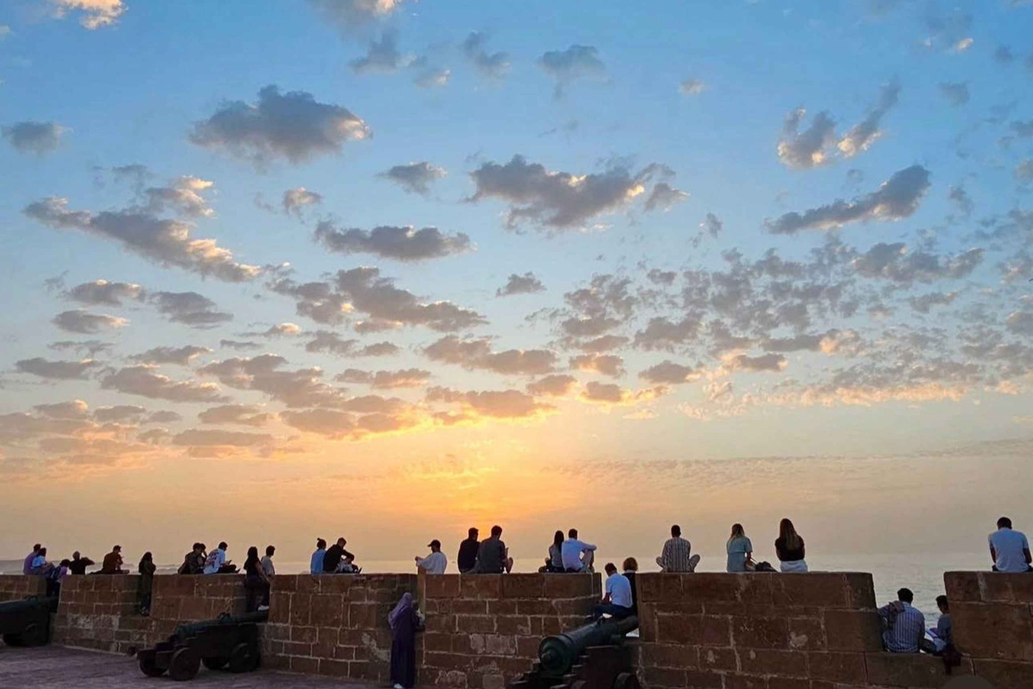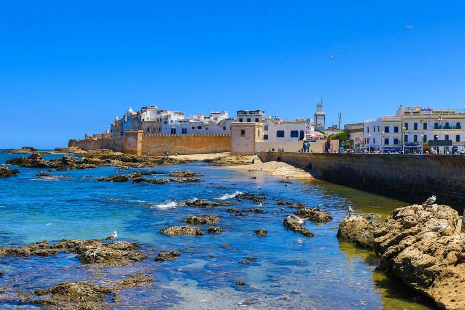 快適な小人数グループでマラケシュを出発し、モロッコの田園風景を眺めながら、魅力的な海岸沿いの街エッサウィラへ向かいます。到着後は、ユネスコ世界遺産に登録されている歴史的なメディナを探索しましょう。青と白の建築、穏やかな雰囲気、活気に満ちた職人の工房が特徴です。賑やかなスカラを散策し、大西洋の波が古いポルトガルの城壁に打ち寄せる様子をご覧ください。 カラフルな漁船が並ぶ伝統的な港を訪れ、地元の漁師たちが毎日の漁獲物を準備している様子をご覧ください。ジュエリー、木工品、スパイス、手工芸品が並ぶスークを自由に散策していただけます。エッサウィラの広い砂浜で、リラックスしたり、写真を撮ったり、新鮮な海の空気を吸ったりしてください。 途中、ユニークなアルガンの木をご覧いただき、地元の女性協同組合からアルガンオイルの生産について学ぶことができます。この日帰りツアーでは、文化、歴史、オーシャンビュー、そしてマラケシュからのリラックスした逃避行をお楽しみいただけます。少人数のフレンドリーなグループでの発見を求める旅行者の皆様に最適です。Includes