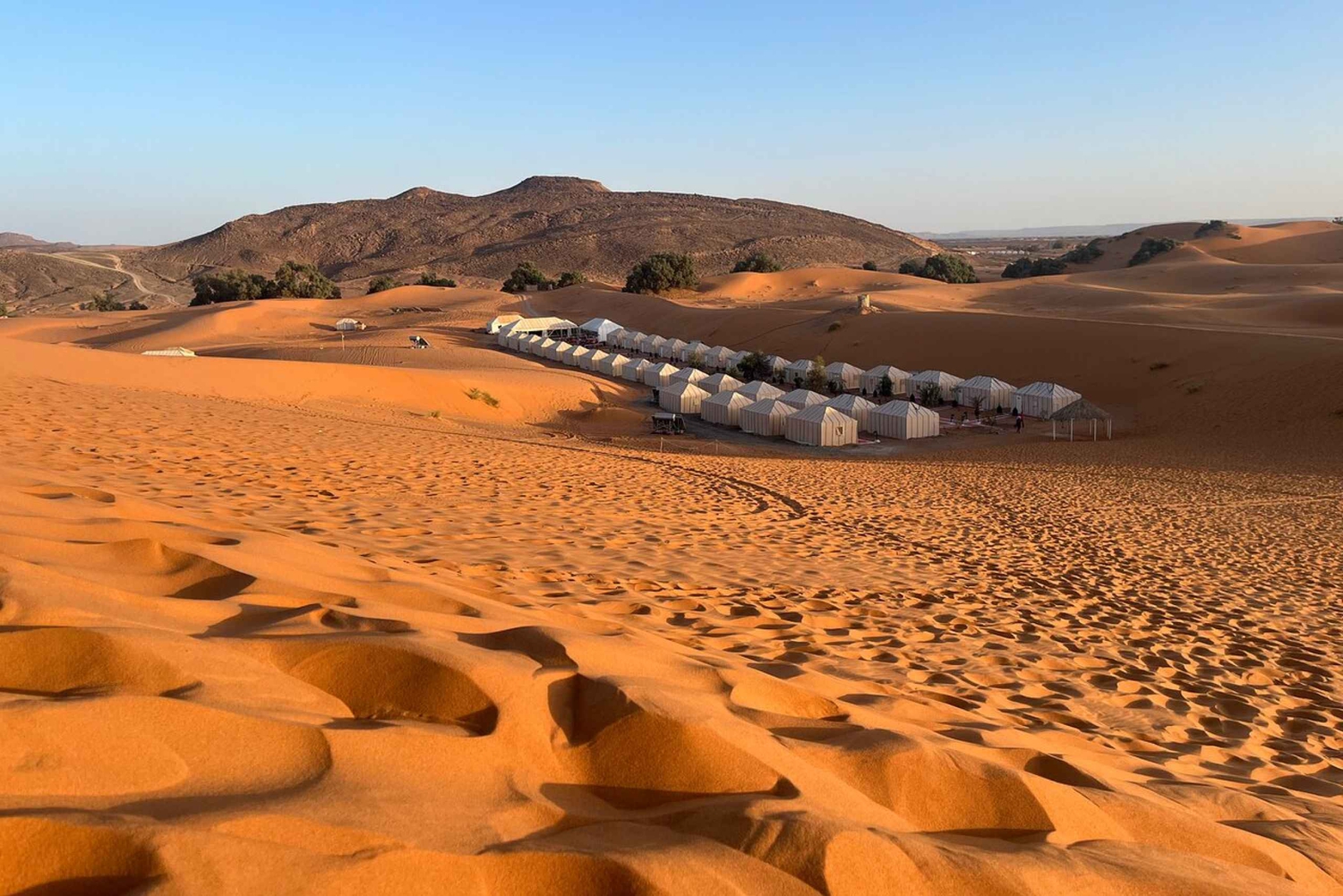 - 荷物は歓迎します。砂漠キャンプ中はバンに安全に保管されます ラクダ乗りとキャンプでの宿泊用に小さなバックパックまたはリュックサックを用意してください 冬には暖かい毛布が提供されますが、気温が 0°C まで下がることがあるため、暖かい寝間着を持参することをお勧めします ウェットティッシュをお勧めします ラクダ乗りには、エルグ シェビ砂丘での快適なトレッキングのために、ジーンズ、ズボン、またはロング ショーツを着用することをお勧めします サンドボードに興味がある場合は、キャンプにサンドボードを持ち込めるかどうかロッジに問い合わせてください ベジタリアンおよびビーガンの食事オプションも用意されています