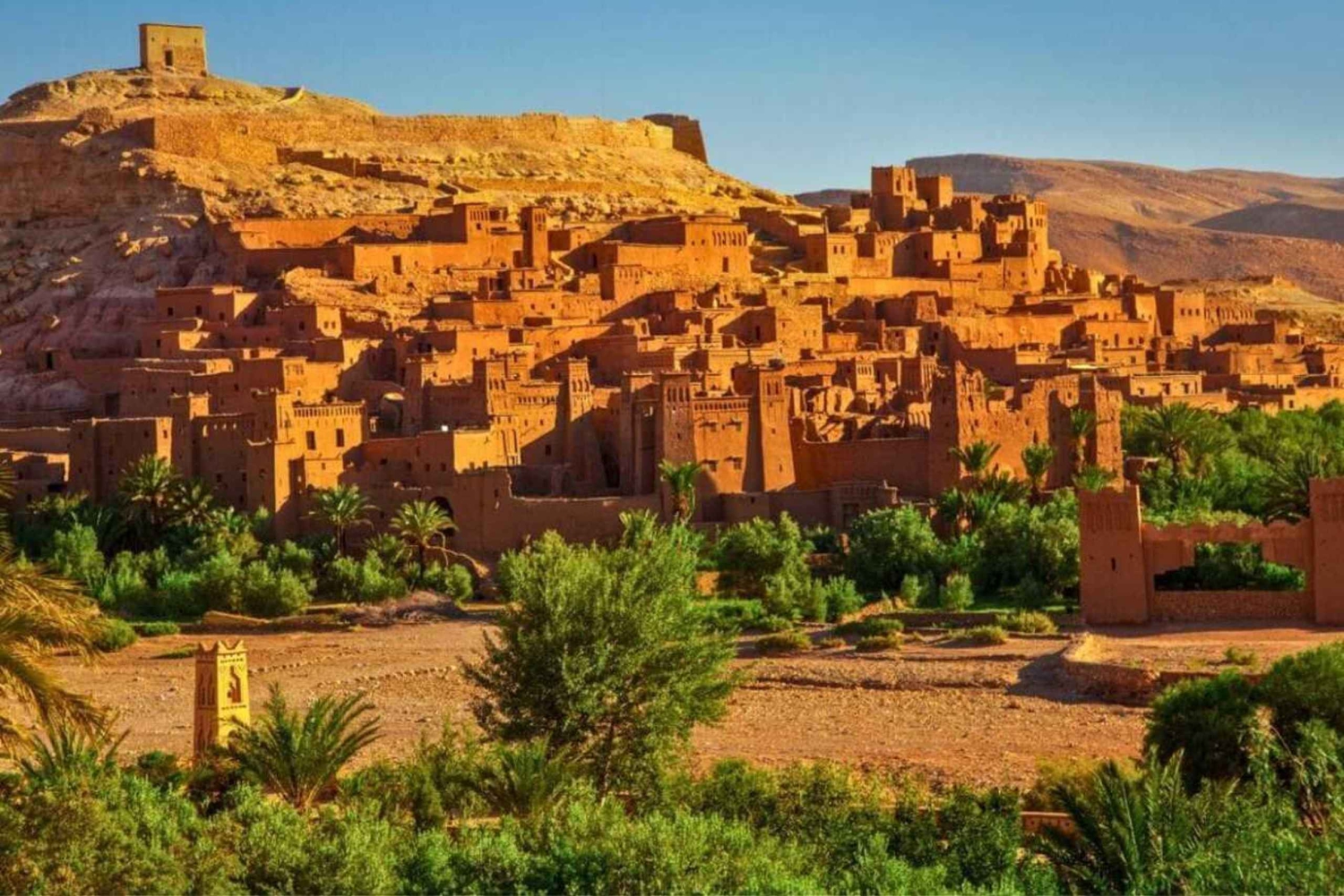 マラケシュのご宿泊先からのホテル送迎サービスをご利用いただけます エアコン完備のモダンな車両での往復送迎サービスをご利用いただけます 専門の運転手/ガイド(英語、フランス語、スペイン語)をご用意いたします トゥフリフト村近くのアイット・バルカ山頂での写真撮影と朝食休憩(朝食は含まれておりません) 高アトラス山脈とティジ・ヌ・ティシュカ峠(2,260m)を走る風光明媚なドライブをお楽しみください ワルザザートのガイド付きツアー – 主要な観光スポットや展望台をご案内いたします アトラス・フィルム・スタジオの入場チケットとガイドツアーをご利用いただけます パノラマの景色を楽しめる伝統的なモロッコ料理店でのランチ休憩(食事は含まれておりません) ユネスコ世界遺産のカスバ・アイット・ベン・ハドゥを訪れ、ガイド付きウォーキングツアーをお楽しみください 主要な停車地点での散策や写真撮影のための自由時間をお楽しみください 旅行中にボトル入りの水をご用意いたします 燃料、税金、通行料、駐車料金はすべて含まれております 少人数グループで、よりパーソナライズされた体験をお楽しみください(オプション:プライベートツアーへのアップグレード)Important Information