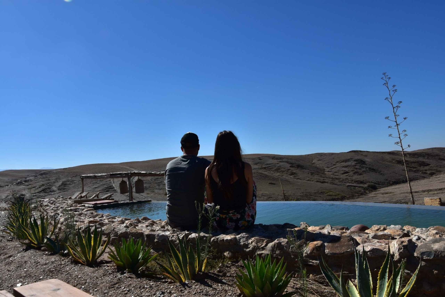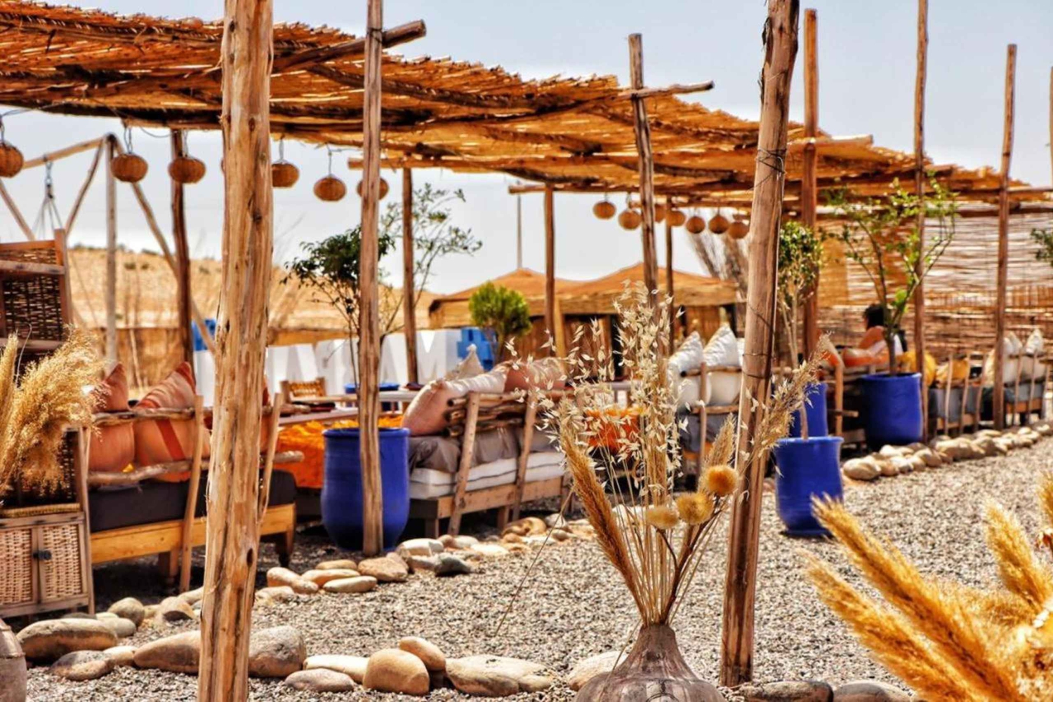 8 Reviewsマラケシュ発のこの少人数グループツアーでは、アガファイ砂漠に囲まれた夕日の幻想的なディナーを楽しみ、豪華な砂漠の場所で伝統的な会席料理をお楽しみください。