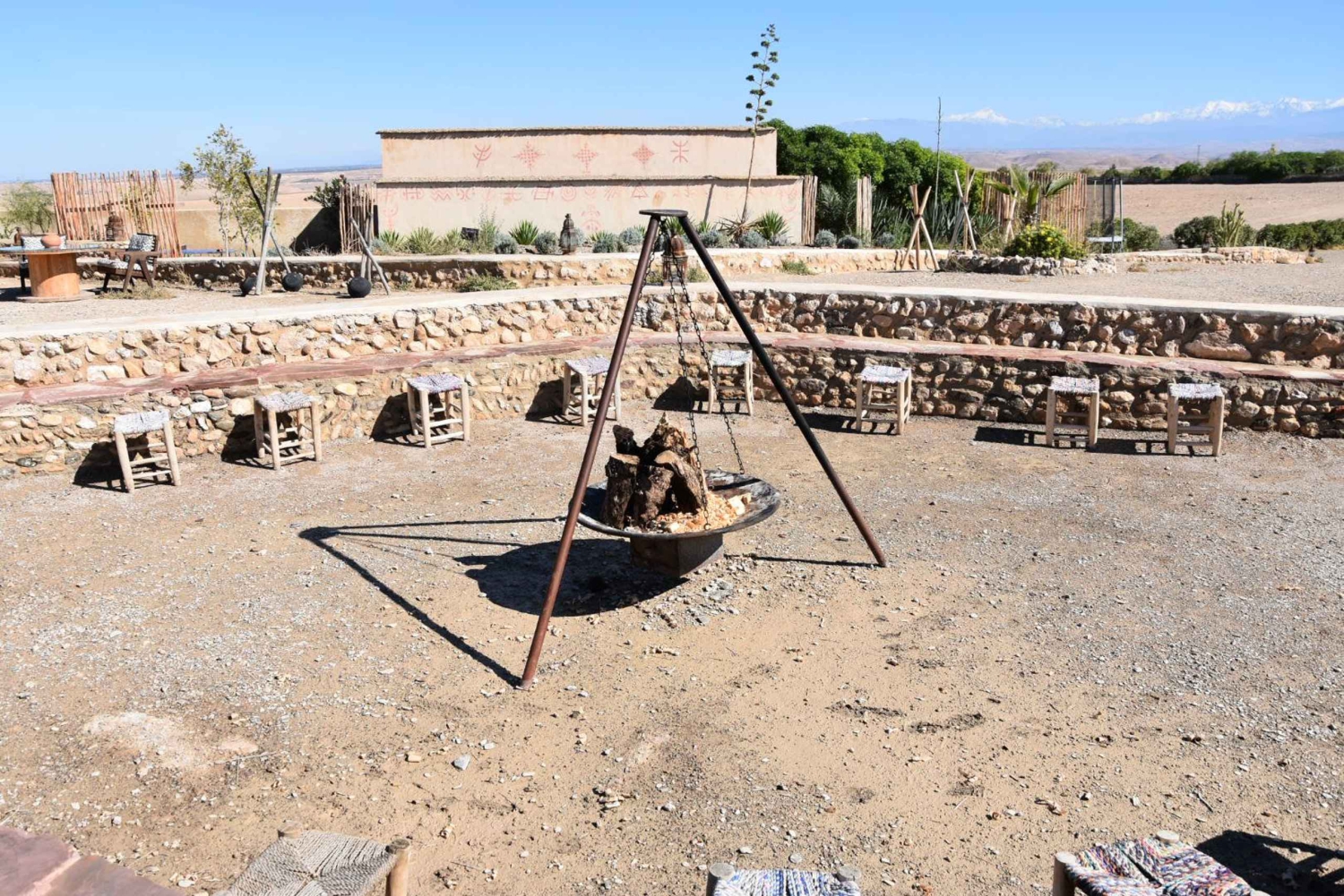 エアコン完備の快適な車両でホテルから出発し、魅惑的なアガファイ砂漠キャンプへ向かう魅惑的な旅に出かけましょう。息を呑むような素晴らしい食事の冒険に浸る準備をしてください。本物のベルベルのもてなしの真髄を味わいながら、広大な砂漠の向こうに太陽が別れを告げ、空を鮮やかな色で染める様子を目撃してください。 星がちりばめられた夜空の天蓋に彩られた、至宝の伝統的モロッコ料理を五感で味わってください。遊牧民のテントの中に佇み、パチパチとはじけるキャンプファイヤーの明滅する暖かさに囲まれ、口の中で踊るおいしい風味を味わってください。砂漠の深い静寂のメロディーがあなたの魂を魅了し、忘れられない静けさの交響曲を生み出します。 お部屋に落ち着くと、香り豊かなウェルカム ティーと、食欲をそそるおいしいペストリーの品揃えでお出迎えいたします。席に着き、食欲をそそるビロードのような伝統的なスープ、ハリラの魅惑的な香りで始まる極上のごちそうをお楽しみください。鮮やかなサラダのさわやかな新鮮さと、最高の料理の熟練によって作られたジューシーな魅力のビーフとチキンのタジンをお楽しみください。そして、この美食の旅の締めくくりには、元気を取り戻してくれる香り豊かな紅茶とともに、季節の新鮮なフルーツの甘さをお楽しみください。 あなたの心に永遠に残る思い出で彩られたこの素晴らしい夜が終われば、砂漠の抱擁に別れを告げる時が来るでしょう。この素晴らしい体験のエッセンスを携えて、活気に満ちたマラケシュの街の快適な宿泊施設に優雅に戻りながら、帰りの旅をお楽しみください。Includes