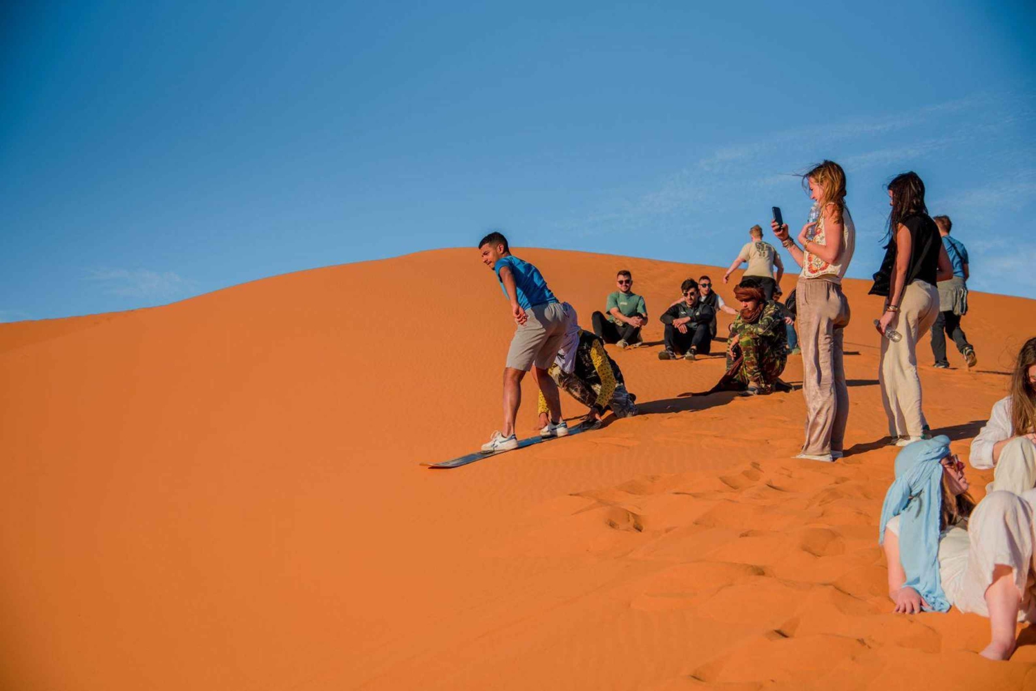 マラケシュ発メルズーガ行き、3日間の家族向けアドベンチャーへご出発ください。モロッコを代表する景観、古代カスバ、サハラ砂漠の黄金の砂を探索します。この忘れられない旅は、あらゆる年齢層の旅行者向けに、文化、歴史、砂漠のスリルを融合させております。 1日目:マラケシュ – ハイアトラス山脈 – アイト・ベン・ハドゥ – ダデス渓谷 – ティンギル 旅の始まりは、ハイアトラス山脈を縫うように走る風光明媚なドライブ。ティジ・ン・ティシュカ峠(標高2,260m)を越え、ベルベル人の村々と荒々しい景観のパノラマビューをお楽しみください。ユネスコ世界遺産に登録されたアイット・ベン・ハドゥに立ち寄り、泥レンガのカスバや映画『グラディエーター』『ゲーム・オブ・スローンズ』のロケ地として有名な街並みを鑑賞します。 ガイド付き見学と昼食の後、絵のように美しいダデス渓谷を通り、緑豊かなヤシの木立、奇岩群、風光明媚な谷間を縫うように進み、ティンギールに到着します。快適なホテルに宿泊し、伝統的なモロッコ料理をお楽しみください。 2日目:ティンギル – トドガ渓谷 – メルズーガ – ラクダトレッキング – サハラキャンプ 朝食後、家族写真や短い散策に最適な、そびえ立つ石灰岩の断崖が印象的なトドガ渓谷を探索いたします。サハラ砂漠への玄関口であるメルズーガへ向けて旅を続けます。 夕暮れ時、ガイド付きラクダ隊列でエルグ・シェビ砂丘を横断するトレッキングをお楽しみください。砂漠キャンプに到着後、伝統的なモロッコ料理の夕食、キャンプファイヤーを囲んだベルベル音楽をお楽しみいただき、家族向けの標準テントで星空の下で一夜を過ごします。 3日目:メルズーガ – マラケシュへ戻る 早朝に砂丘の息をのむような日の出をご覧いただけます。朝食後、ラクダまたは4WDでドライバーと合流し、マラケシュへの帰路につきます。途中の風光明媚な渓谷や砂漠の村々を通り抜け、昼食を挟みながら進みます。夕方にマラケシュ到着後、ホテル、リヤド、またはジャマ・エル・フナ広場までお送りいたします。 この3日間のサハラ砂漠アドベンチャーは、モロッコの文化、歴史、砂漠の景観を快適でスタイリッシュに体験したいご家族や予算重視の旅行者に最適です。山岳地帯から黄金の砂丘まで、この旅は永遠に心に残る思い出をお約束いたします。Includes