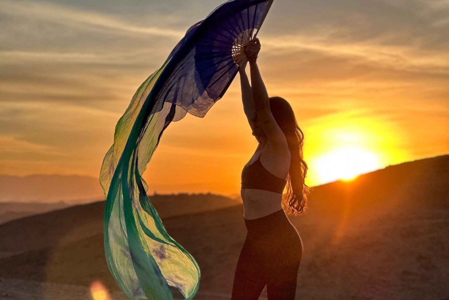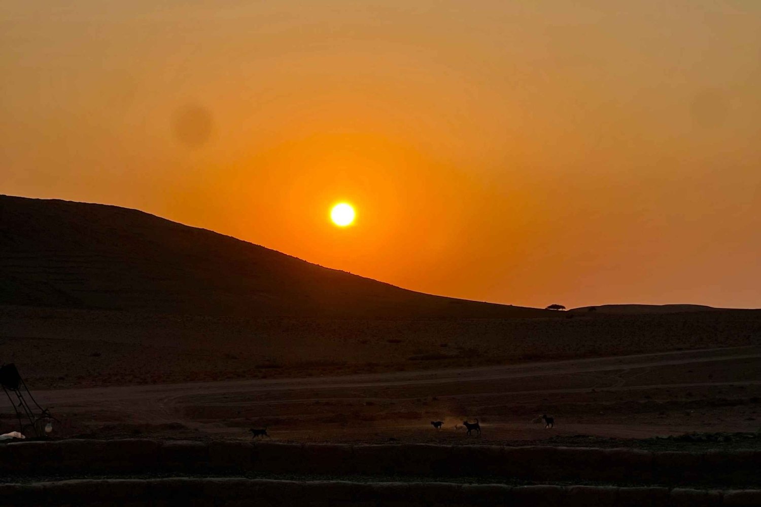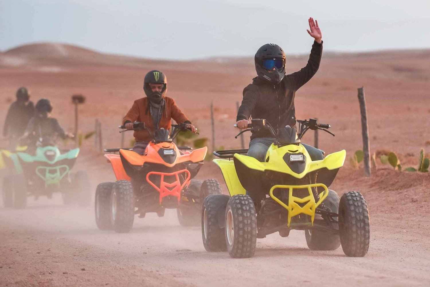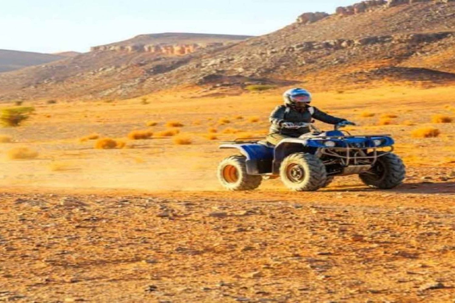 Avontuur in de Agafay-woestijn vanuit Marrakesh Ontsnap aan de drukte van Marrakesh met een onvergetelijke excursie naar de prachtige Agafay-woestijn, waar avontuur, cultuur en ontspanning samenkomen voor een unieke ervaring. Deze alles-in-één reis biedt enkele van de beste woestijnsafari's en gezinsvriendelijke activiteiten die de regio te bieden heeft. Begin met een quadrit en voel de adrenaline stromen terwijl je onder begeleiding van een professionele instructeur over de rotsachtige paden rijdt. Ga lekker zitten voor een luxe woestijndiner onder de sterrenhemel en geniet van de rijke gerechten en dranken van de Marokkaanse keuken. Van tajines en couscous tot muntthee, deze ervaring is even lekker als pittoresk. Of je nu op zoek bent naar avontuur, culturele onderdompeling of wellness en spa's om te ontspannen na je reis, deze Agafay-woestijnervaring heeft voor elk wat wils, inclusief koppels, vrienden en gezinnen. Je kunt zelfs woestijnshows en musicals bijwonen die het Marokkaanse erfgoed vieren. Waarom voor ons kiezen? Omdat het meer is dan alleen een bezoek – het is een transformatieve reis. We nemen je mee voorbij de oppervlakte en brengen je in contact met de ware essentie van Marokko. Elke stap die je zet is een stap in een wereld waar elk moment een verhaal vertelt en elk landschap de oude geheimen van dit magische land fluistert. Ga met ons mee voor een ervaring die een indruk op je ziel zal achterlaten.Includes