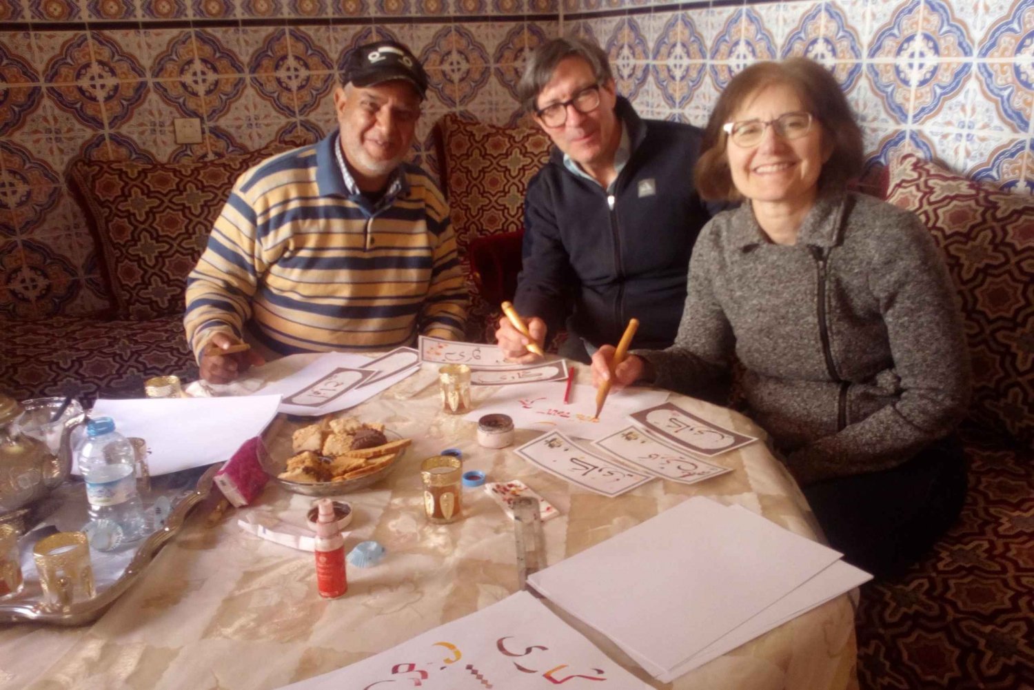 Verrijk je reis naar Marrakech met een authentieke kalligrafieles, gegeven door een inwoner. Doe mee met Noureddine, een ervaren kunstenaar die in zijn 40-jarige carrière vele honderden mensen de kunst van de oude en moderne kalligrafie heeft bijgebracht. In zijn traditionele werkplaats in het hart van Marrakech kun je 4 uur kalligrafie leren en oefenen. Of je nu je eerste kalligrafiestreken maakt of je vaardigheden uitbreidt, de les is geschikt voor iedereen met een liefde voor creativiteit. In de les komen de verschillende schrijfstijlen aan bod en leer je hoe je prachtig vloeiende woorden kunt maken. Er is ook tijd om te genieten van lokale Marokkaanse gebakjes en een kopje thee te drinken met je gastheer terwijl je een vriendelijk gesprek voert en de workshop verkent.Includes