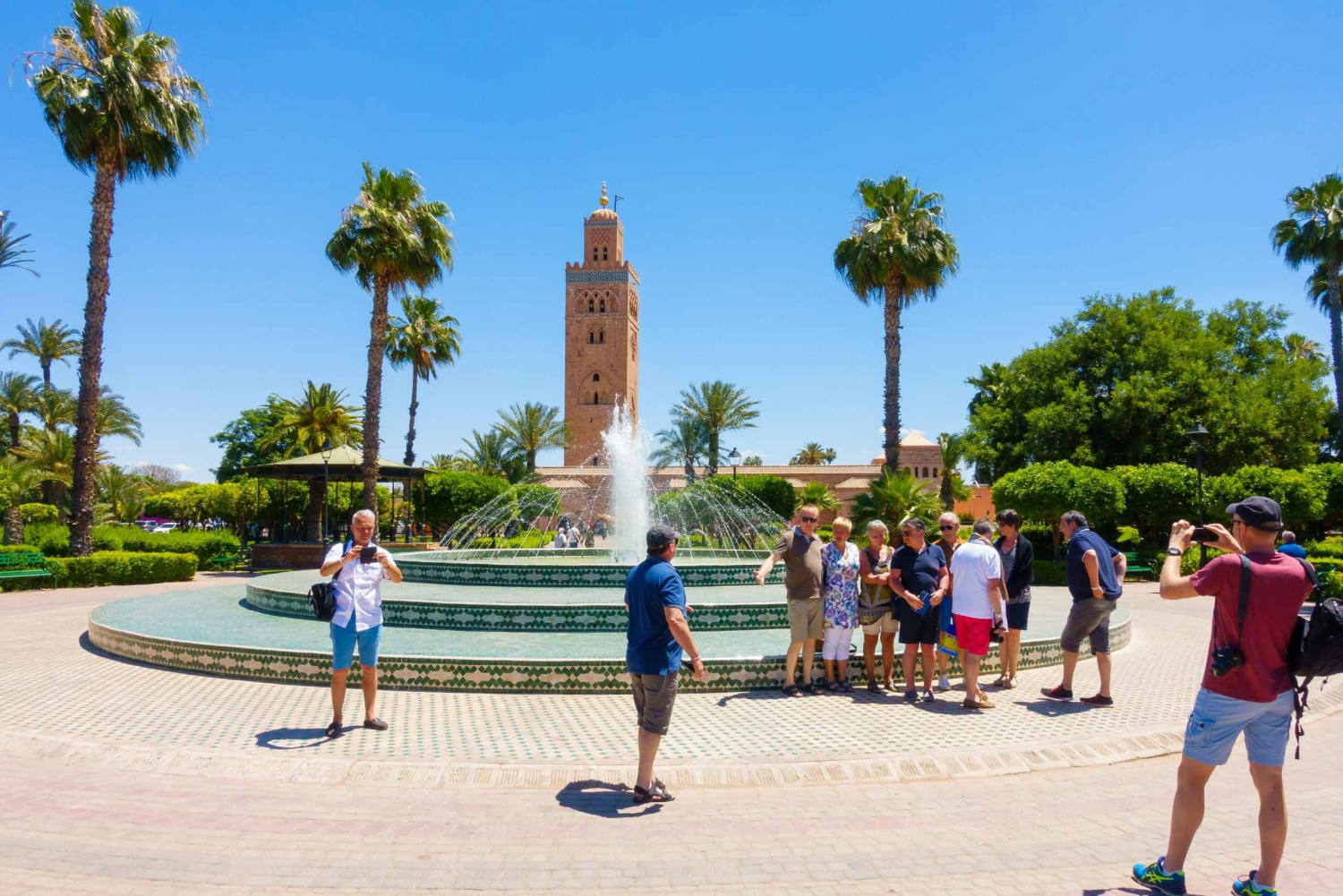 Begin je reis bij het prachtige Bahia Palace, een meesterwerk van Marokkaanse architectuur. Samen met je deskundige gids ontdek je de rijke geschiedenis van het paleis, van de grootvizier die de opdracht gaf tot de ambachtslieden die het tot leven brachten. Stap terug in de 19e eeuw terwijl je boeiende verhalen hoort over koninklijke intriges en de rol van het paleis in de Marokkaanse samenleving. Na het verkennen van het verleden kun je het adembenemende ontwerp van het paleis bewonderen. Wandel door uitgestrekte binnenplaatsen versierd met ingewikkeld zellige tegelwerk, bewonder de fijn bewerkte cederhouten plafonds en kom tot rust in de weelderige koninklijke tuinen. Terwijl je door de weelderige zalen dwaalt, kun je genieten van de naadloze samensmelting van Andalusisch en Marokkaans vakmanschap die dit architectonische juweeltje kenmerkt. Als je het paleis verlaat, maak je een korte stop in de historische Mellah, de voormalige Joodse wijk van Marrakech. Wandel door de smalle straatjes terwijl je gids verhalen vertelt over een ooit bloeiende gemeenschap en haar blijvende erfenis. Bekijk de overblijfselen van hun erfgoed in synagogen en traditionele markten voordat je de levendige Medina ingaat. Je reis eindigt in het hart van Marrakech op het Djemaa El Fna plein. Hier kun je genieten van de bezienswaardigheden, geluiden en geuren van de bruisende souks en kronkelende steegjes, een perfecte afsluiting van een onvergetelijke culturele ervaring.Includes