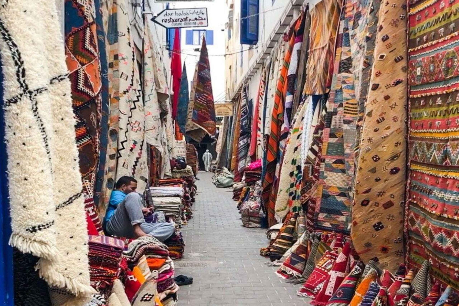 We ontmoeten je om 8:30 uur buiten Café Argana of bij je hotel. Geniet van een schilderachtige reis van drie uur naar Essaouira aan de Atlantische kust van Marokko. Onderweg zie je geiten in arganbomen klimmen en bezoek je een lokale vrouwencoöperatie om te ontdekken hoe arganolie wordt gemaakt. Bij aankomst in Essaouira, een Unesco-werelderfgoedlocatie, heb je 4 uur vrije tijd om op ontdekking te gaan. Wandel door de medina met zijn witgekalkte straten en blauwe luiken, bezoek bruisende soeks en ambachtelijke werkplaatsen, of wandel over het gouden zandstrand. Beklim de Skala de la Kasbah voor een prachtig uitzicht op de oceaan en geniet van verse zeevruchten bij de haven. Je vertrekt rond 16:30 uur uit Essaouira en bent rond 20:00 uur terug in Marrakesh. Met een lokale Berber-gids, een transfer met airconditioning en handige ophaal- en terugbrengservice bij je hotel, combineert deze reis cultuur, natuur en kustcharme. Het belooft een onvergetelijke dag om het Atlantische juweel van Marokko te ontdekken.Includes