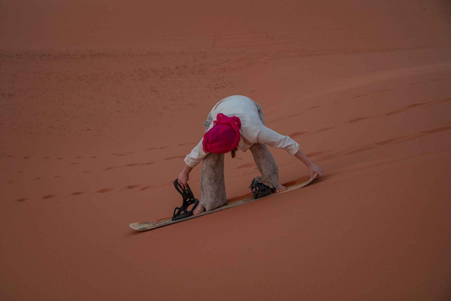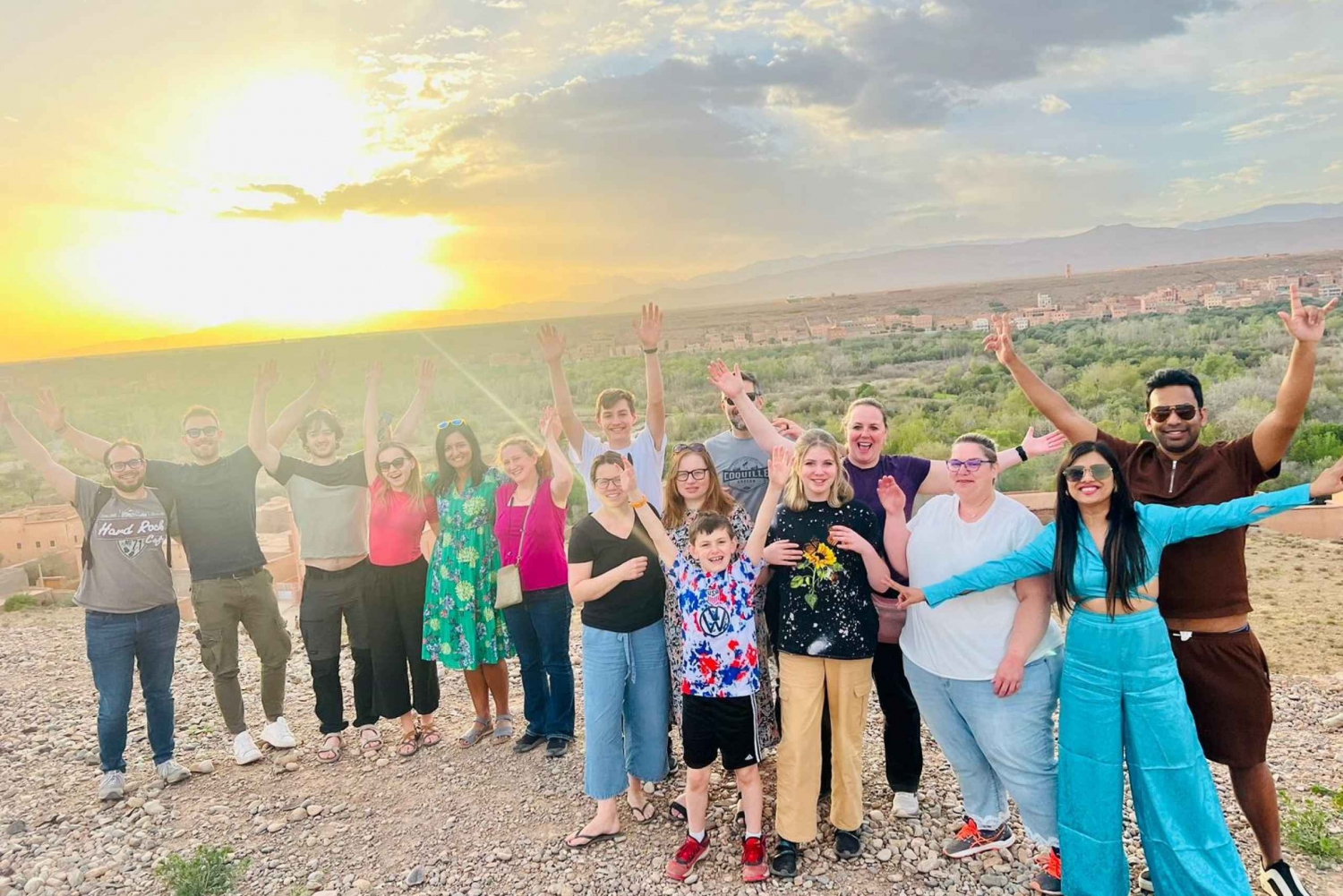 - Turen starter kl. 07.00 (dag 1) og avsluttes rundt kl. 20.30 (dag 3). Hentedetaljer (tid og sted) sendes dagen før innen kl. 17.00 via WhatsApp og e-post. Bestillinger gjort etter kl. 17.00 behandles raskt – hold WhatsApp tilgjengelig. Henting skjer fra hotellet/riad hvis tilgjengelig, ellers blir det oppgitt et møtested innenfor 5 minutters gange. Avlevering følger samme regel. Denne turen inkluderer lange kjøretimer og passer kanskje ikke for personer med ryggproblemer eller reisesyke. I Ouarzazate skiller du deg fra gruppen og fortsetter til Agadir med taxi. Overnattingssted: standardtelt (felles bad) eller luksustelt (private bad). Kamelridning, sandboarding, måltider og transport med firehjulstrekk til leiren er inkludert. Valgfritt: firhjuling (40 €) og buggyturer (på forespørsel). Ta med passende ørkenklær, varme lag for vinternetter og komfortable sko. Været er varmt om sommeren og kaldt om natten om vinteren.