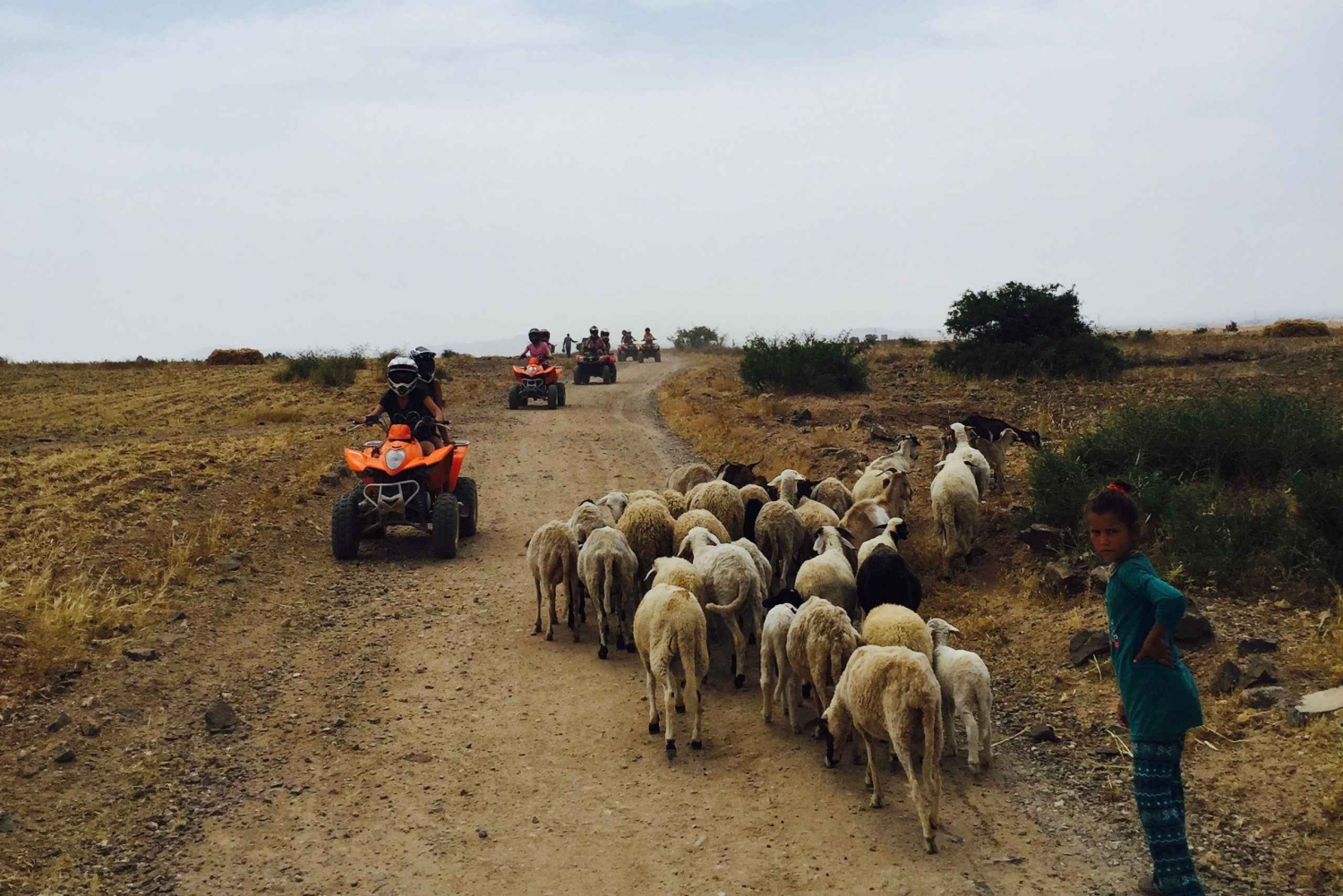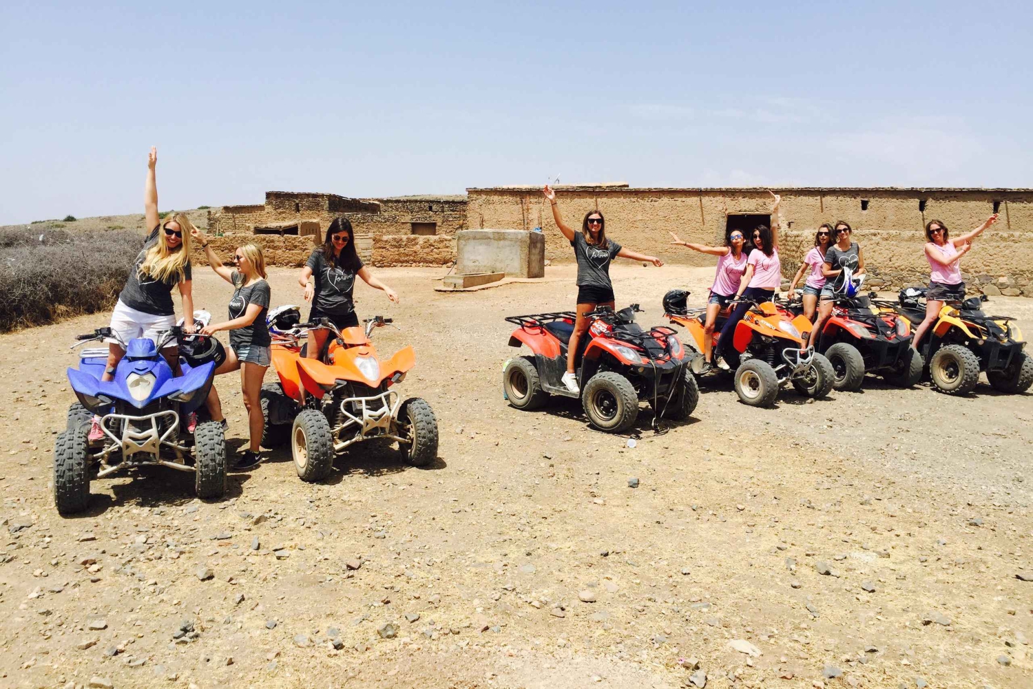 Når du blir hentet av sjåføren vår fra hotellet eller det angitte møtestedet, blir du tatt med til quad-aktivitetsområdet. Der vil den erfarne guiden din gi deg en briefing om hvordan du bruker firehjulingen og sikkerhetsinstruksjoner. Etter å ha tatt på deg hjelm og vernebriller, legger du ut på en firehjulingstur og starter først med en prøvekjøring i 5 eller 10 minutter, før du utforsker ørkenen og oasen i Marrakech i 2 timer. I løpet av turen vil du ha to pauser. Den første pausen finner sted i palmeoasen, slik at du kan ta uforglemmelige bilder, og den andre pausen gir deg muligheten til å slappe av med velduftende myntete og delikate marokkanske bakverk ved bassengkanten i en villa (bidouin), slik at du kan ta en forfriskende dukkert i bassenget når det passer deg. Løypene passer for alle nivåer, fra nybegynnere til de mest erfarne sjåførene. Etter endt utflukt kjører sjåføren deg tilbake til hotellet eller møtestedet. NB Minimumsalderen for å kjøre firehjuling er 16 år. Barn under 16 år kan kjøre firehjulingen med en voksen som passasjer.Includes