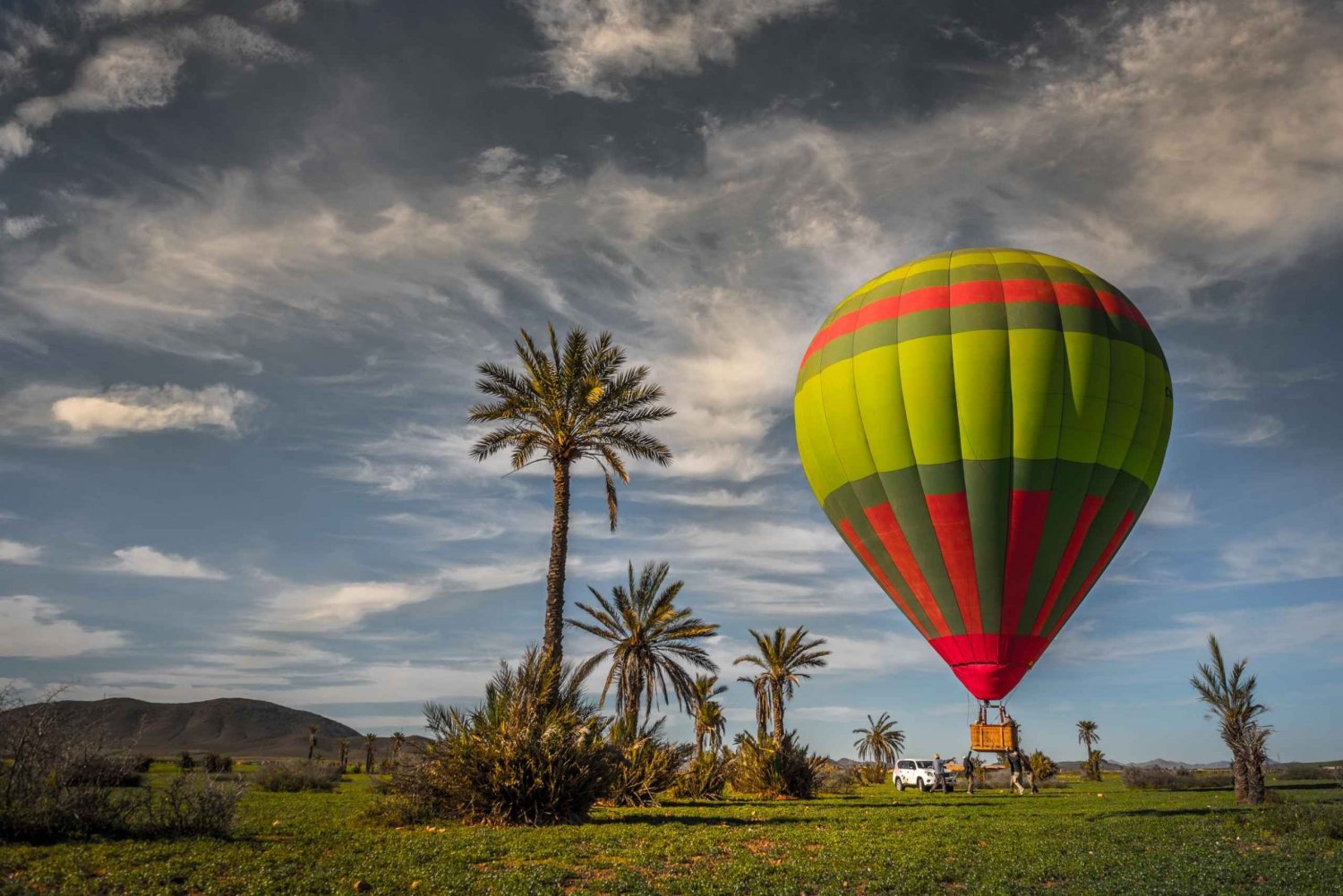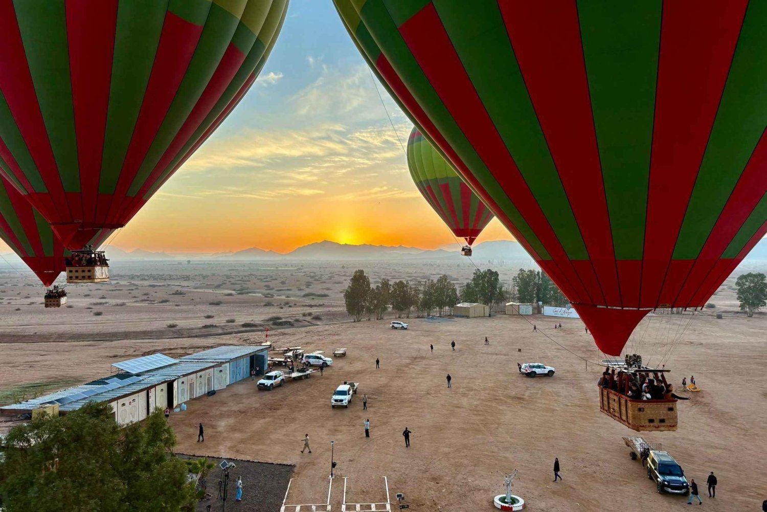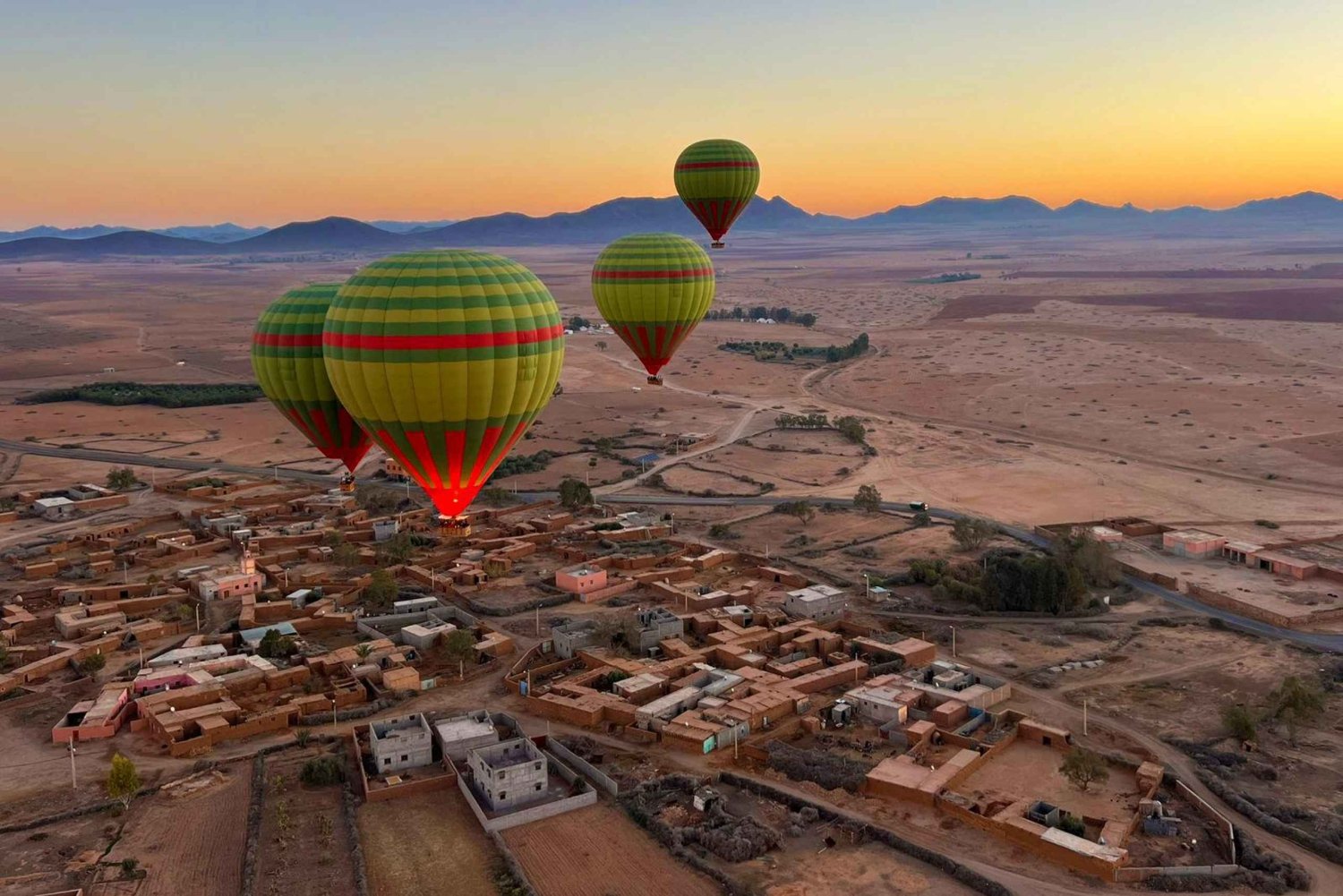 Przeżyj niezapomniane chwile o wschodzie słońca na pokładzie wspólnego balonu na ogrzane powietrze, ale z prywatnym przedziałem tylko dla Ciebie, w towarzystwie dedykowanego stewarda, który zapewni Ci spersonalizowaną obsługę. Delektuj się świeżymi sokami owocowymi i marokańskimi wypiekami na pokładzie, podziwiając spektakularne widoki na autentyczne Maroko: douary na obrzeżach Marrakeszu, góry Jbilets, dolinę Oued Tensift i, jeśli pozwoli na to pogoda, majestatyczne góry Atlas. Twoje doświadczenie obejmuje transport powrotny 4x4, busem lub minibusem, a także powitalną marokańską herbatę lub kawę przed startem. Lot trwa od 40 do 60 minut i jest przeznaczony dla minimum dwóch osób w ekskluzywnym przedziale z indywidualną obsługą. Po wylądowaniu przedłuż swoje doświadczenie o berberyjskie śniadanie podawane w namiocie caidal i wyjedź z kaligraficznym certyfikatem lotu na Twoje nazwisko, wyjątkową pamiątką z tej magicznej i niezwykłej chwili.Includes
