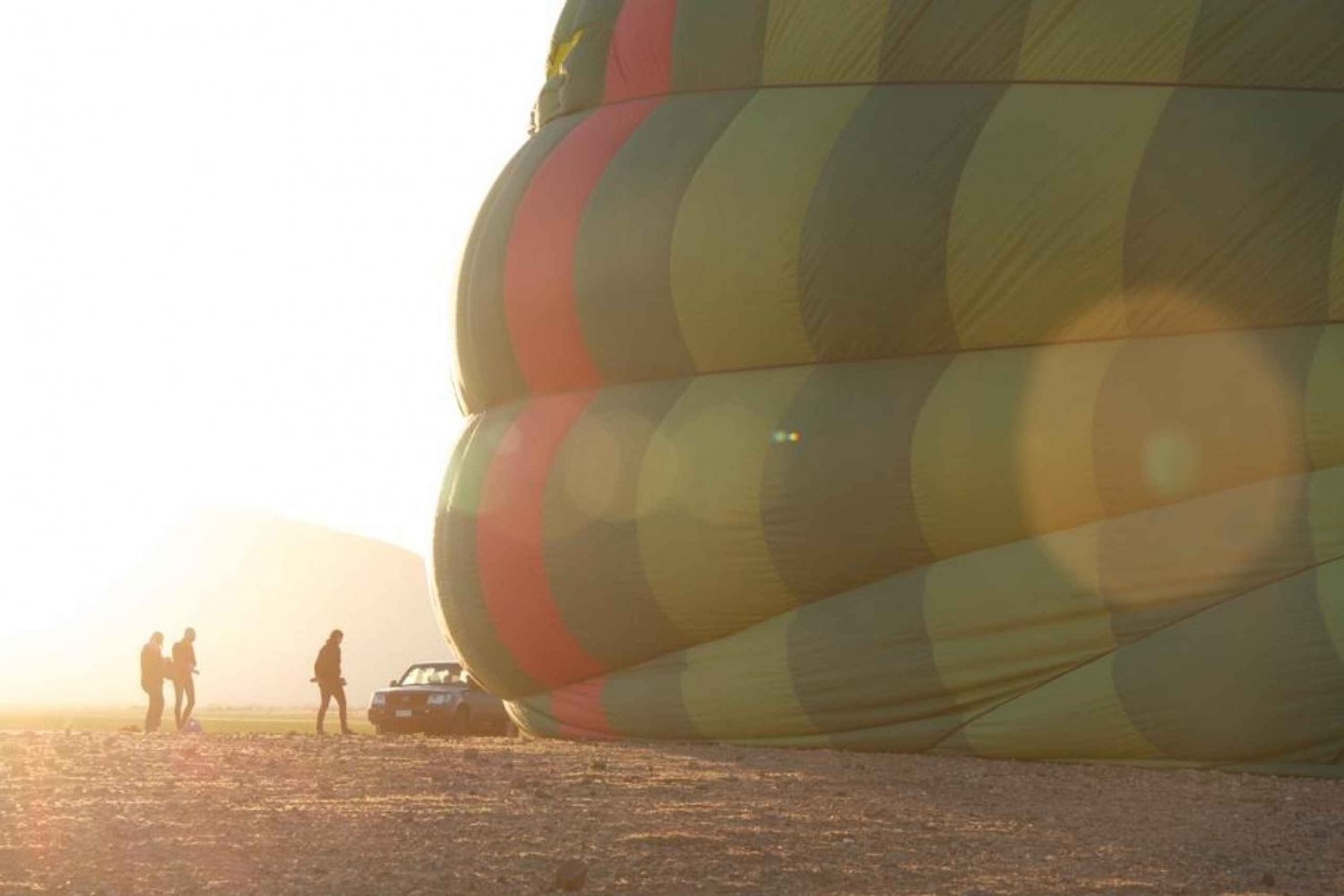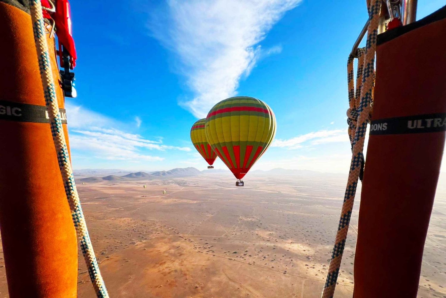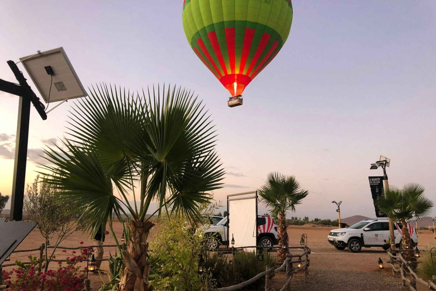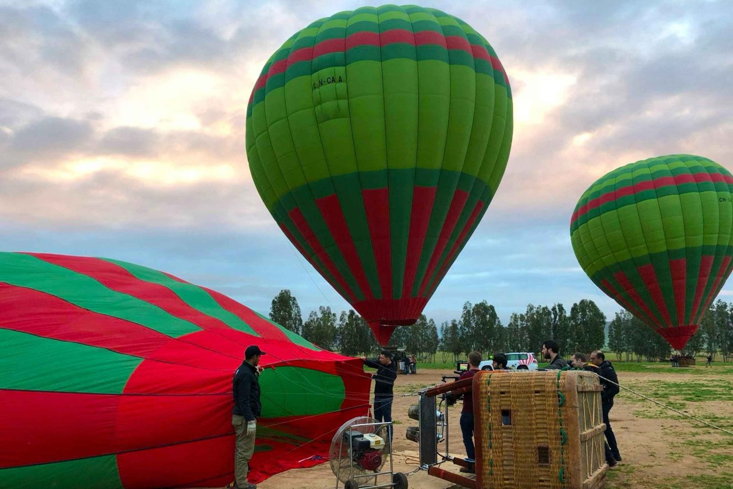 Przeżyj niezapomniane chwile o wschodzie słońca na pokładzie wspólnego balonu na ogrzane powietrze, ale z prywatnym przedziałem tylko dla Ciebie, w towarzystwie dedykowanego stewarda, który zapewni Ci spersonalizowaną obsługę. Delektuj się świeżymi sokami owocowymi i marokańskimi wypiekami na pokładzie, podziwiając spektakularne widoki na autentyczne Maroko: douary na obrzeżach Marrakeszu, góry Jbilets, dolinę Oued Tensift i, jeśli pozwoli na to pogoda, majestatyczne góry Atlas. Twoje doświadczenie obejmuje transport powrotny 4x4, busem lub minibusem, a także powitalną marokańską herbatę lub kawę przed startem. Lot trwa od 40 do 60 minut i jest przeznaczony dla minimum dwóch osób w ekskluzywnym przedziale z indywidualną obsługą. Po wylądowaniu przedłuż swoje doświadczenie o berberyjskie śniadanie podawane w namiocie caidal i wyjedź z kaligraficznym certyfikatem lotu na Twoje nazwisko, wyjątkową pamiątką z tej magicznej i niezwykłej chwili.Includes