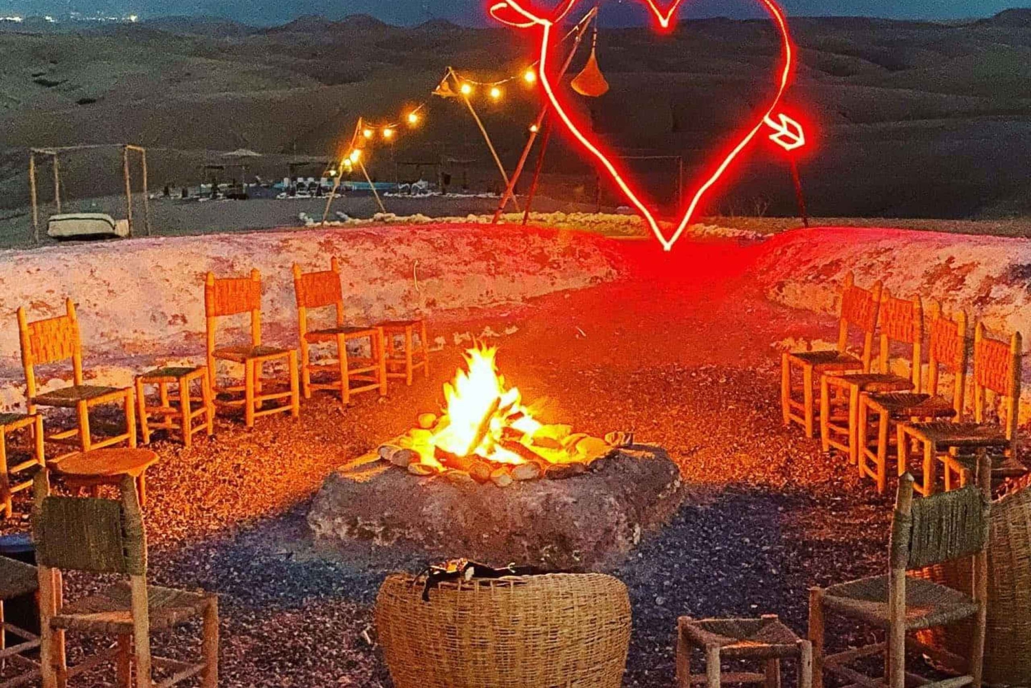 Odbiór z hotelu i odwiezienie Transport Jazda na wielbłądzie QUAD Kolacja pod gwiazdami Show z ogniem Marokańska herbataEasy cancellation