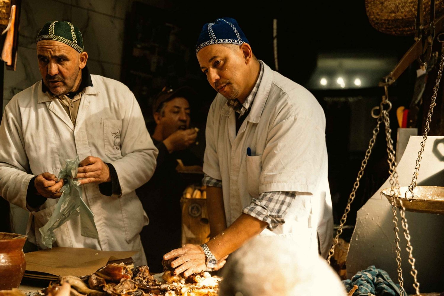 Rozpocznij swoją przygodę z wycieczką od spotkania z lokalnym przewodnikiem, który będzie z Tobą do końca. podczas tej wycieczki odkryjesz prawdziwe marokańskie jedzenie, będziesz mieć wszystkie te opcje: - 1-Marokański Msemen z sosem pomidorowym, cebulą, kolendrą i przyprawami. 2 - Oryginalna marokańska zupa Harira, daktyle i chebakia 3-Makkla bel Kefta: 4-Sfenj lub marokańskie donaty. 5-Odwiedź Lfranatchi: Pod ogniem z drewna ogrzewa się hammam i gotuje tanjia, gliniane marokańskie danie nasycone dymnymi smakami. 6- Shwa marokański grill: wołowina, indyk i wątróbka. 7- Rass Lmbkher: Głowa owcy gotowana na parze z kminkiem. 8-Zrób sobie orzeźwiającą przerwę z Panache: smoothie z sezonowych owoców zmieszanych z mlekiem lub sokiem pomarańczowym. 9-Khodnjal: Kojący gorący napar ziołowy z eukaliptusem, idealny do oczyszczenia zmysłów i wspomagania trawienia. i wiele innych niespodzianek...Includes