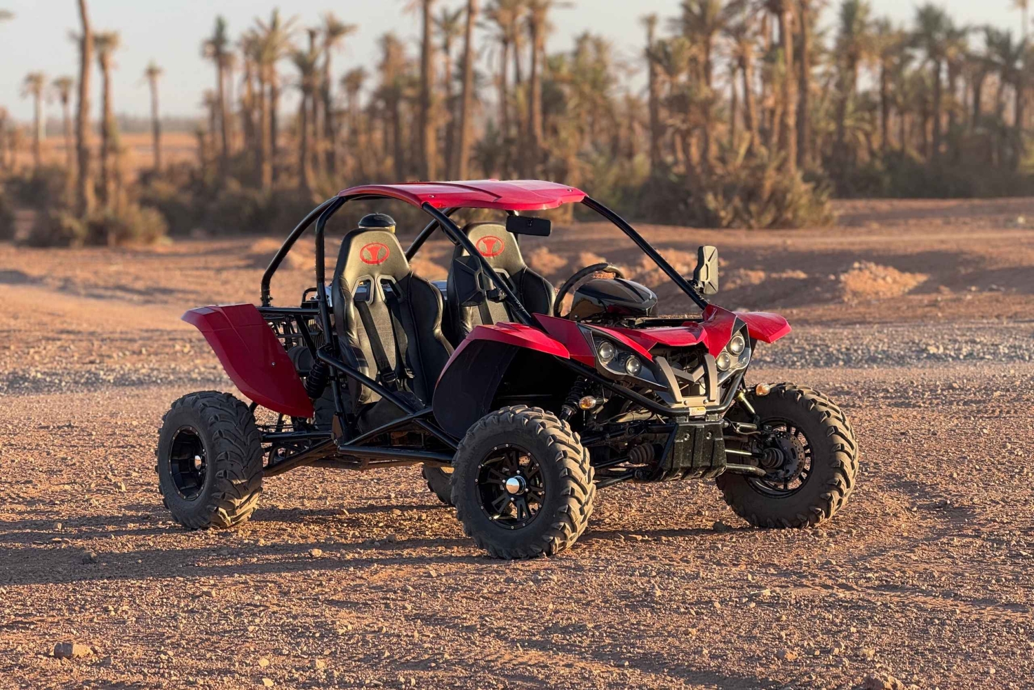 Rozpocznij swoją przygodę od wygodnego odbioru z hotelu w Marrakeszu. Przyjedź do bazy buggy, gdzie doświadczeni instruktorzy omówią z Tobą zasady bezpieczeństwa i udzielą wskazówek. Wskocz do buggy i wyrusz na ekscytującą przejażdżkę po malowniczych szlakach tuż za Marrakeszem. Przejedź przez gaje palmowe, małe wzgórza i trasy terenowe, zatrzymując się po drodze, aby uchwycić piękne krajobrazy i akcję. Zrób sobie przerwę w lokalnym miejscu, aby cieszyć się orzeźwiającą marokańską herbatą miętową i lekkimi przekąskami. Potem kontynuuj przygodę, zanurzając się w oszałamiających widokach i dreszczyku emocji z jazdy. Wróć do bazy na krótkie podsumowanie, zanim wrócisz do Marrakeszu.Includes