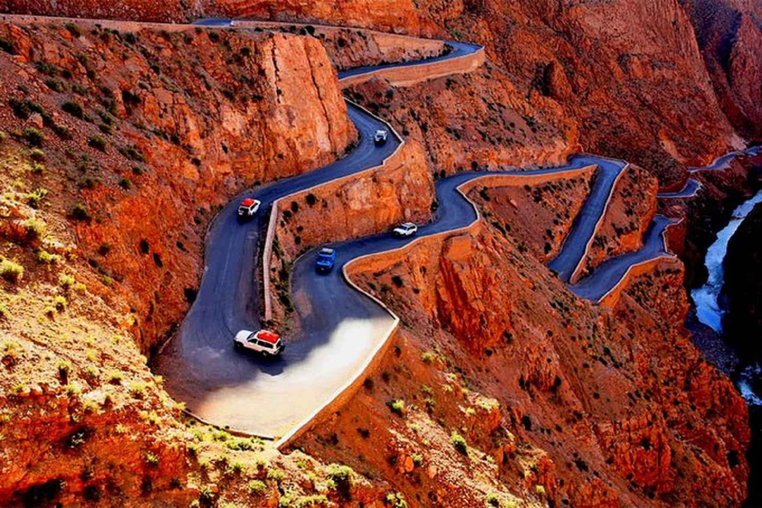 Wycieczka wyrusza z Agadiru lub Taghazout wczesnym rankiem i jedzie w kierunku Ouarzazat, przejeżdżając przez miasto Taliouine, afrykańskie centrum szafranu, najdroższej przyprawy świata. Przejedź przez miasto Taznakht, znane z żywych berberyjskich dywanów, zanim dotrzesz do Ait Ben Haddou. Wpisane na Listę Światowego Dziedzictwa UNESCO Ait Ben Haddou to tradycyjne przedsaharyjskie siedlisko składające się z glinianych budynków otoczonych wysokimi murami. Spędź trochę wolnego czasu na zwiedzaniu Kasbah i targuj się o okazje na tętniącym życiem suku, pełnym miejscowych kupujących i handlujących rękodziełem. Zjedz tradycyjny lunch w wiosce Ait Ben Haddou, a następnie udaj się do centrum miasta, aby odwiedzić słynne Atlas Film Studios, w którym znajduje się szereg rozkładających się planów filmowych kontrastujących z surową pustynią Na koniec udaj się do Kasby Taourirt, fascynującego labiryntu historii, który został zbudowany w XIX wieku. . Podziwiaj pokoje Kasbah o unikalnym kształcie, ozdobione kolorowymi mozaikami i malowanymi sztukateriami. W drodze powrotnej do Agadiru uważaj na kozy wspinające się na drzewa arganowe rosnące wzdłuż ulic, a jeśli masz czas, zatrzymaj się, aby przyjrzeć się z bliska.Includes