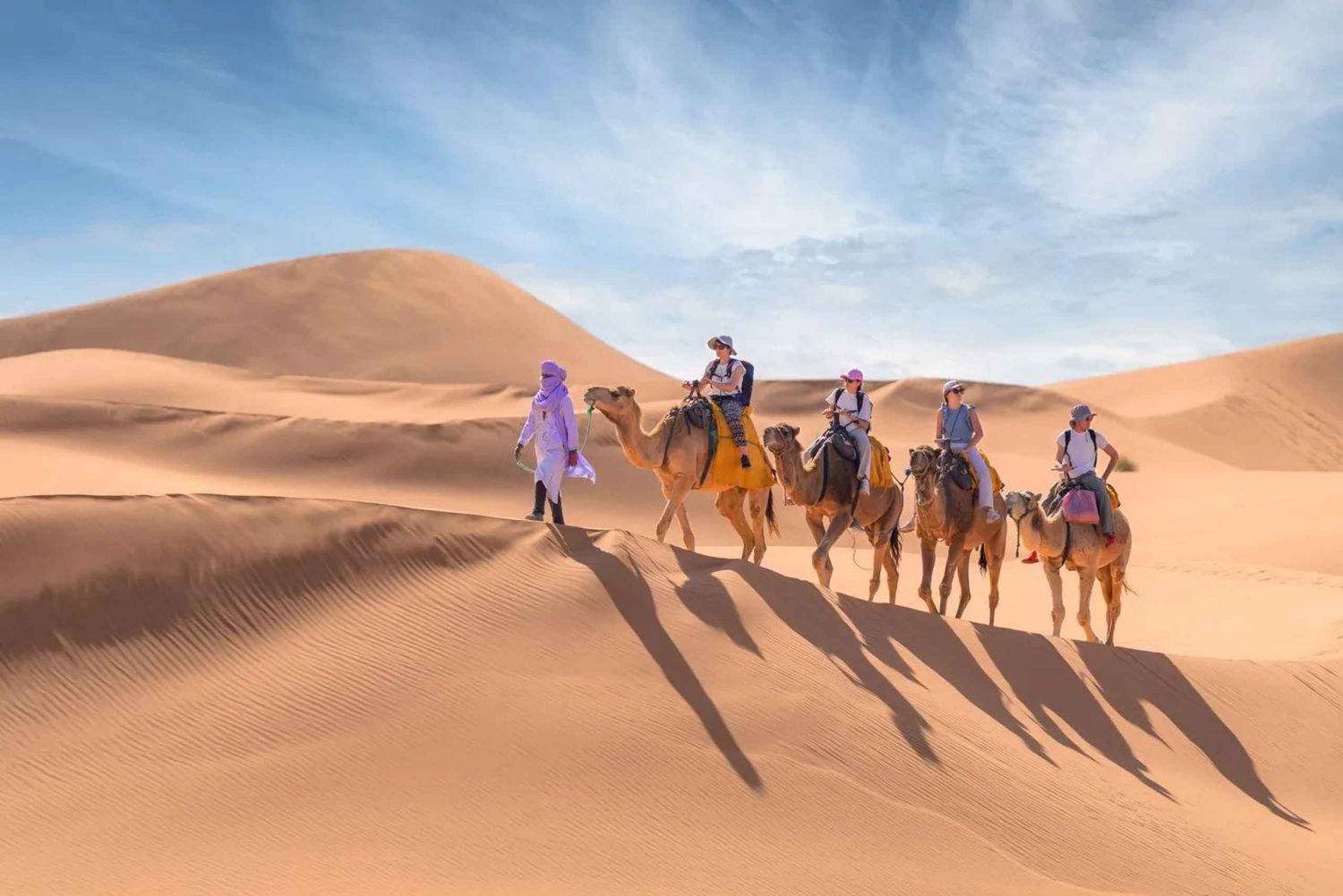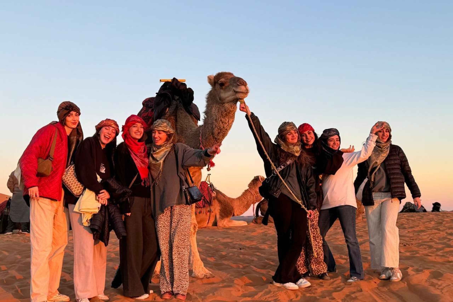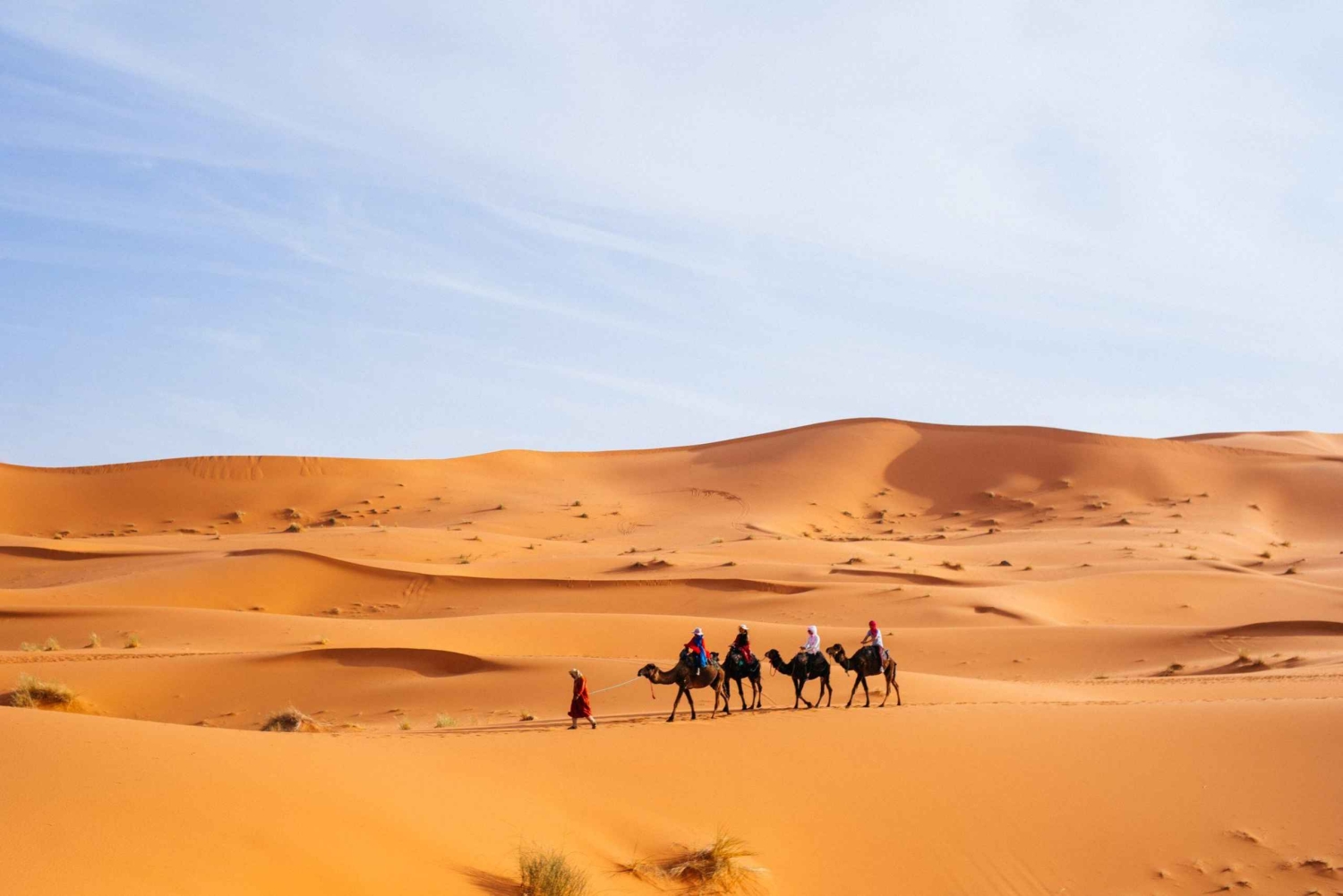 Wybierz się na magiczną 3-dniową podróż z Marrakeszu do Fezu z luksusowym obozem na pustyni Merzouga. Odkryj kasbah, pustynne krajobrazy, trekking na wielbłądach i niezapomniane zachody słońca na Saharze.