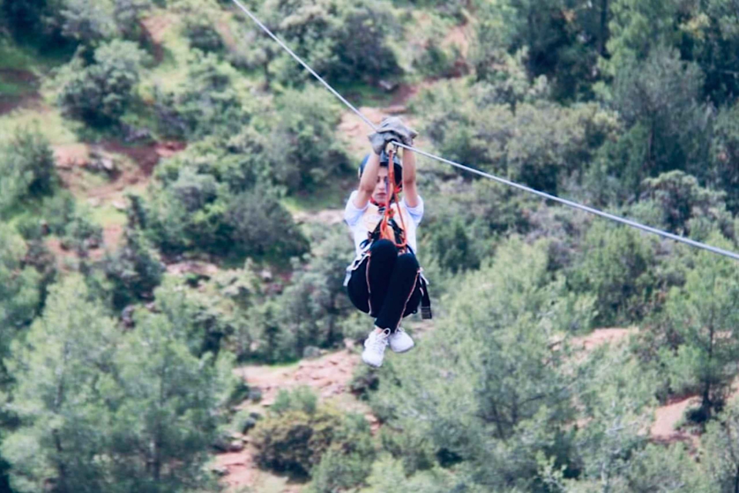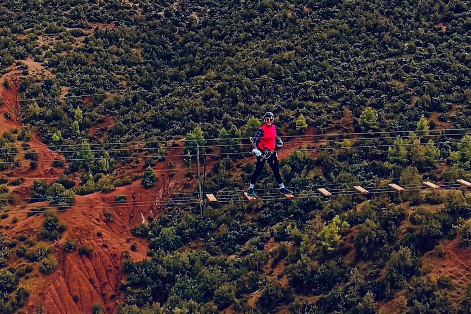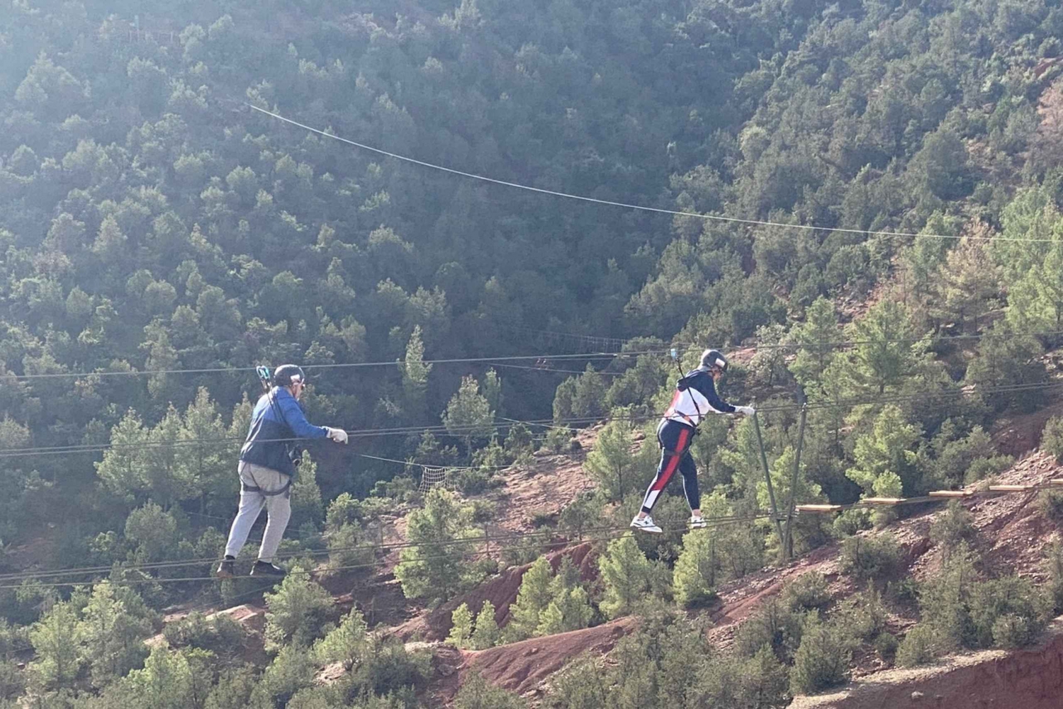 Wejdź na cztery linie zip, jedna po drugiej, zabierając Cię nad oszałamiające krajobrazy nad dolinami. Podziwiaj typowe berberyjskie wioski zbudowane z czerwonego tynku.