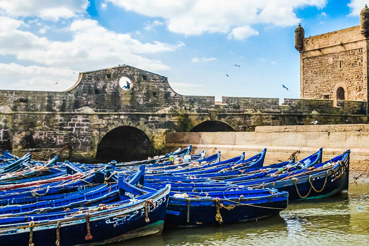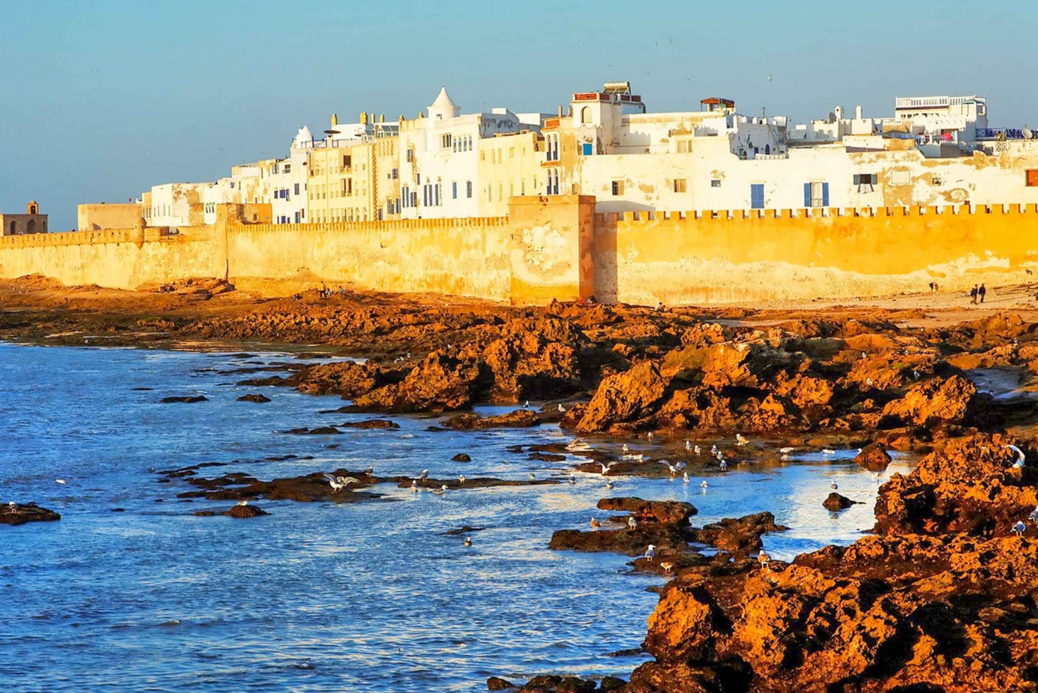 Patrimônio Mundial da Unesco, Essaouira é famosa pela sua atmosfera tranquila, ruas caiadas de branco, persianas coloridas e uma vasta praia de areia dourada. À chegada, desfruta de um tour guiado ou tempo livre para explorar a vibrante medina de Essaouira, um labirinto de lojas de artesanato, souks animados e galerias de arte locais. Observa artesãos talentosos a construir barcos de madeira no porto ou a esculpir objetos em madeira de tuia, uma especialidade local.