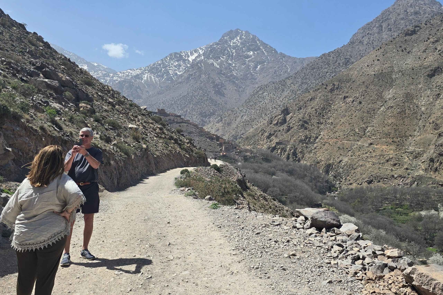Embarca numa viagem de 1 dia às montanhas do Alto Atlas, a partir de Marraquexe, que promete uma aventura inesquecível, repleta de paisagens de cortar a respiração e de experiências locais genuínas. Eis o itinerário detalhado da tua excursão: Serviço de busca em Marraquexe: O teu dia começa com um confortável pick-up no teu alojamento em Marraquexe, onde serás recebido pelo teu simpático guia e motorista. Conduz até à aldeia de Imlil: Desfruta de uma viagem panorâmica de cerca de 1,5 horas, deixando para trás a agitação da cidade e aventurando-se nas paisagens serenas das montanhas do Atlas. Ao chegar à aldeia de Imlil, ficarás cativado pelo ambiente pitoresco. Recebe as boas-vindas com a hospitalidade marroquina: À chegada a Imlil, serás recebido com a tradicional hospitalidade marroquina. Relaxa e descontrai com uma chávena de chá de menta refrescante, que te permitirá mergulhar na atmosfera calorosa e preparar-te para a aventura que te espera. Exploração da aldeia de Armed: A tua viagem continua enquanto caminhas em direção à aldeia de Armed, a aldeia mais alta da região. Ao longo do caminho, maravilha-te com as vistas inspiradoras das montanhas do Atlas, com vistas panorâmicas dos picos majestosos e do distante cume do Toubkal. Mergulha na beleza natural imaculada e no ar fresco e não poluído que te rodeia. Almoço na aldeia de Ait Souka: Depois de uma caminhada gratificante, delicia-te com um delicioso almoço caseiro na aldeia de Ait Souka. Saboreia a cozinha tradicional marroquina servida num terraço com vistas deslumbrantes sobre as montanhas, proporcionando o cenário perfeito para uma experiência gastronómica memorável. Experiência de caminhada: Depois do almoço, embarca numa caminhada panorâmica com uma duração aproximada de 2 horas. A caminhada oferece flexibilidade, permitindo-te adaptar a duração de acordo com as tuas preferências. Quer prefiras um passeio descontraído ou uma caminhada mais exigente, existem opções que se adequam a todos os níveis de fitness e interesse. Viagem de regresso a Marraquexe: Quando o dia chegar ao fim, despede-te das tranquilas aldeias de montanha e embarca numa viagem de regresso a Marraquexe. Percorre diferentes rotas, oferecendo perspectivas variadas da paisagem, incluindo o cénico Planalto de Kik. Experiência local autêntica: Ao longo da excursão, terás a oportunidade de interagir com os residentes locais, adquirindo conhecimentos sobre a sua cultura, tradições e modo de vida. Os teus guias conhecedores e simpáticos assegurarão que tenhas uma experiência significativa e enriquecedora, longe do típico percurso turístico. Reserva a tua viagem: Estás pronto para embarcar nesta aventura extraordinária? Não hesites em reservar a tua viagem de 1 dia às montanhas do Alto Atlas para uma experiência única e inesquecível. Com a preocupação de oferecer um serviço personalizado e encontros autênticos, esta excursão promete ser um ponto alto da tua visita a Marrocos. Esperamos ansiosamente a oportunidade de te guiar pela nossa cidade natal e partilhar a beleza e a hospitalidade das montanhas do Atlas.Includes