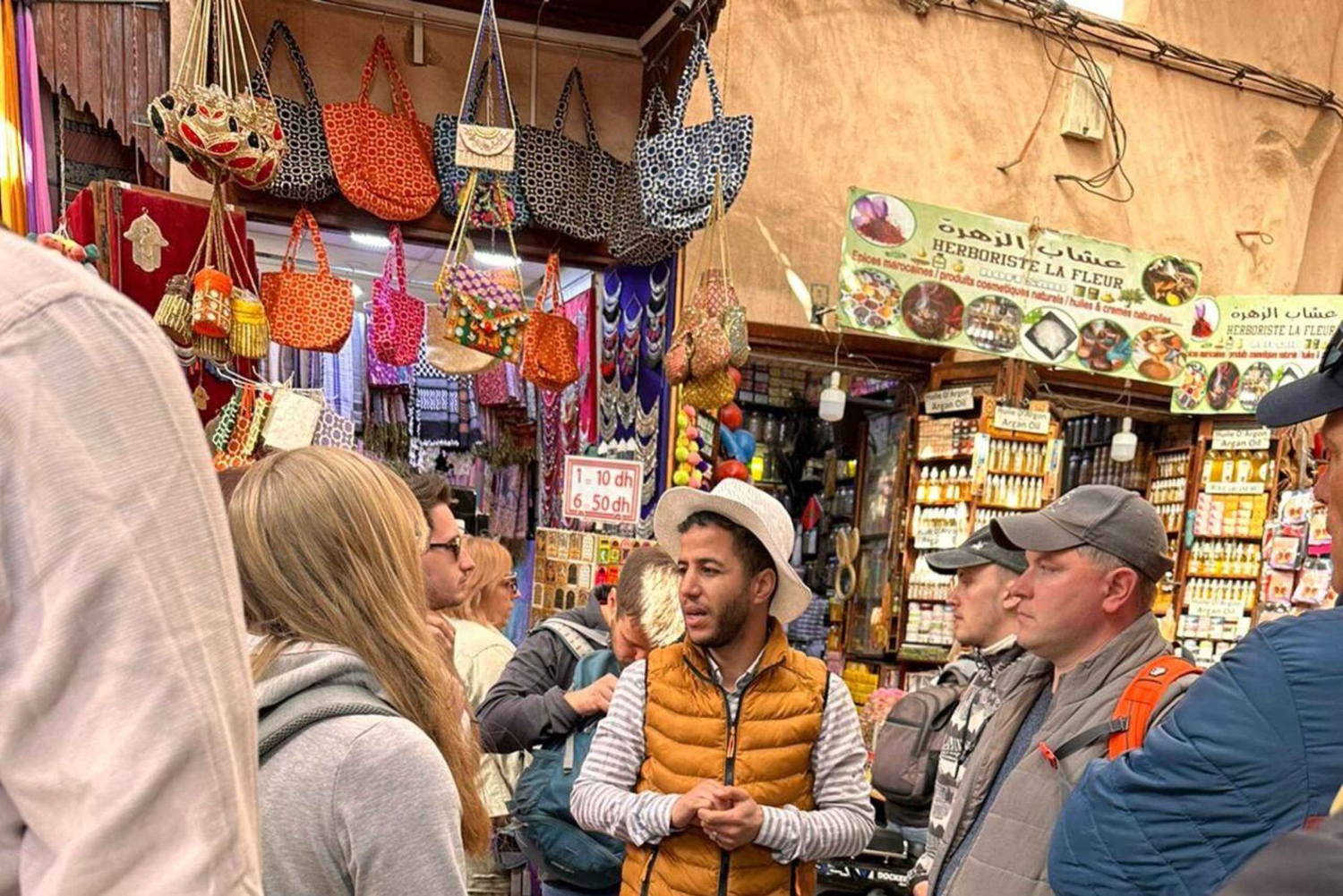 Você é um novo hóspede na Cidade Vermelha, ansioso para descobrir locais escondidos e mercados labirínticos conhecidos apenas por guias locais especializados? Participe de nosso tour guiado especial, marcado pela diversão e alegria, ONDE VOCÊ NUNCA VAI SE ABORRECER! Não importa se o seu objetivo é fazer compras, fotografar as pequenas vielas do souk ou simplesmente caminhar para apreciar as cores vibrantes dos produtos locais, nós o realizaremos para você. Não hesite; RESERVE AGORA, dê-nos a sua confiança e nós forneceremos a você o nosso tempo e experiência. Você encontrará seu guia local em frente ao restaurante Argana Cafe e terá uma visão das partes secretas da antiga medina. Seu guia ajudará você a comprar de tudo, desde pequenas lembranças até itens artesanais marroquinos puros. Visite oficinas para testemunhar o domínio de artesanatos como couro, ferro, madeira, bordado, tecelagem e cerâmica. Aproveite a oportunidade para ser mais esperto que os comerciantes e se beneficiar dos bons preços. Faremos com que sua visita ao souk seja única e completa, oferecendo informações sobre vários departamentos, lojas e fábricas tradicionais. Interaja com os artesãos e observe as etapas de corte, tecelagem, tingimento, design, bordado, embalagem, secagem e carpintaria. Nosso guia de turismo guiará você por diferentes partes do souk, incluindo seções de ferro, couro, madeira, lâmpadas, tapetes, joias, cerâmica, especiarias, azeitonas e muito mais Você está ansioso para conhecer e aproveitar a experiência juntosIncludes