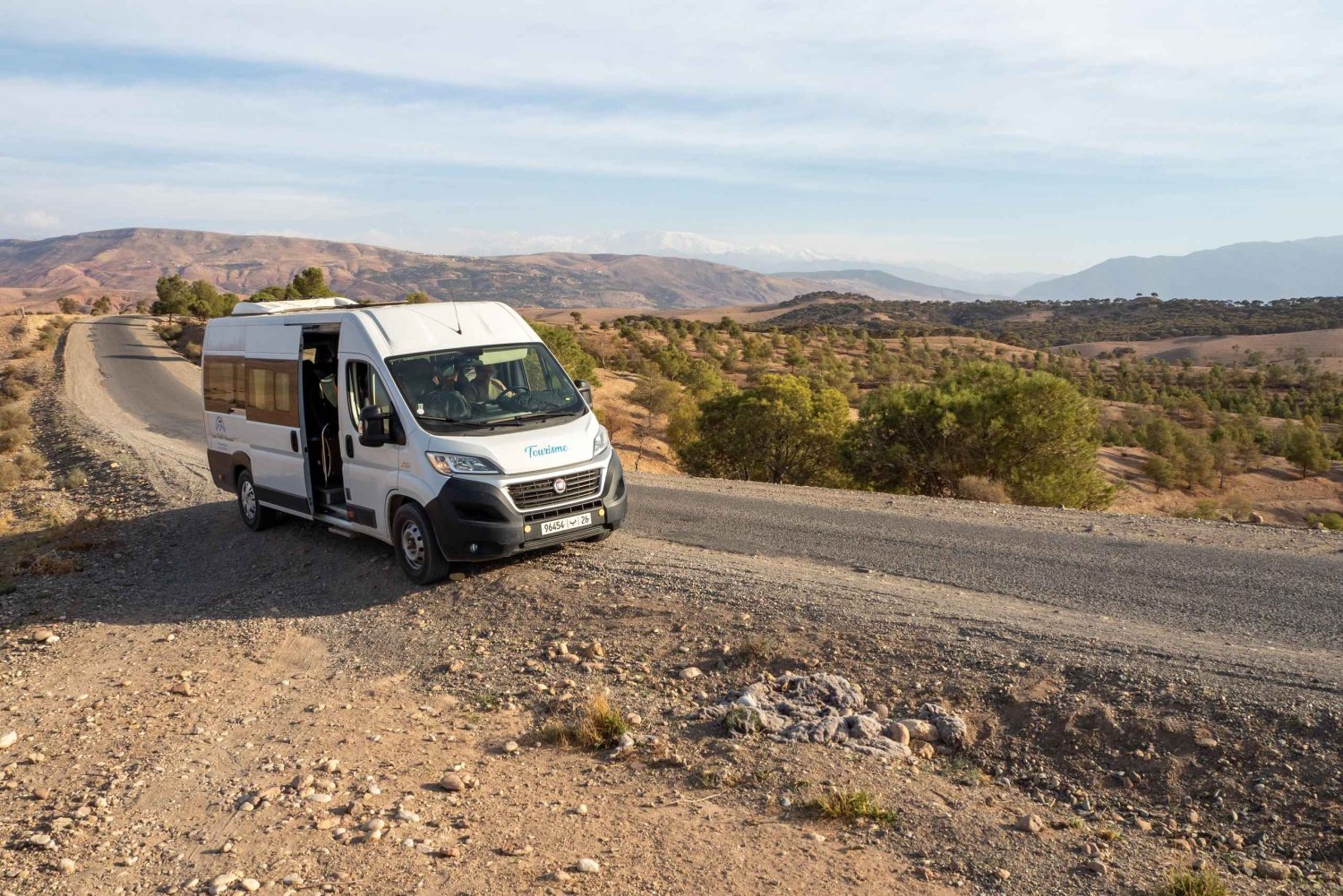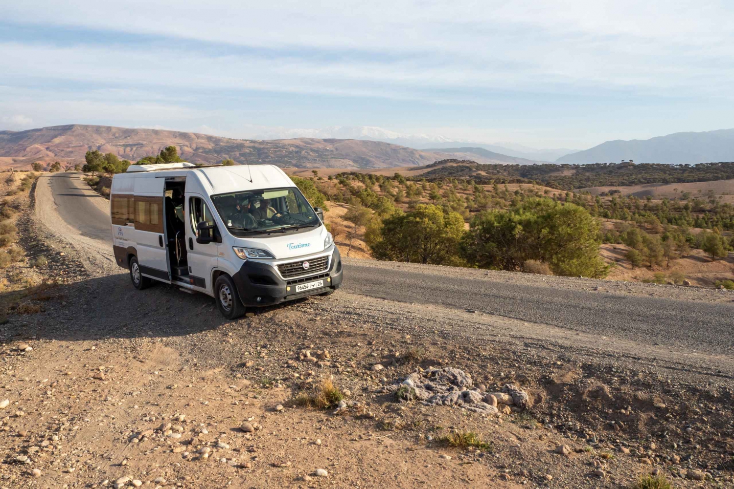 - Fuja da agitação de Marraquexe numa aventura de dia inteiro pelas montanhas do Atlas. Depois de ser recolhido à s 9:00 no seu alojamento, viaje para o ar fresco da montanha e para a paisagem aberta. - Descubra quatro vales incrÃveis: Tahanout, Asni, Imnan e Imlil, cada um com suas próprias vistas dramáticas e paisagens únicas. - Pare na aldeia de Azrou para fotografar os picos e visitar uma cooperativa feminina de óleo de argan, onde você pode saborear chá marroquino, provar óleo de argan fresco e assistir ao processo de produção tradicional. - Continue com uma caminhada guiada tranquila de 1,5 a 2 horas por aldeias berberes pacÃficas, passando por cascatas e pomares de nogueiras, cerejeiras e macieiras. - Desfrute de um almoço tradicional no terraço de uma casa local com vistas deslumbrantes dos picos do Atlas, antes de voltar a Marraquexe por volta das 17:00. - Somos flexÃveis com a duração da caminhada; o transporte está disponÃvel para quem preferir não caminhar, para que todos possam compartilhar a experiência completa. - Nos sábados e terças-feiras, as partidas incluem uma visita a um animado mercado de agricultores berberes. - Nota: sem passeios de camelo - esta escolha apoia o bem-estar dos animais, mantendo a experiência autêntica.Includes