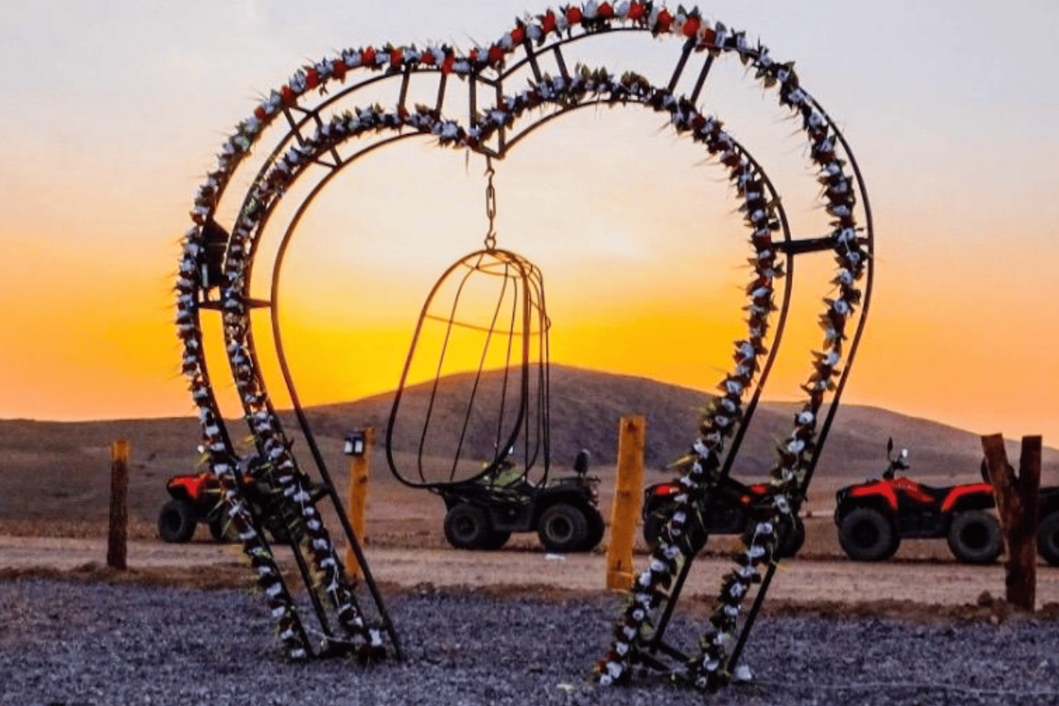 Aventura no Deserto de Agafay a partir de Marraquexe Quad • Passeio de camelo • Vistas ao pôr do sol • Jantar e espetáculo • Recolha no hotel Prepara-te para um passeio noturno com tudo incluído e cheio de adrenalina de Marraquexe ao Deserto de Agafay — uma verdadeira experiência de sonho que combina aventura off-road, hospitalidade berbere e vistas espetaculares para os sopés do Atlas. A tua viagem começa às 14:00, 15:00 ou 16:00 com uma conveniente recolha no hotel com extra ou encontro num dos nossos 7 locais centrais gratuitos em Marraquexe. Depois de um curto e panorâmico trajeto de autocarro ou carrinha, vais chegar a um acampamento tradicional no coração do Deserto de Agafay – um terreno rochoso e lunar mesmo à saída da Cidade Vermelha, com vistas de cortar a respiração, diferentes do Saara. Sente a adrenalina – Passeio de moto-quatro em Agafay Põe o capacete e os óculos e liga o motor – está na hora de um emocionante passeio de ATV pelos trilhos selvagens de Agafay. Liderado por guias certificados e que falam inglês, este passeio de moto-quatro foi concebido para todos os níveis e garante uma sessão de segurança antes de desfrutares da derradeira aventura todo-o-terreno num ambiente de grupo pequeno. Passeio de camelo ao pôr do sol – Uma experiência marroquina intemporal Depois da emoção, relaxa com um passeio de camelo ao pôr do sol pelo deserto dourado. Este passeio de camelo tranquilo oferece oportunidades incríveis para fotos e uma viagem romântica e lenta pela paisagem intemporal de Marrocos. Quer estejas a viajar sozinho, com a família ou a dois, esta experiência familiar é imperdível. Jantar sob as estrelas – um banquete cultural Quando o sol se põe, prepara-te para um autêntico jantar berbere sob as estrelas. Saboreia pratos marroquinos tradicionais como tagine, cuscuz e fruta fresca — tudo servido num ambiente acolhedor sob tendas berberes. Desfruta de uma noite mágica com espetáculo ao vivo, música Gnawa, dança folclórica e até um espetáculo de fogo que iluminará a noite do deserto. Dicas essenciais para viajantes Usa roupa confortável e em camadas Traz sapatos confortáveis e fechados Câmara para capturares memórias Água com jantar e proteção solar Casaco leve para a frescura da noite Perfeito para: ✅ Amantes da aventura ✅ Exploradores culturais ✅ Casais ✅ Amantes da fotografia ✅ Caçadores de experiências únicas Características exclusivas Cobertura de seguro completa Equipamento de alta qualidade Adaptável a diferentes níveis de competência O pacote completo inclui: Aventura de moto-quatro Experiência de caminhada de camelo Jantar gourmet no deserto Espetáculo cultural Transporte de ida e volta Pôr do sol no deserto de Agafay Passeios de quad e ATV, Marraquexe Hospitalidade berbere com uma refeição tradicional Os melhores passeios e atividades no Deserto de Agafay em 2025 Recomendamos que reserves com antecedência Informa-nos sobre quaisquer restrições de saúde Experiência no deserto de Marraquexe Aventura de moto-quatro Passeio de moto-quatro no deserto de Agafay Passeio de camelo em Marrocos Passeio pelo deserto de Agafay Experiência cultural marroquina Safari no deserto ao pôr do sol Passeio noturno em Marraquexe Experiências de viagem únicas Porquê escolher-nos? Isto não é só uma visita guiada. É uma viagem transformadora que te liga à alma de Marrocos – onde cada momento conta uma história e cada paisagem sussurra segredos antigos.Includes