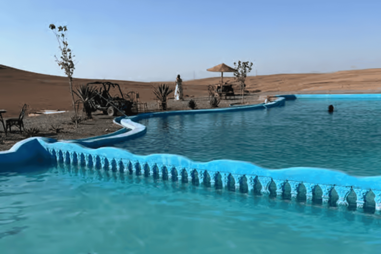 Troca a agitação urbana pela tranquilidade do reino dourado do Deserto de Agafay, um lugar tranquilo nos arredores de Marraquexe, onde o tempo parece parar. O sol começa a se pôr no horizonte, tingindo o céu com cores suaves. O silêncio tranquilo, pontuado apenas pelos passos suaves do camelo, permite que tenhas uma experiência que vais recordar para sempre. Lanternas ganham vida ao teu redor e uma luz suave começa a dançar na areia. Com o dia dando lugar à noite, o deserto se transforma num mundo mágico. Música ao vivo preenche o ar quando músicos locais começam a tocar instrumentos musicais históricos. A batida do tambor e as melodias das cordas se misturam num ritmo que faz-te sentir parte de algo histórico e sagrado. Podes relaxar, sentar-te ou até levantar-te e participar do ritmo. O jantar é servido sob as estrelas. Não é apenas uma refeição, é um banquete marroquino. Desfrutarás de carnes tenras, tagines cozinhados lentamente, saladas frescas e vegetais ricamente temperados, tudo preparado com cuidado e tradição. Os sabores são genuínos e memoráveis, do tipo que permanecem na tua mente muito depois do fim da noite. E quando pensavas que não podia ficar melhor, vem o espetáculo de fogo. Excelentes artistas iluminam a noite com movimentos de tirar o fôlego, girando, dançando e brincando com o fogo com uma graça incrível. Faíscas voam pelo ar como pequenas estrelas e a atmosfera fica elétrica. Isso é mais do que uma excursão paralela, é uma oportunidade de mergulhar no espírito de Marrocos de uma forma que poucos visitantes têm. Seja qual for a composição do teu grupo, quer visites a dois, com um grupo de amigos ou com a tua família, esta noite no deserto promete memórias para toda a vida, uma ligação próxima com o modo de vida local e muitas oportunidades para tirar fotos. Procuras uma noite mágica? Junta-te a nós nesta aventura exclusiva no deserto. Lugares limitados, reserva já e faz parte de uma noite mágica que ficará para sempre no teu coração.Includes