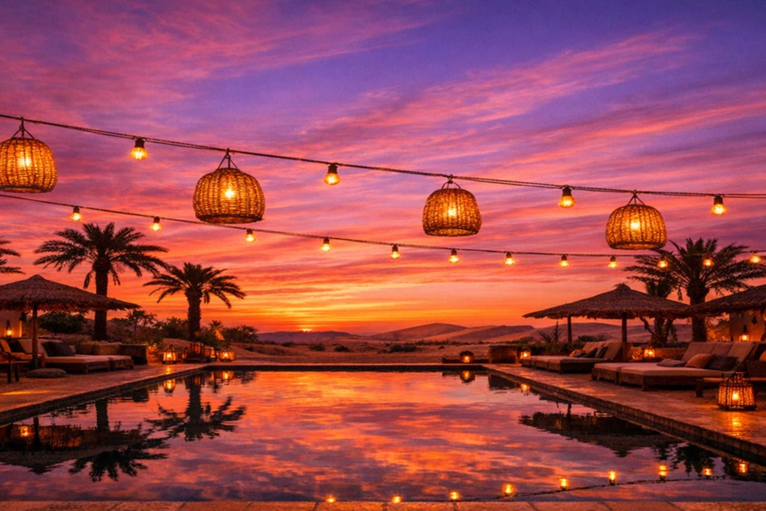 Descobre uma das melhores experiências no deserto em Marraquexe com este passeio ao pôr do sol no Deserto de Agafay, uma mistura perfeita de viagens de aventura, cultura marroquina e jantar de luxo no deserto, mesmo à saída da Cidade Vermelha.