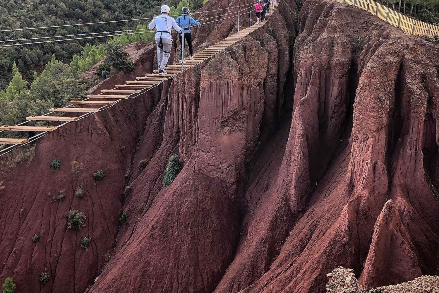 Зиплайнинг вокруг Марракеша предлагает волнующее приключение среди захватывающих дух пейзажей Атласских гор. Когда вы мчитесь по воздуху, паря высоко над долинами и лесами, вы почувствуете невероятный прилив адреналина в сочетании с впечатляющими видами природных пейзажей внизу. Острые ощущения от полета над гористой местностью, когда ветер проносится мимо вас, создает поистине незабываемые впечатления, которые заставят вас почувствовать себя воодушевленным и бодрым. С другой стороны, поездка на верблюде по Марракешу подарит спокойный и богатый культурный опыт. Оседлав этих нежных гигантов, вы отправитесь в путешествие по мирной пустыне или пышным пальмовым рощам, в зависимости от выбранного маршрута. Пока верблюд неторопливо покачивается под вами, у вас будет возможность погрузиться в спокойную обстановку. Ритмическое движение верблюда и бескрайние просторы пейзажа вызывают ощущение вневременности и связи с природой, позволяя расслабиться и оценить красоту окружающей среды. Сочетание этих двух впечатлений предлагает идеальный баланс приключений и спокойствия, предоставляя вам возможность исследовать потрясающие природные пейзажи Марракеша, а также углубиться в его богатое культурное наследие. Ищете ли вы приключения, наполненные адреналином, или спокойное уединение на природе, катание на зиплайне и верблюдах вокруг Марракеша обещают стать незабываемыми моментами вашего путешествия. Утро: приключение на зиплайнере: 9:00: Отправление из отеля или назначенного места встречи для приключения на зиплайне. 10:00–12:00: Наслаждайтесь приливом адреналина, катаясь на зиплайне по живописным пейзажам Атласских гор. Испытайте острые ощущения, паря над долинами и лесами, любуясь захватывающими видами. 13:00: После катания на зиплайне освежитесь и перекусите или пообедайте (6 евро с человека). Во второй половине дня: поездка на верблюде: 14:10: Отправление на прогулку на верблюде, которая может проходить в близлежащей пустыне или пальмовой роще. 15:10–16:00: Отправьтесь в неторопливую поездку на верблюде по потрясающим пустынным пейзажам или пышным пальмовым рощам, окружающим Марракеш. Наслаждайтесь спокойствием, плавно покачиваясь на верблюде и наслаждаясь красотой окрестностей. 16:30: Возвращение после поездки на верблюде.Includes