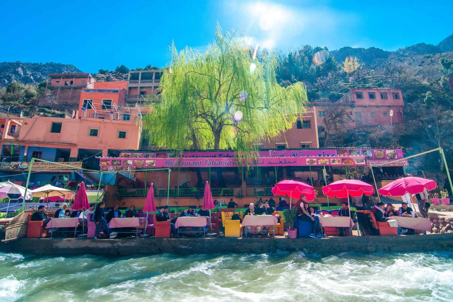 Однодневная поездка в долину Урика начнется в 9:00 утра. из вашего отеля в Марракеше, а затем в Атласские горы. Сначала мы делаем короткий поездка из Марракеша к предгорьям Атласские горы. Затем мы исследуем местность Берберский открытый рынок. После этого продолжаем наша поездка по долине Урика и пройти через последовательные горные деревни. Пока вы поднимаетесь в гору, мы будем делать остановки. различными чудесными пейзажами. После этого делаем остановку в с. Сетти Фатма. Насладитесь короткой прогулкой и откройте для себя красивые водопады, известные искупайтесь и полюбуйтесь захватывающими видами окружающей долины от тропы. После похода на Сетти Фатму вы увидите, как аргановое масло производится в местном кооперативе и вы сможете сфотографироваться на живописные точки обзора, где мы остановимся по пути. Посетите долину Урика и откройте для себя деревня и берберская культура. Ваш день в Атласских горах заканчивается высадка в вашем отеле.Includes