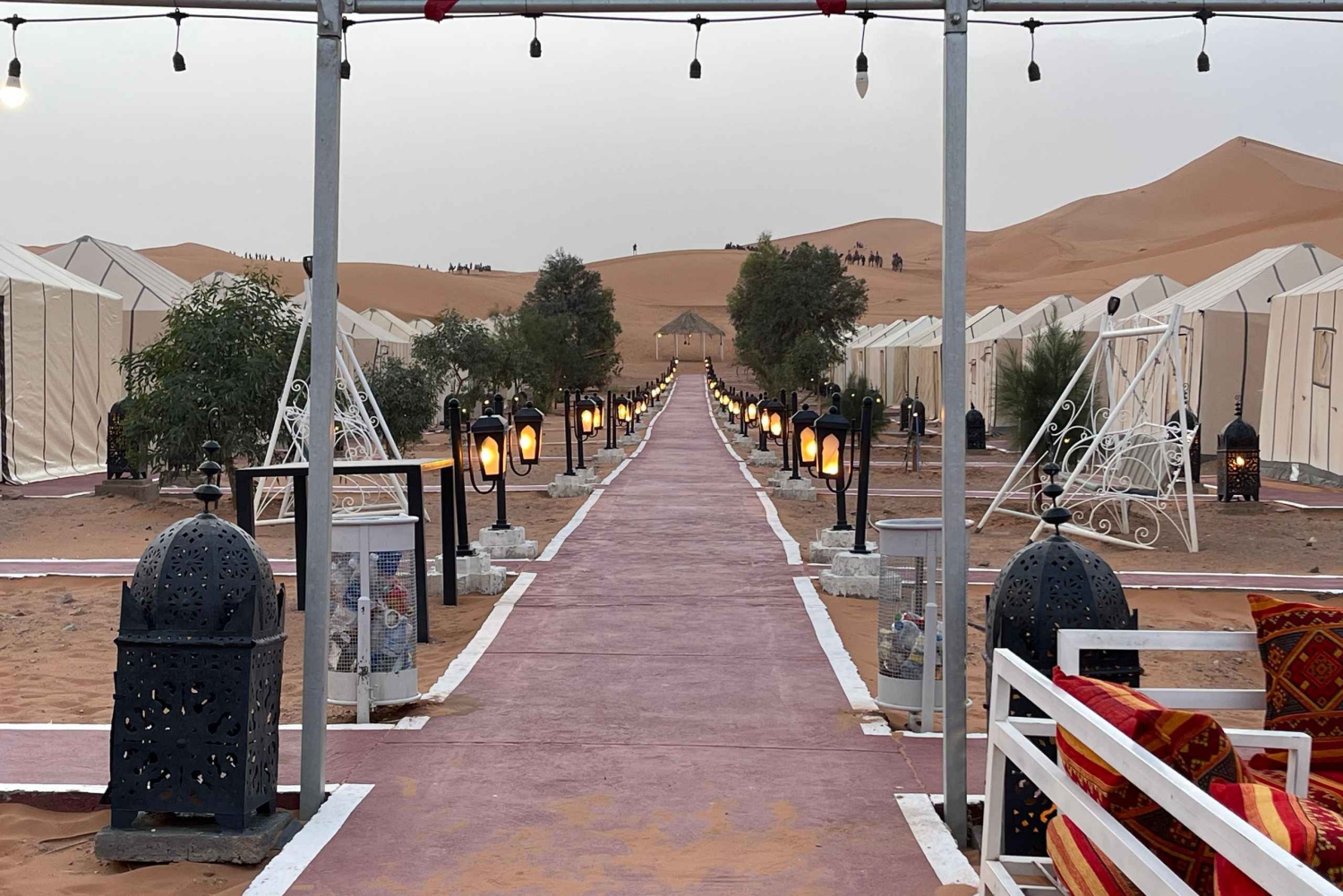 - Отправьтесь в 3-дневное путешествие из Марракеша в пустыню Мерзуга, включая поход на верблюдах и ночевку в лагере в пустыне. Приготовьтесь к длительным поездкам и переменчивым погодным условиям. Возьмите с собой теплую одежду для ночевок в пустыне и удобную обувь для исследования. Размещение включено. Этот тур не подходит для людей с ограниченными возможностями.