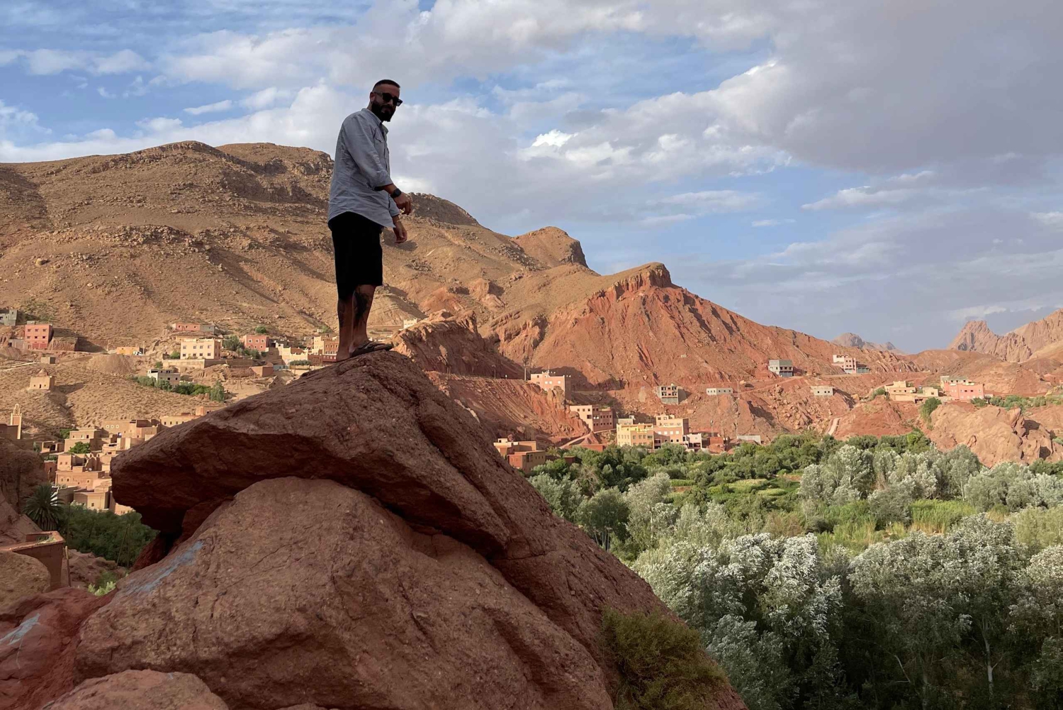 Ночуйте под звездами пустыни в берберском кемпинге в незабываемых дюнах из Марракеша. Посетите внесенные в список Всемирного наследия ЮНЕСКО Айт-Бен-Хадду, Долину роз и Тингир. Остановитесь в традиционных берберских деревнях вокруг ущелья Тодра и пройдите с верблюдом через дюны Эрг-Шебби, самые высокие в Марокко. ✅ День 1: Марракеш - Айт-Бен-Хадду - Дадес Начните свое путешествие с пересечения Высоких Атласских гор мимо одной берберской деревни за другой к объекту всемирного наследия ЮНЕСКО Айт-Бен-Хадду. Эта деревня славится своей касбой и укрепленной деревней, а также использовалась в качестве декораций для некоторых известных голливудских фильмов и журнальных фотосессий. После некоторого времени отдыха насладитесь обедом в местном ресторане и продолжите свой путь через Уарзазат, известный как Ворота Сахары. Продолжайте путь до Бумальн-Дадес, любуясь живописной дорогой вдоль долины Дадес, где вы сможете поужинать и отдохнуть на ночь. ✅День 2: Дадес - ущелья Тодга - Мерзуга После завтрака выезжайте из отеля и отправляйтесь в Тингир и его впечатляющие ущелья Тодга, останавливаясь на свободное время для исследования каньонов. Насладитесь обедом в местном кафе и продолжайте путь в Мерзугу, чтобы встретиться с вашим караваном верблюдов. Исследуйте дюны Эрг-Шебби на верблюдах и наблюдайте закат. Доберитесь до своего лагеря в пустыне до наступления темноты и насладитесь настоящим марокканским ужином под звездами. Местные кочевники развлекут вас и покажут, как играть на традиционных барабанах Там-Там. Насладитесь ужином и остановкой на ночь. ✅День 3: Мерзуга Уарзазат - Марракеш После раннего пробуждения, чтобы понаблюдать за восходом солнца перед завтраком (по желанию), водитель будет ждать вас, чтобы забрать для трансфера обратно в Марракеш. Остановитесь на полпути на обед в местном ресторане. Вас высадят в исходной точке отправления или на площади Джемаа-эль-Фна около 7:30 вечера.Includes