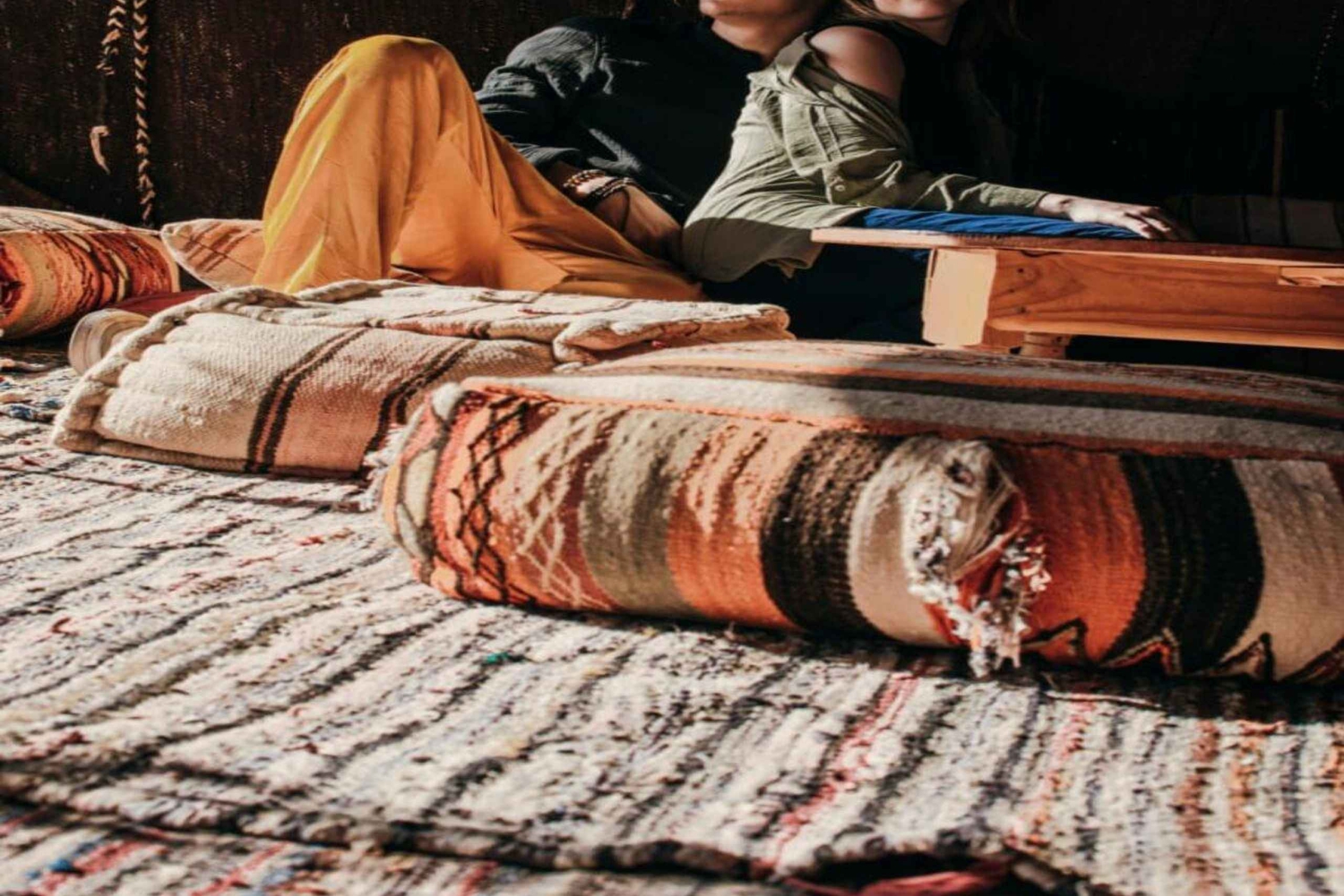 Услуги по подбору и высадке пассажиров Транспорт с кондиционером Местный говорящий гид Романтический ужин 40-минутная поездка на квадроцикле (2 человека в 1 квадроцикле) 20-минутная прогулка на верблюдах Чай в берберском кооперативе Костер в лагере ВодаEasy cancellation
