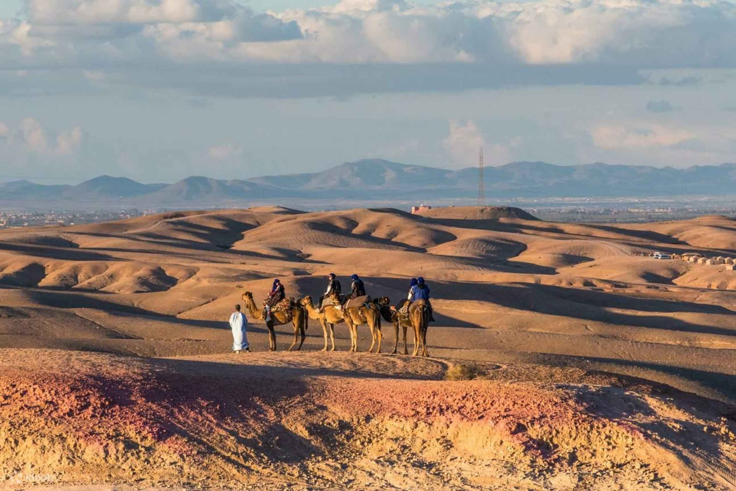 Начните свое приключение из Марракеша в сторону пустыни Агафай. Покиньте шумный город и отправляйтесь навстречу природе и прекрасным пейзажам, в сторону пустыни Агафай, пересекая берберские деревни. По пути в пустыню Агафай мы посетим местный кооператив по производству арганового масла, где Вы узнаете о его производстве, и выпьем приветственный марокканский чай, после чего Вы прокатитесь на верблюде. По прибытии насладитесь расслабляющей прогулкой на верблюдах, когда солнце начнет садиться за пустыню, преображая пейзаж в красные тона. После активного отдыха возвращайтесь в лагерь на традиционный марокканский ужин. Отведайте деликатесы и блюда, приготовленные из местных ингредиентов, глядя на звезды. Когда Вы закончите ужин, Вас отвезут обратно в Марракеш.Includes