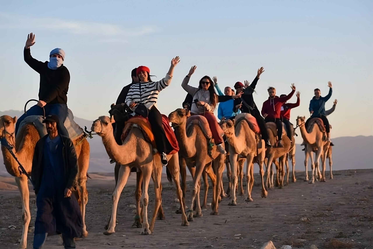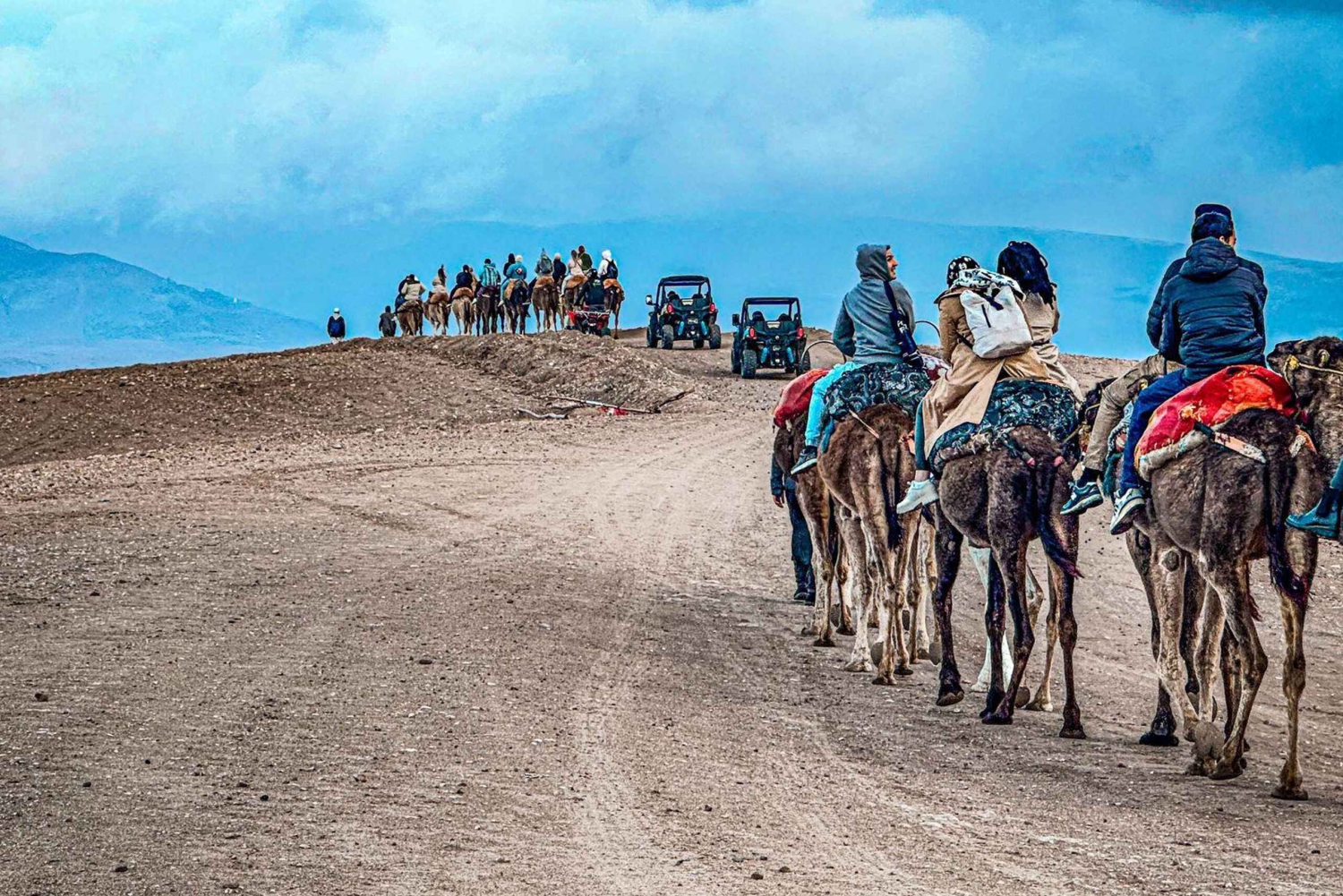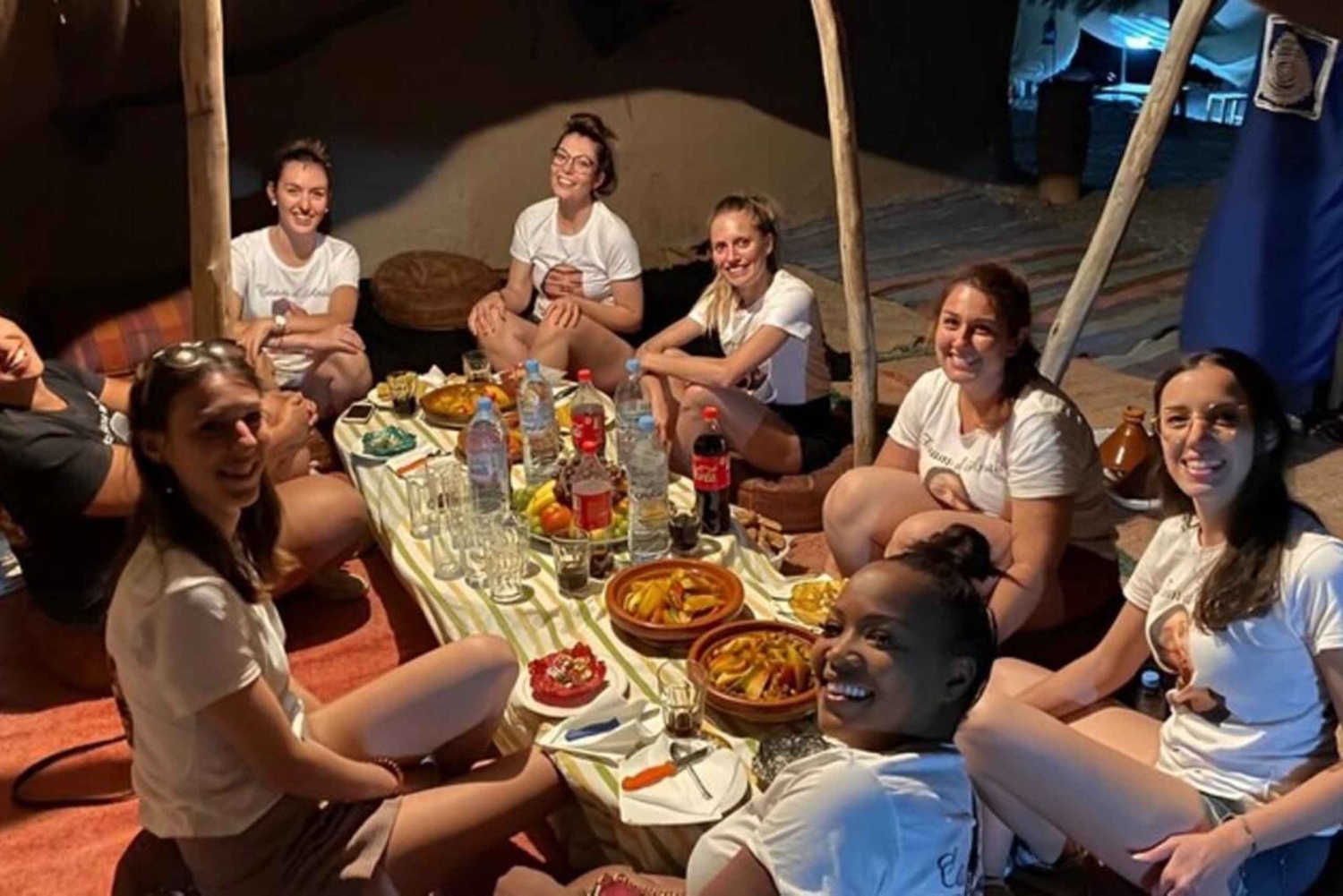 Откройте для себя величайший тур по пустыне из Марракеша в Агафай Отправляясь из оживленного города в захватывающую *пустыню Агафай*, приготовьтесь к незабываемому *пустынному приключению в Марракеше*. Это уникальное приключение сочетает в себе захватывающие действия, культурное исследование и потрясающие пейзажи, что делает его одним из лучших вариантов, чем заняться в *Марракеше*. Начало вашего приключения в пустыне Агафай Удобный трансфер из одного из трех бесплатных мест встречи в Марракеше начнется в *15:00*. Скалистая, похожая на лунный пейзаж *пустыня Агафай* находится в нескольких минутах езды и представляет собой яркий контраст с *Сахарой*. Благодаря своей доступности для людей с инвалидностью, красоте и спокойствию, эта скрытая жемчужина быстро поднимается на вершину списка *популярных туристических направлений в пустыне Марракеша*. Незабываемые мероприятия в пустыне Агафай: *Удивительный опыт катания на квадроцикле в Марракеше* Начните свой тур по пустыне Агафай с захватывающего опыта на квадроцикле в Марракеше. Опытные гиды, для которых ваше удовольствие и безопасность превыше всего, проведут вас по скалистым пустынным тропам. Эта захватывающая сессия на квадроцикле в Марракеше обязательно зарядит вас энергией, независимо от вашего уровня опыта вождения квадроцикла. Прокатитесь на верблюде на закате в Агафай Прокатитесь на верблюде по пустыне Агафай, чтобы перейти от адреналина к спокойствию. Испытайте спокойный ритм *традиционного верблюжьего трекинга в Марокко*, оседлав *верблюда* на закате. Золотой час создает потрясающий фон для фотографий и незабываемых воспоминаний. Вы ищете лучшее *катание на верблюде в Марракеше*? Это путешествие на закате. Вы никогда не забудете этот момент в *Агафай*, будь то *катание на верблюде на закате в Марракеше*, быстрая *поездка на верблюде по пустыне* или полный *тур на верблюде в Марракеше*. Марокканский ужин под открытым небом Приезжайте в наш волшебный *лагерь в пустыне Агафай*, когда наступают сумерки. Здесь вы сможете насладиться *традиционным марокканским ужином*, который включает в себя традиционные блюда, такие как *тажин* из баранины, кускус, сезонные фрукты и свежие салаты. Вечерние *живые музыкальные* и *культурные* представления отражают сущность Марокко. Один из самых запоминающихся аспектов этого *ужина в пустыне в Марракеше* — это ужин на открытом воздухе в пустыне под звездным небом. Почему стоит выбрать этот опыт в пустыне из Марракеша? Эта высоко оцененная экскурсия по пустыне Агафай сочетает в себе традиции и активный отдых в один идеальный вечер. *Идеально для всех путешественников*: идеально подходит для семей, групп, пар и одиночных путешественников. Включая *бесплатный трансфер из Марракеша и обратно*, этот пакет обеспечивает беззаботное путешествие. *Аутентичный и захватывающий*: это полное *культурное путешествие*, охватывающее всё: от *ужина и живых выступлений* до *езда на квадроциклах и катания на верблюде в Агафае*.Includes